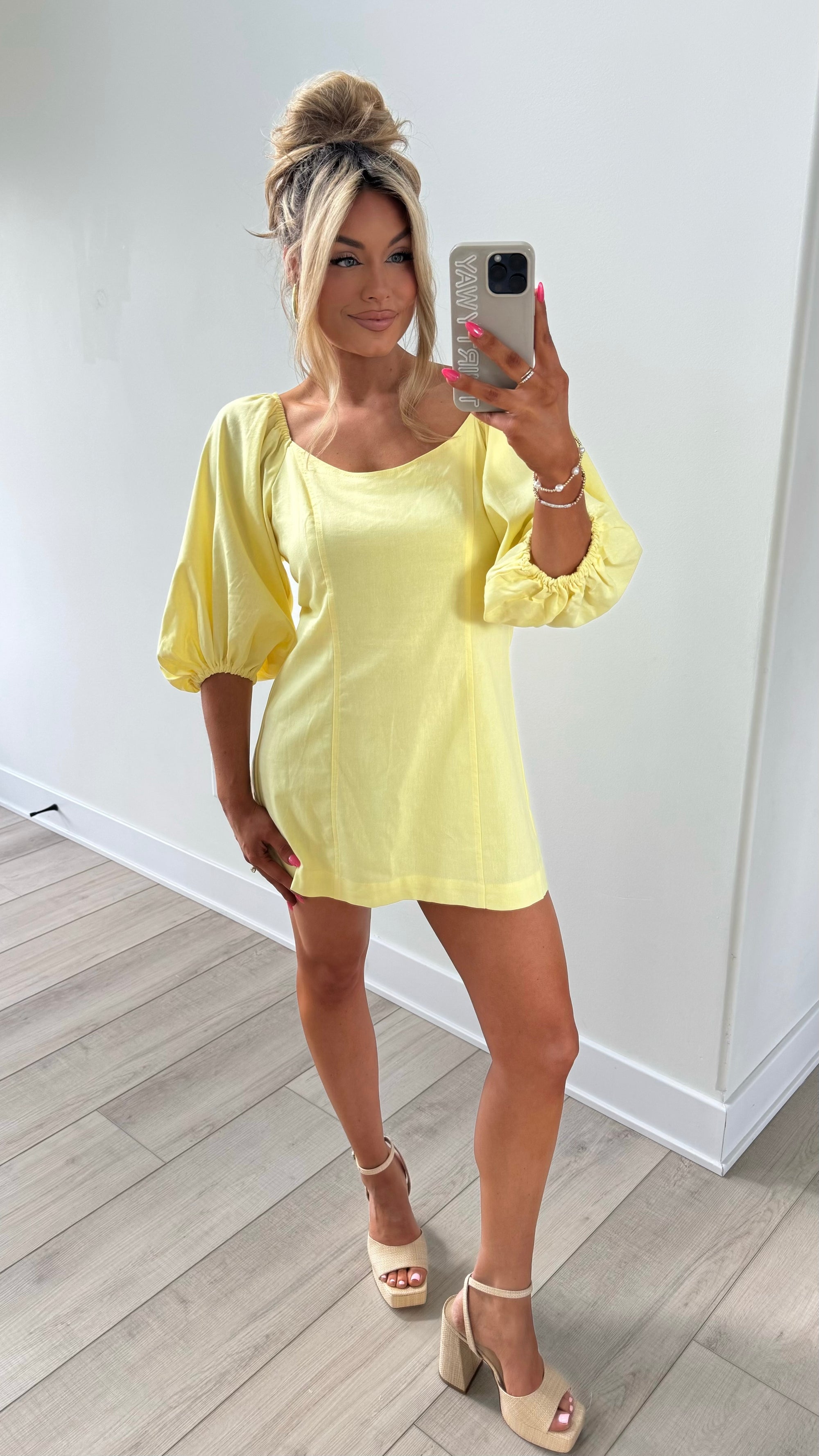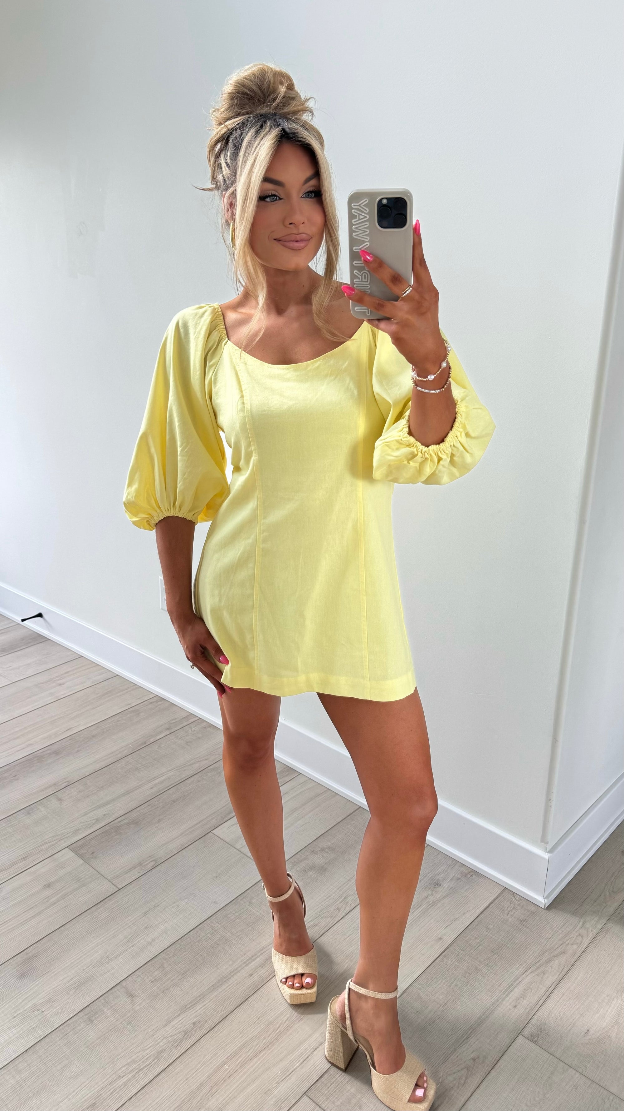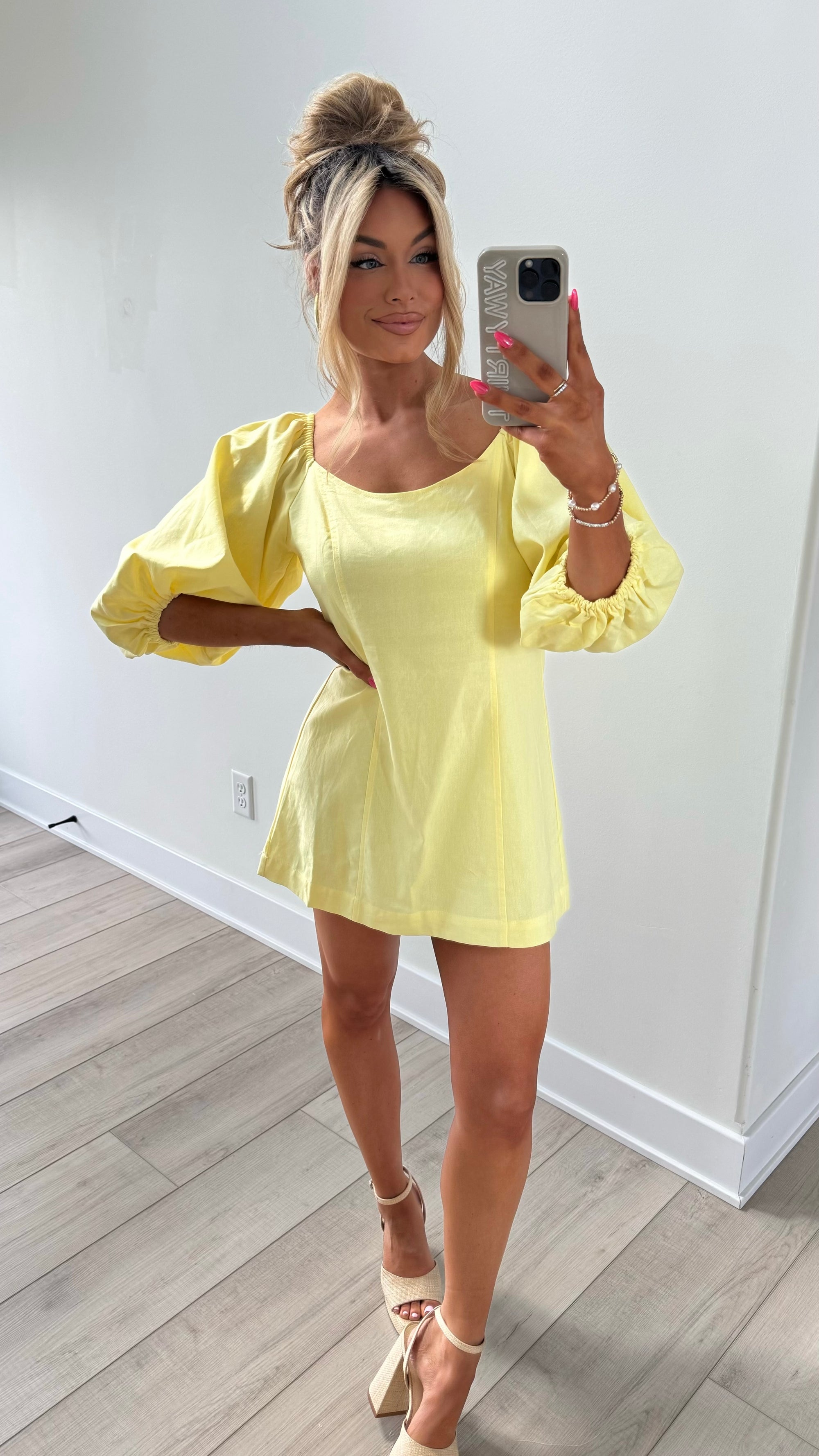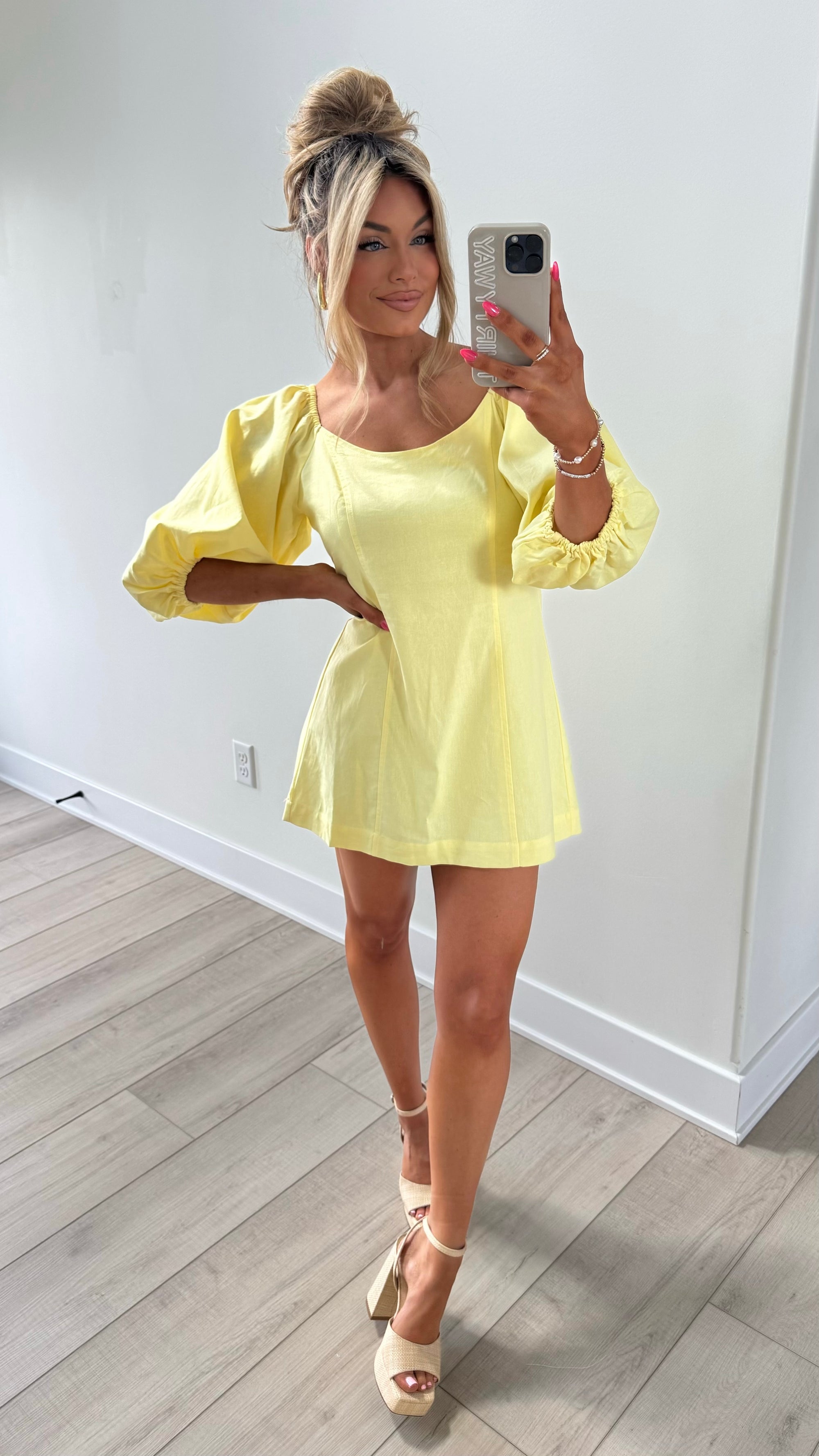 HONEYCOMB PUFF SLEEVE MINI DRESS