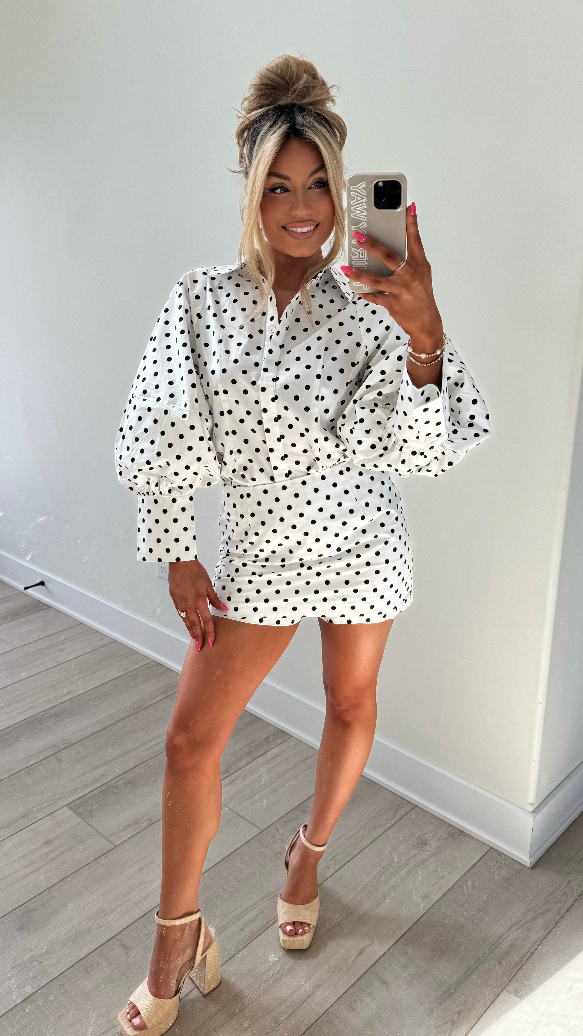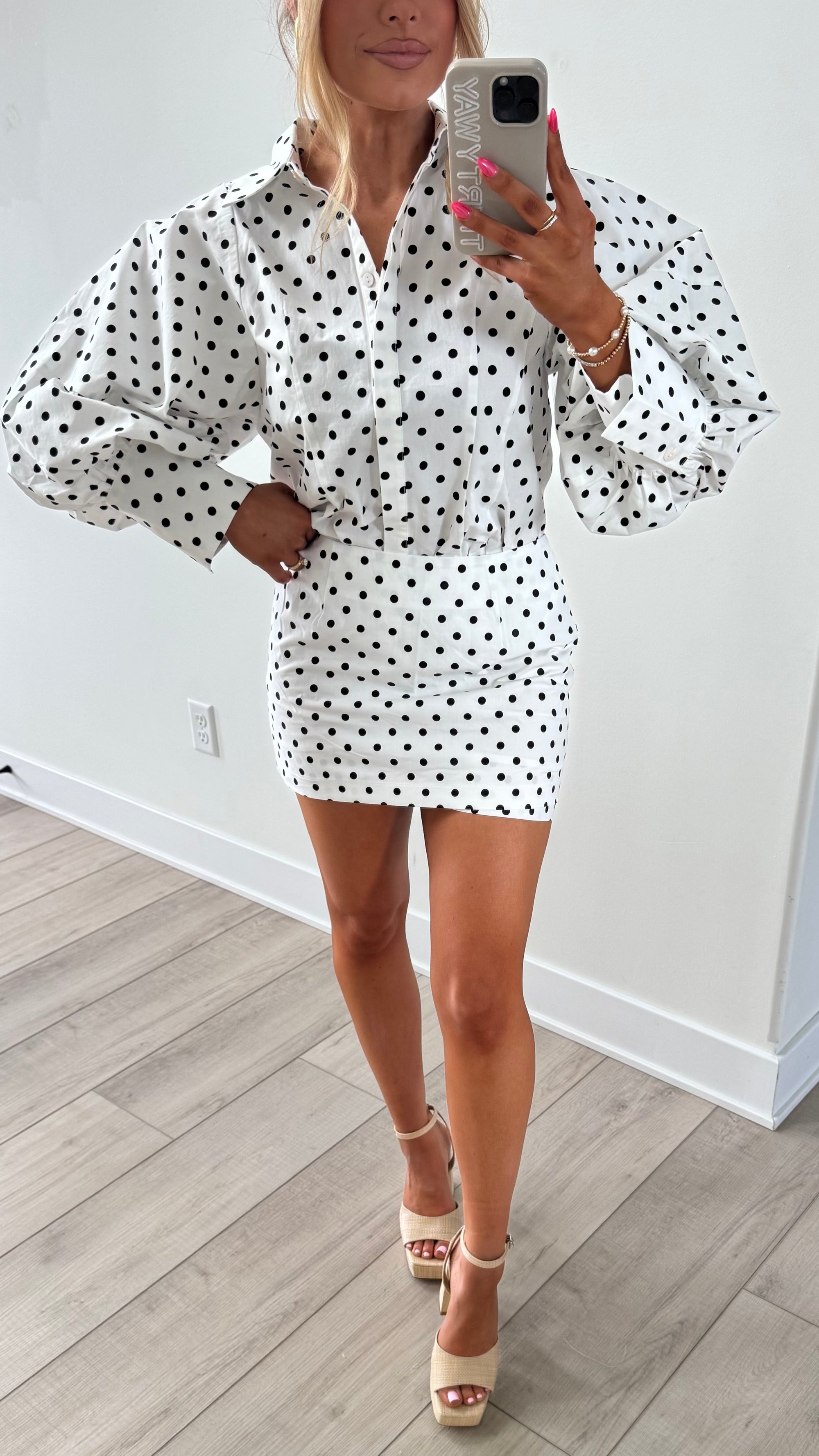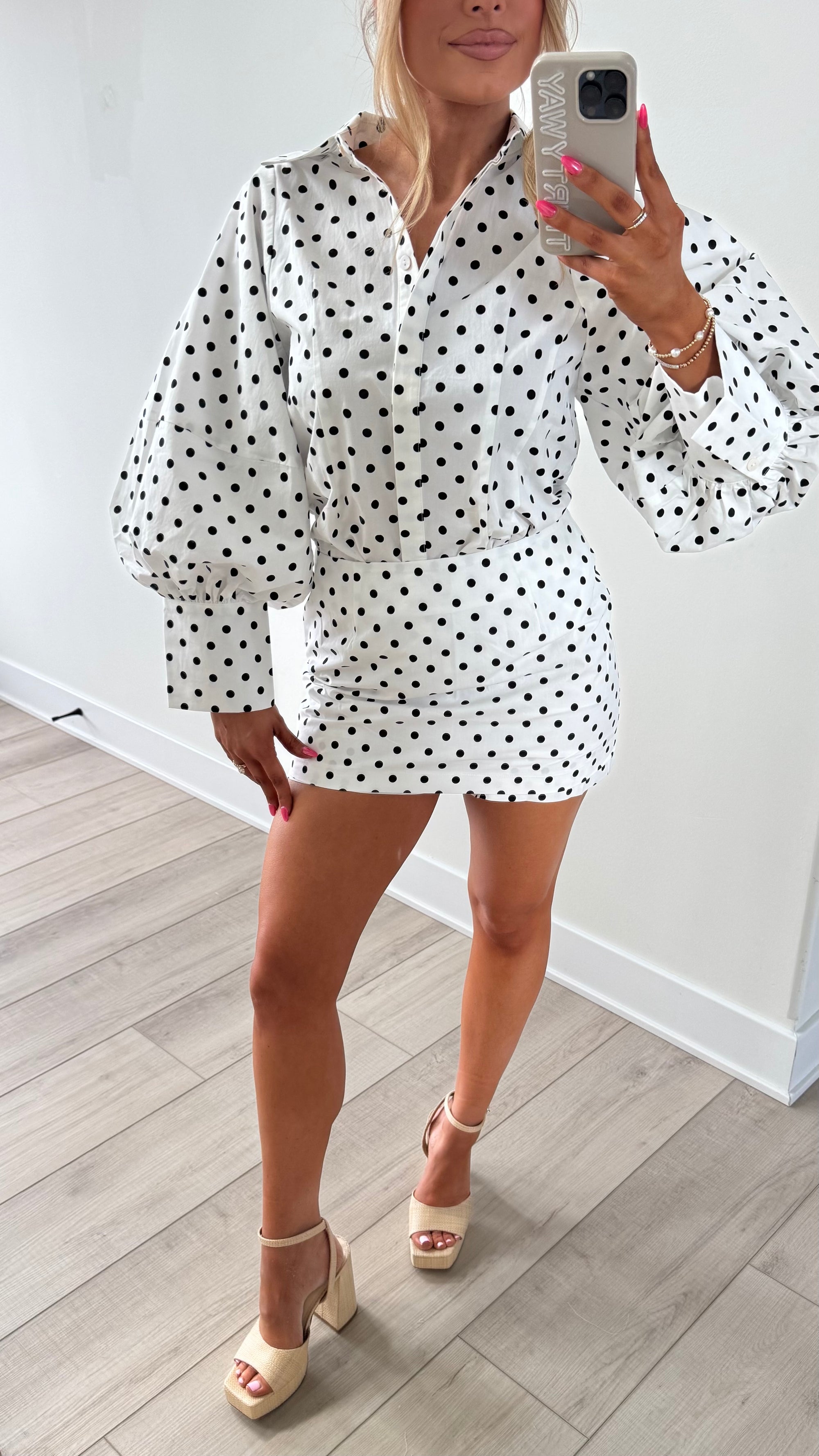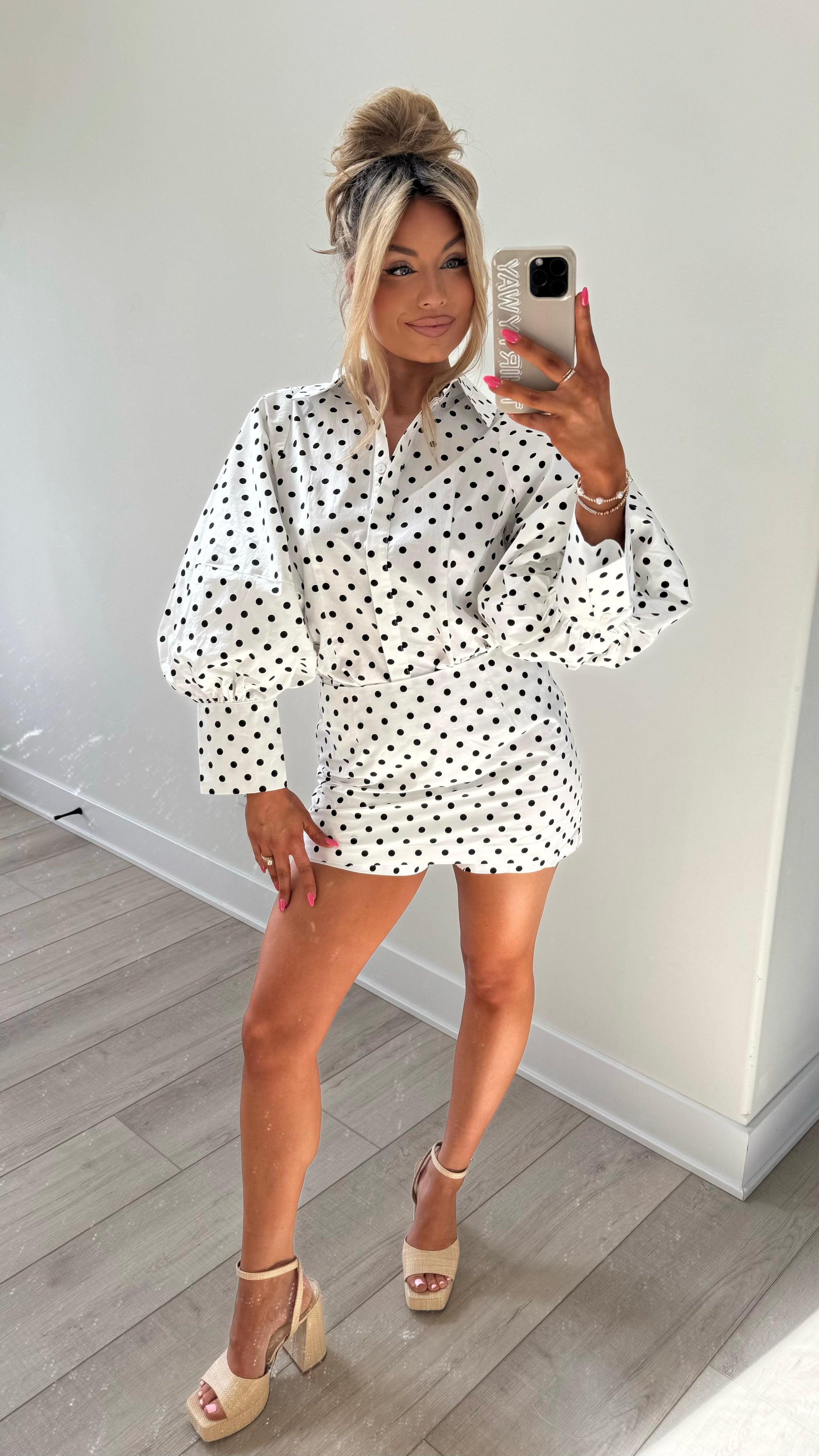 HONEYCOMB PUFF SLEEVE MINI DRESS