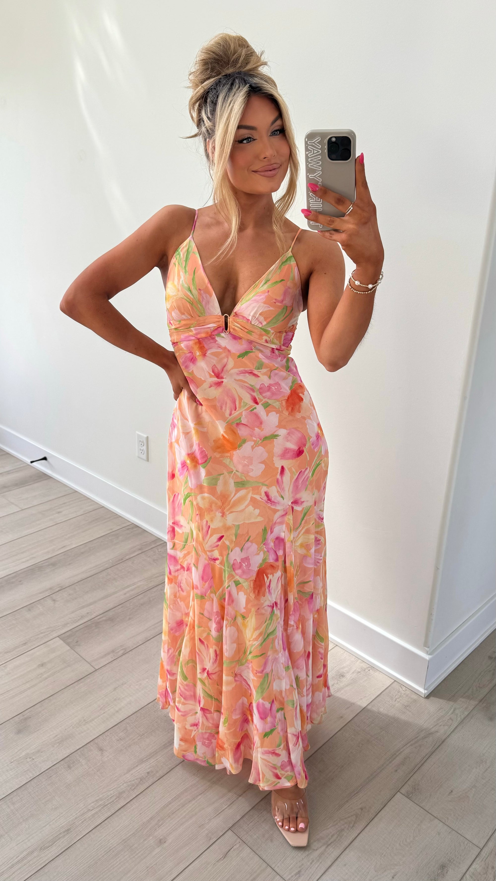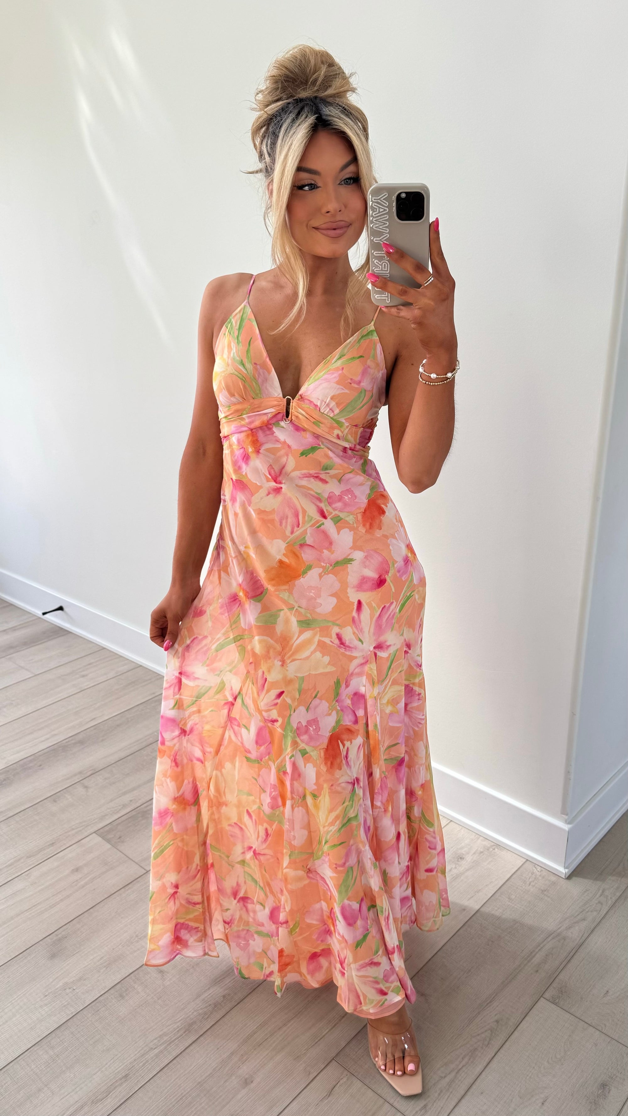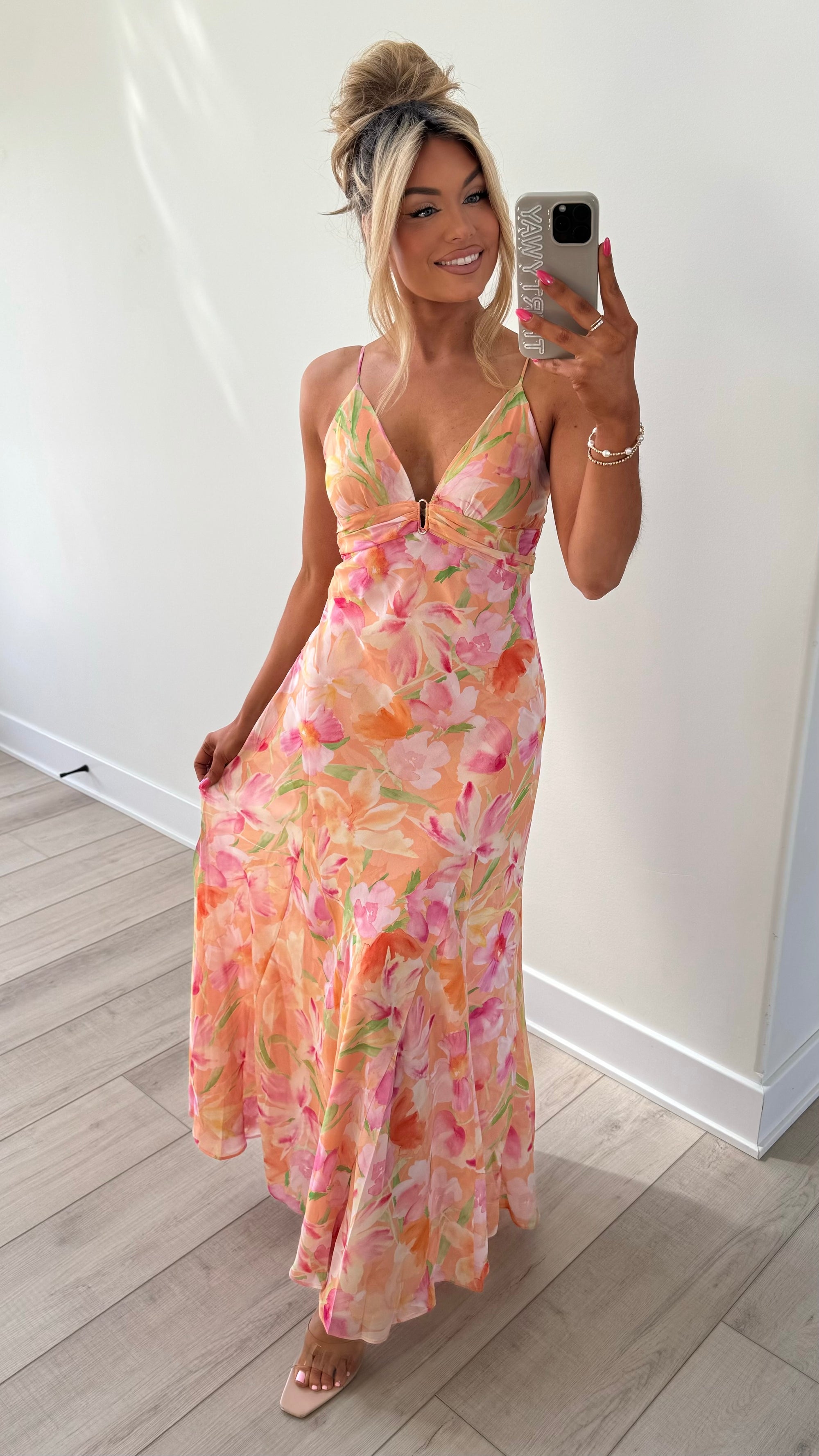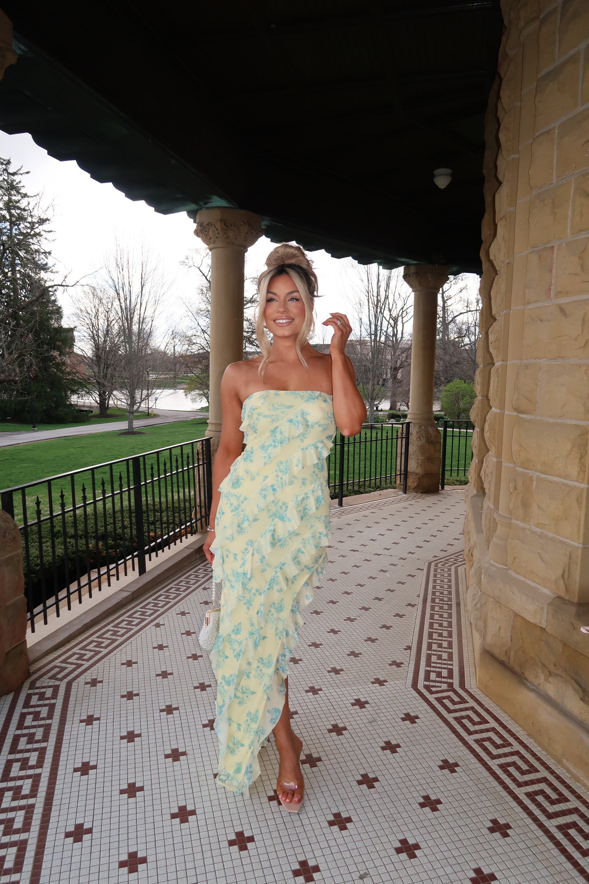 AZALEA FLORAL HALTER MAXI DRESS LEMON
