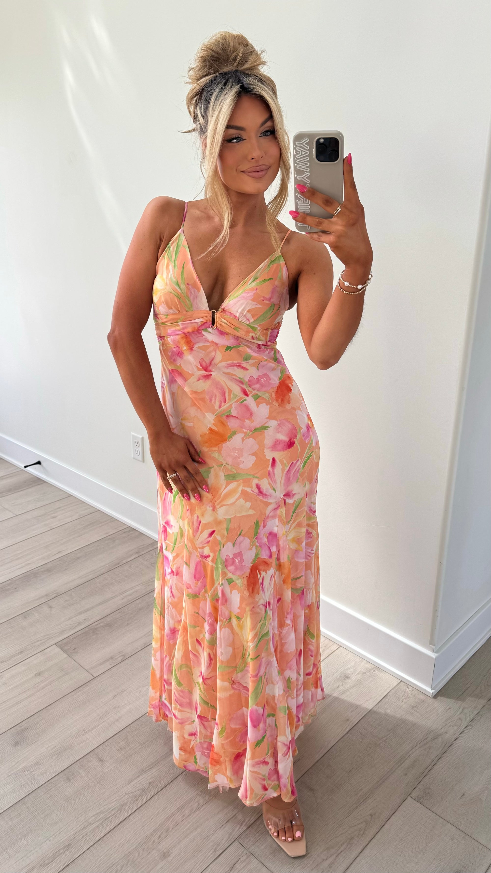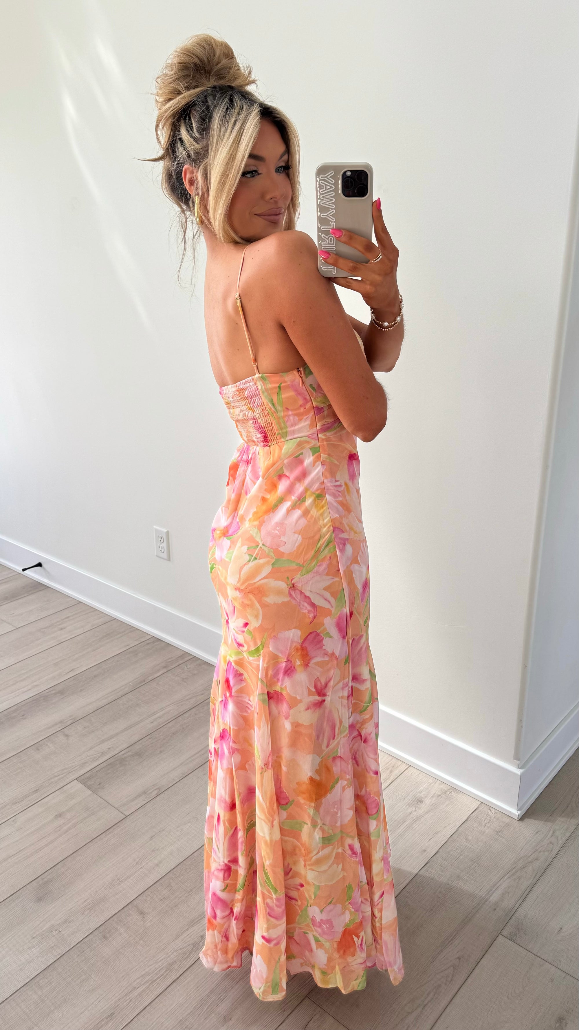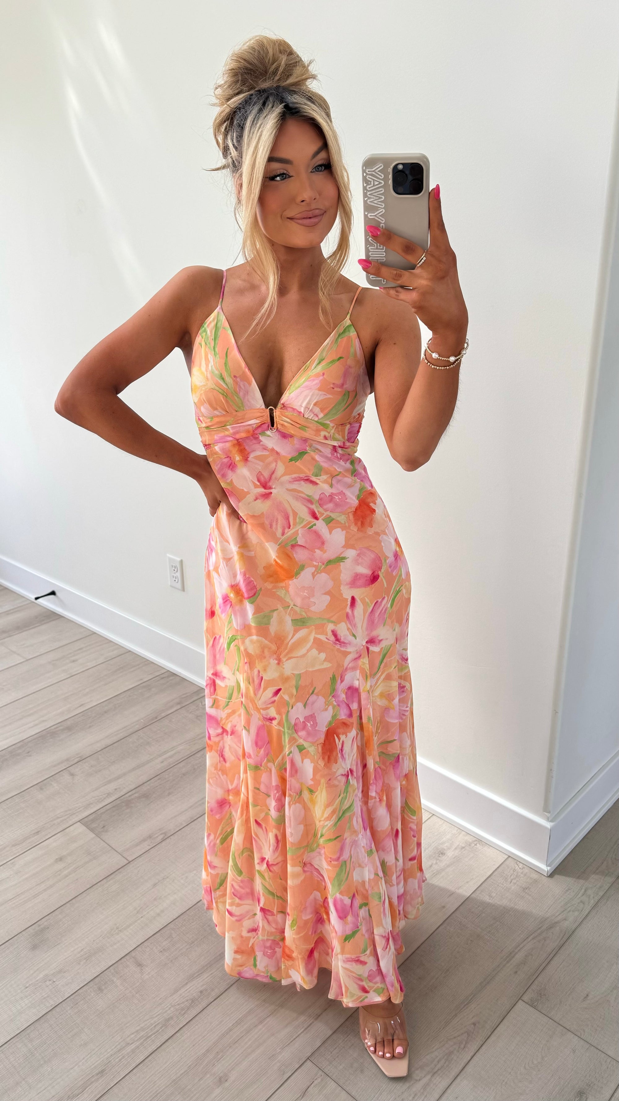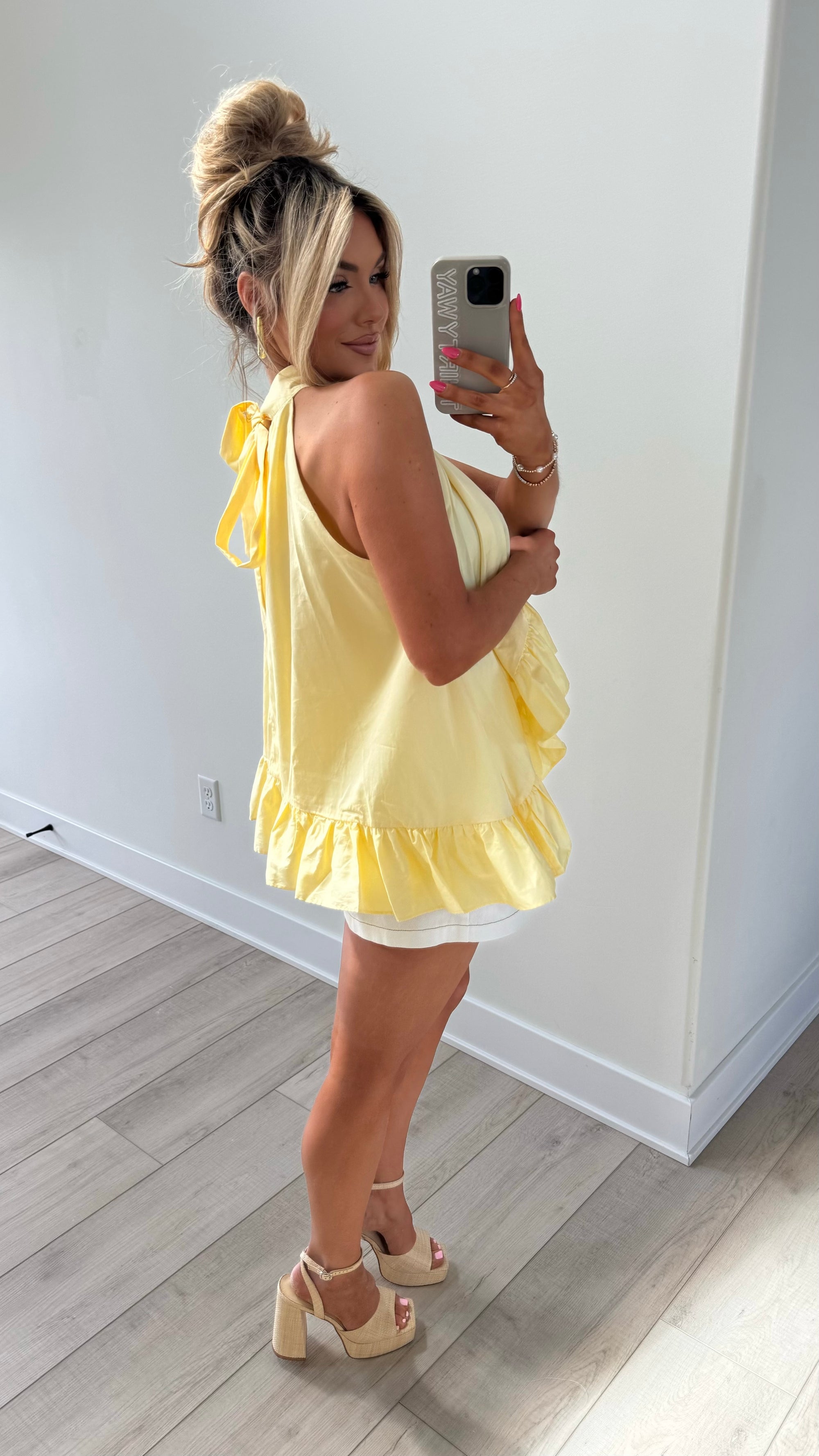 AZALEA FLORAL HALTER MAXI DRESS LEMON