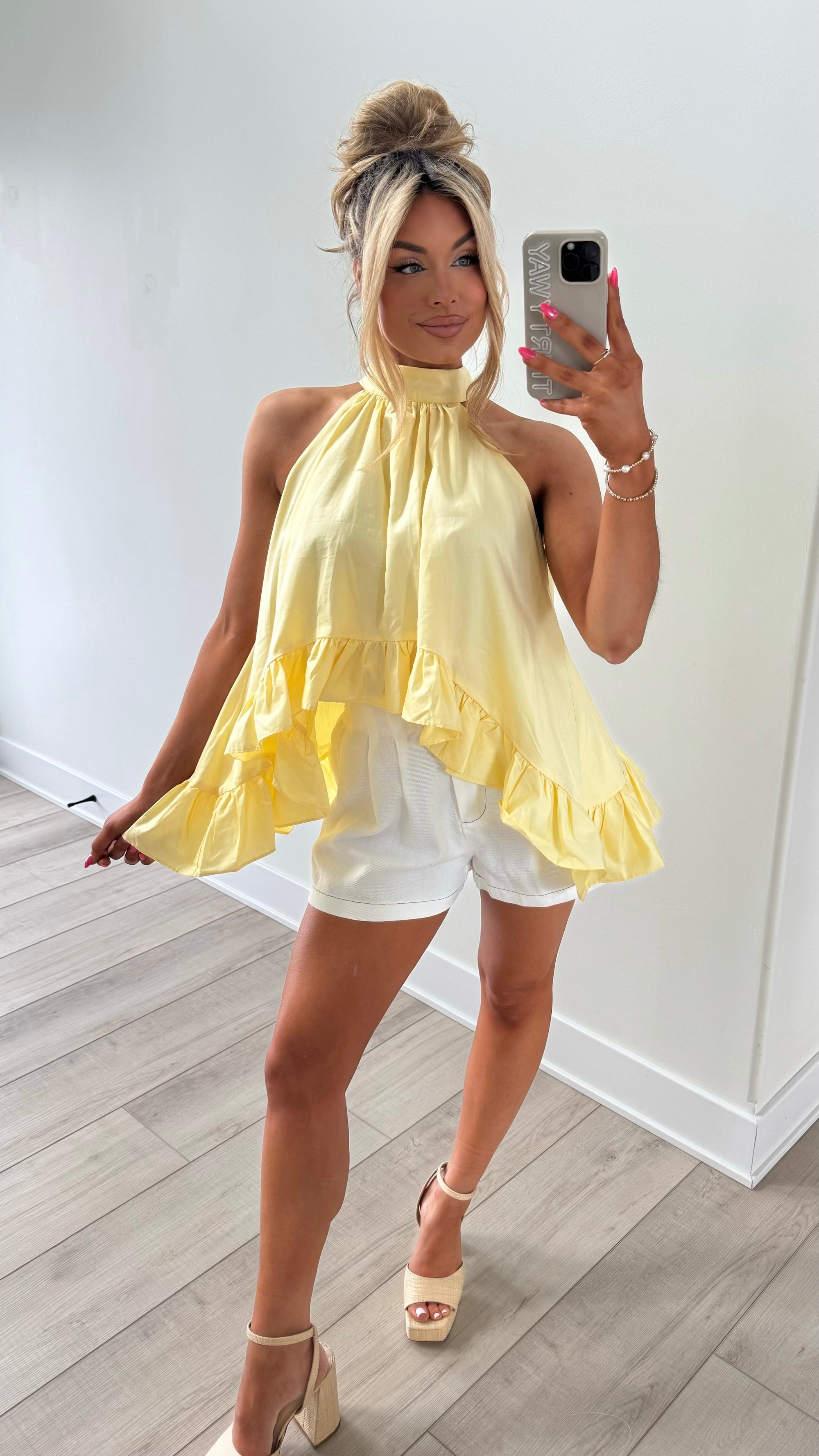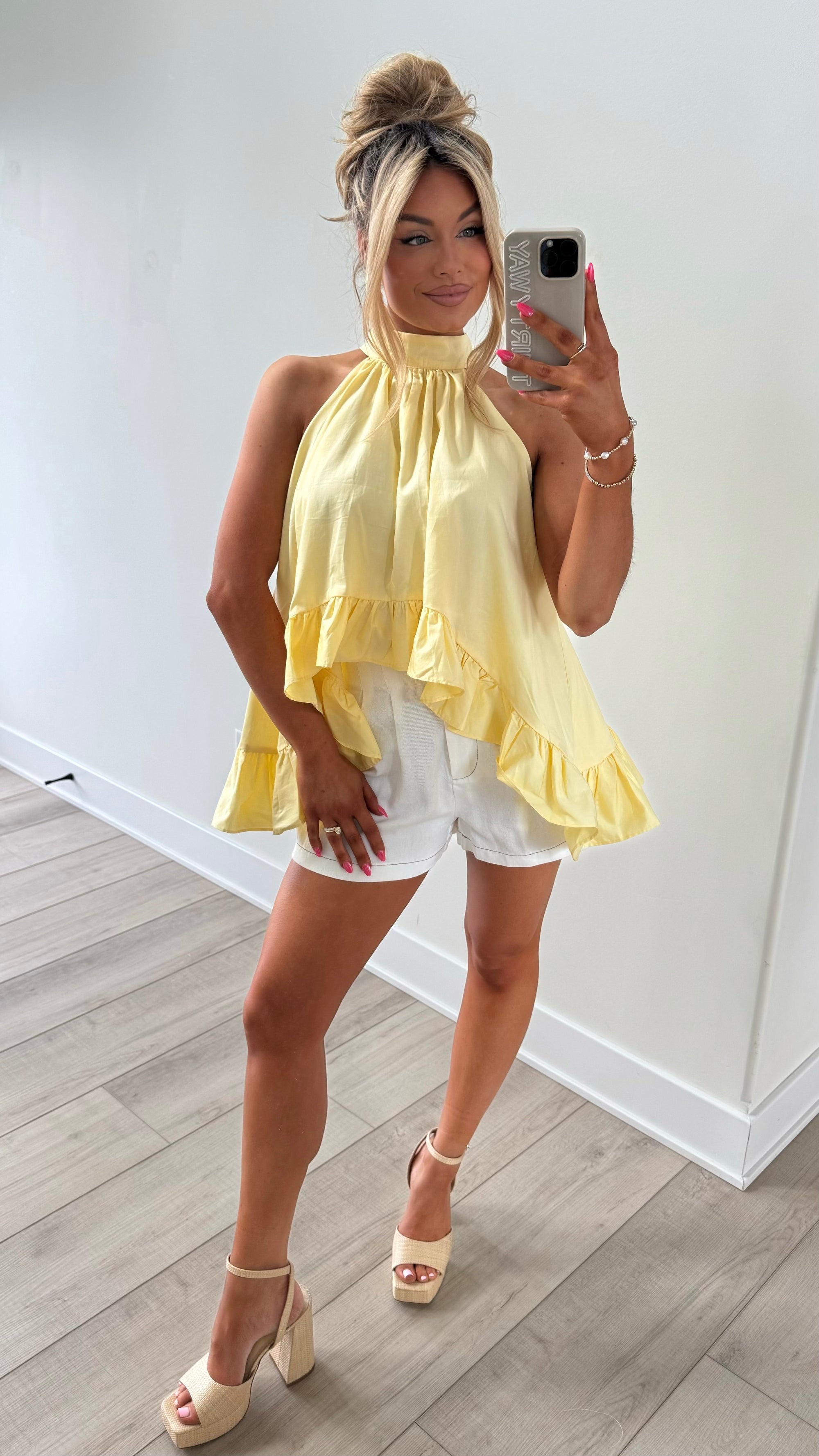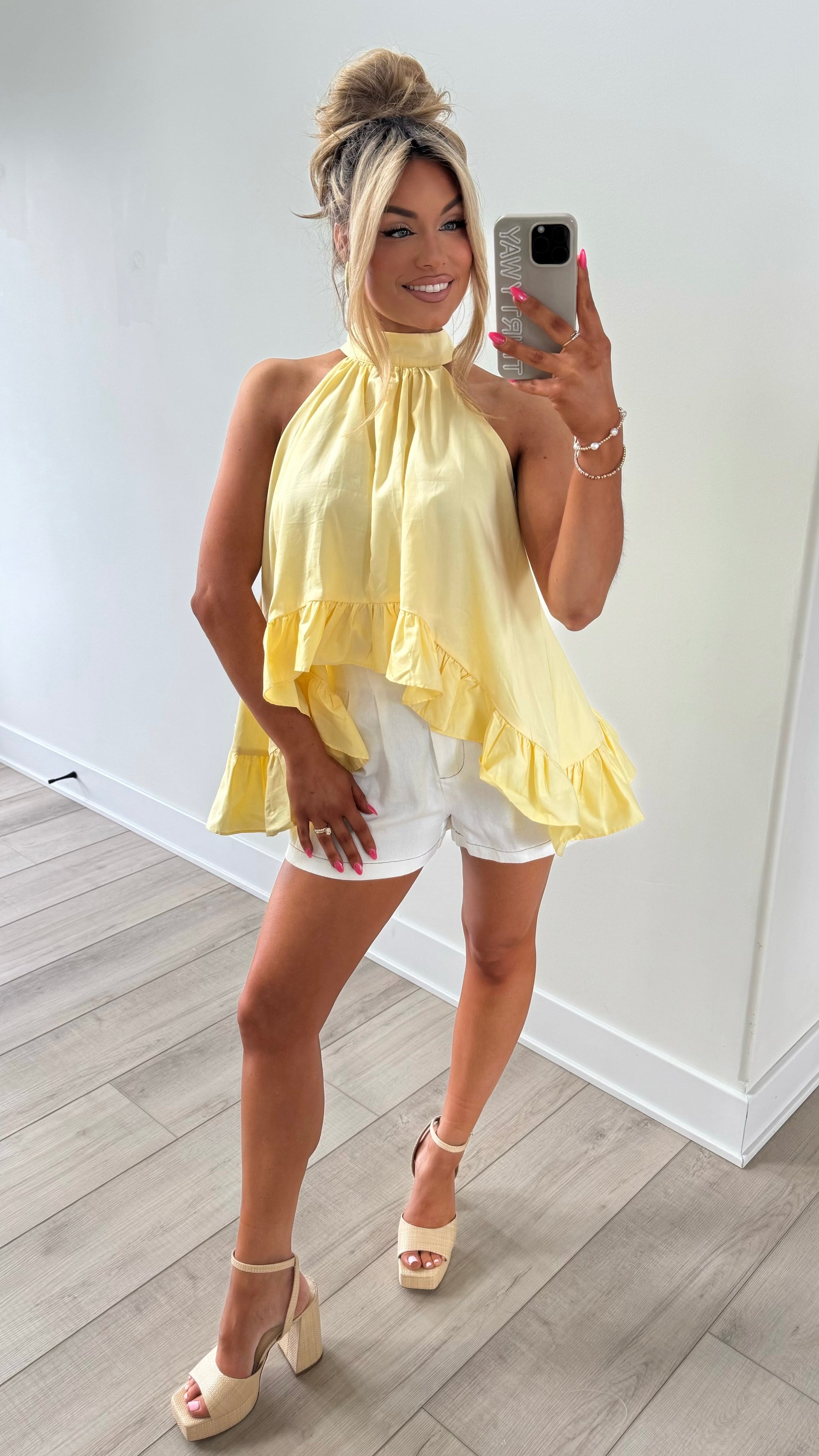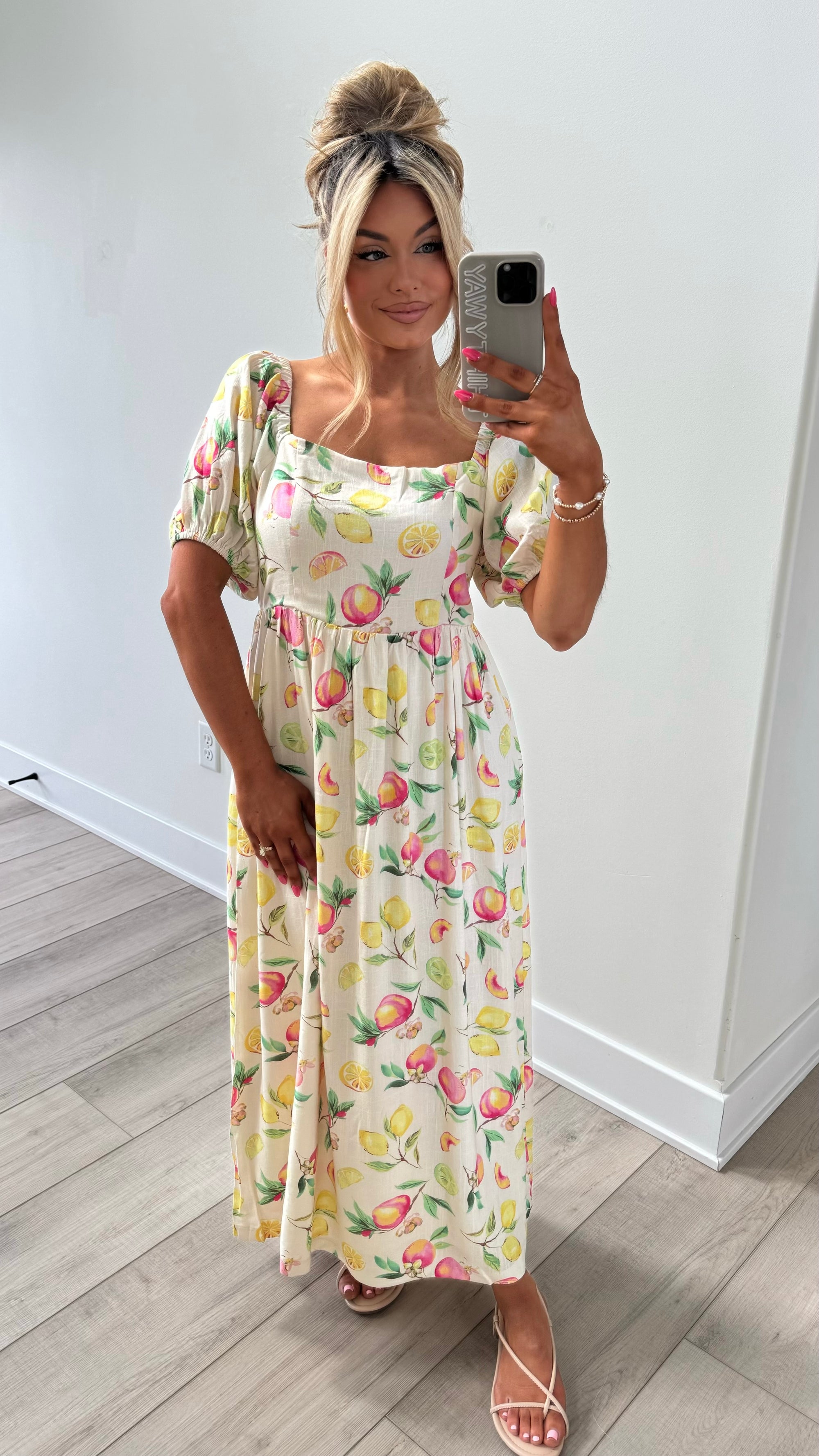 AZALEA FLORAL HALTER MAXI DRESS LEMON