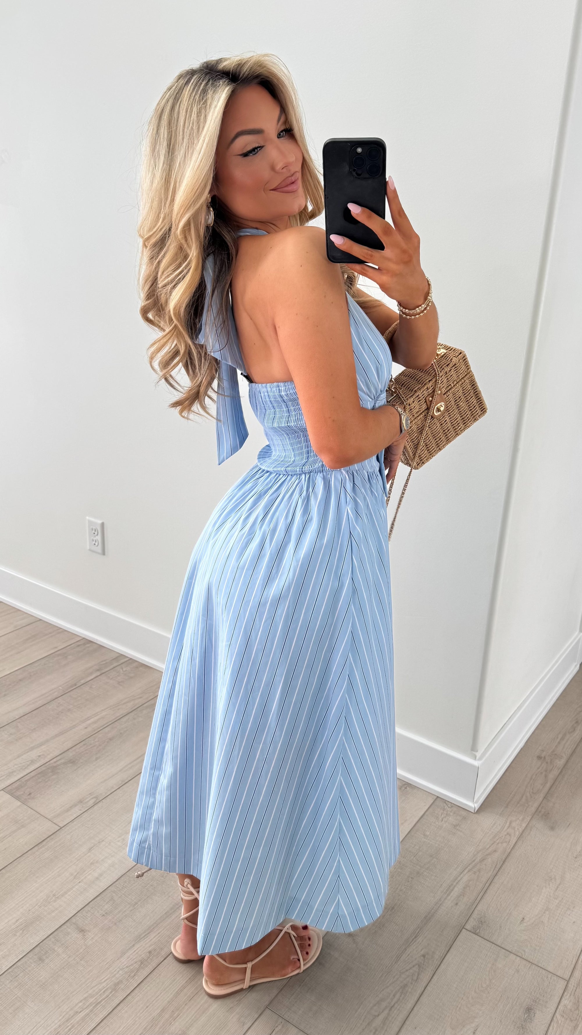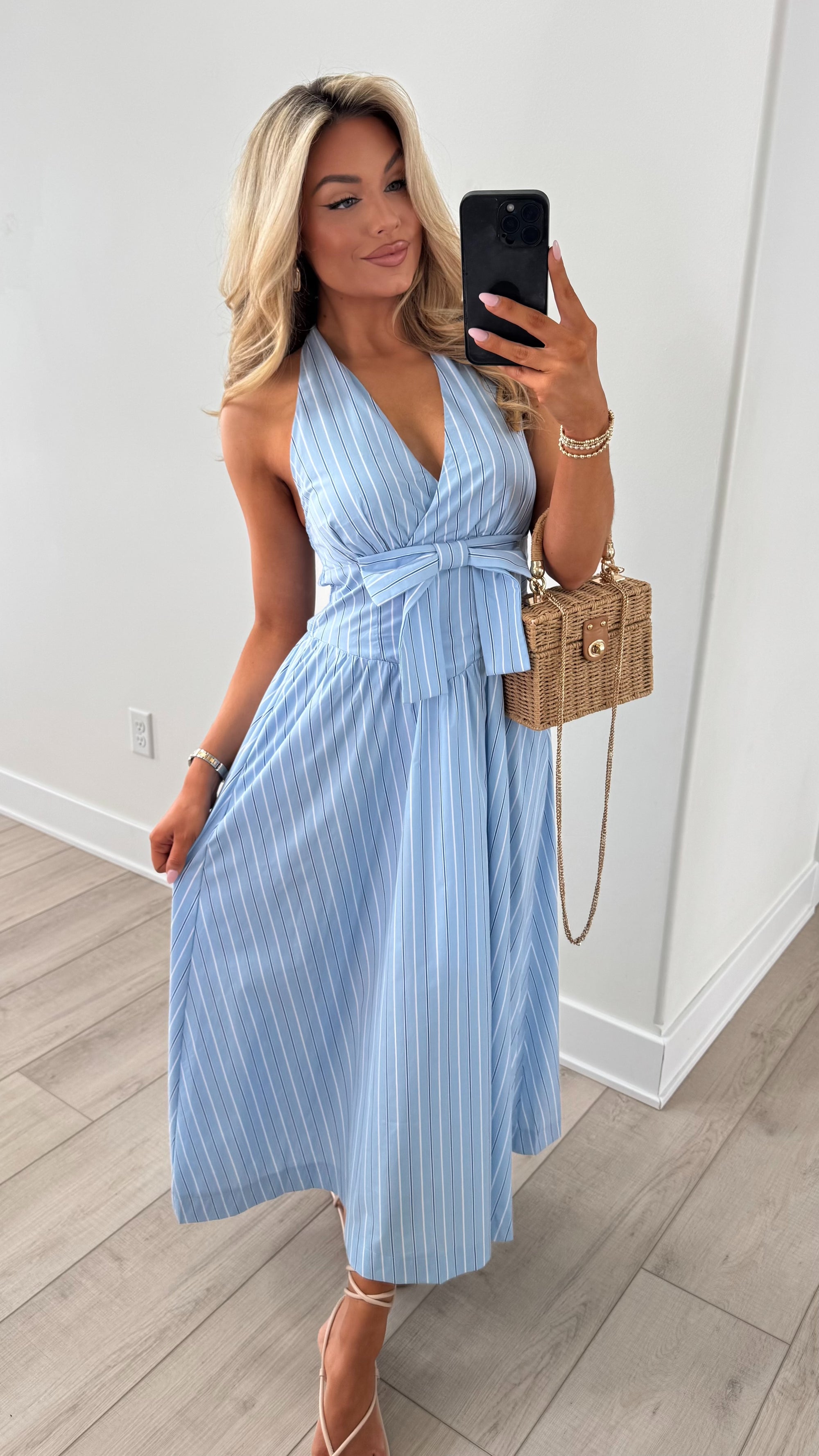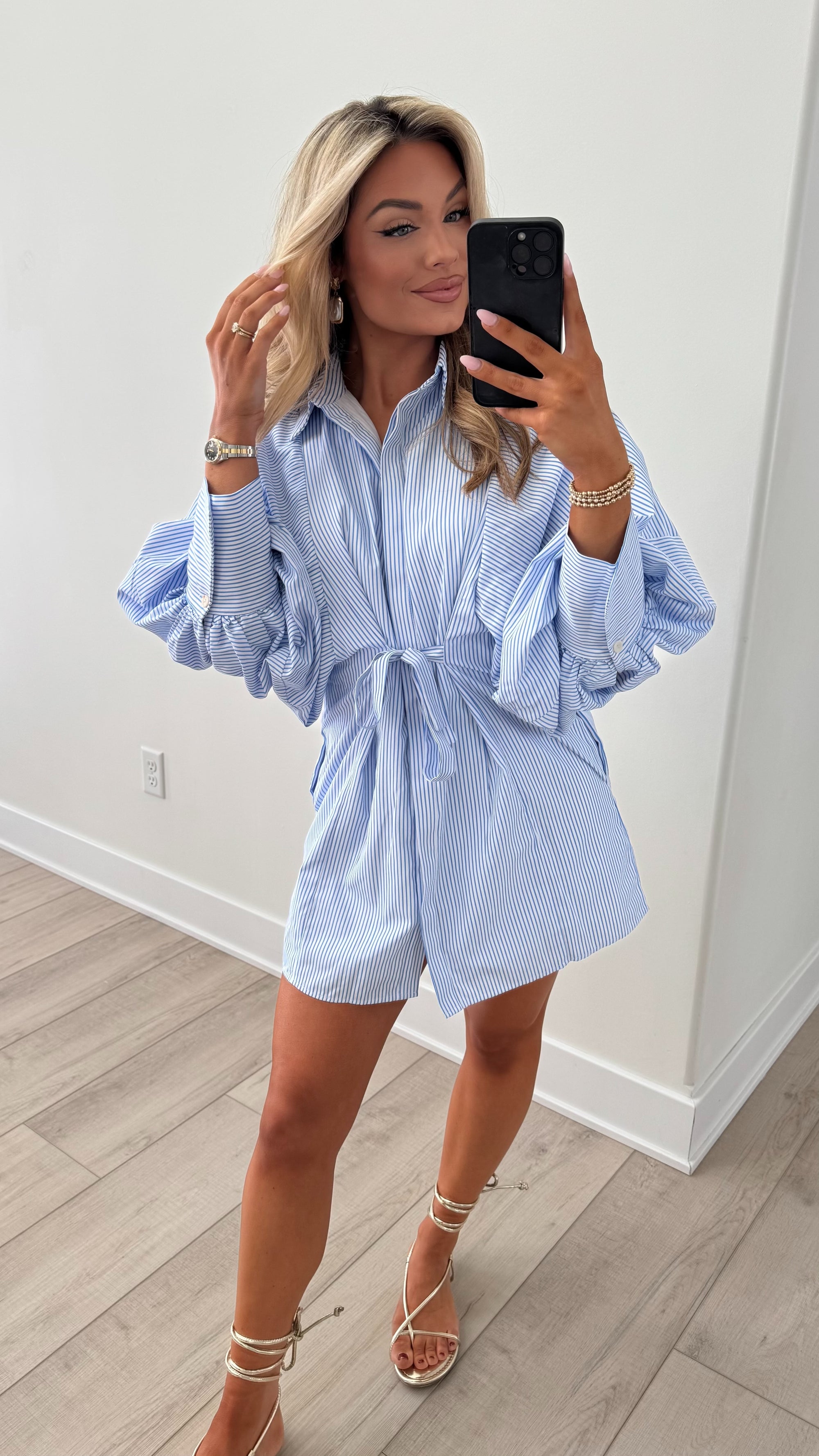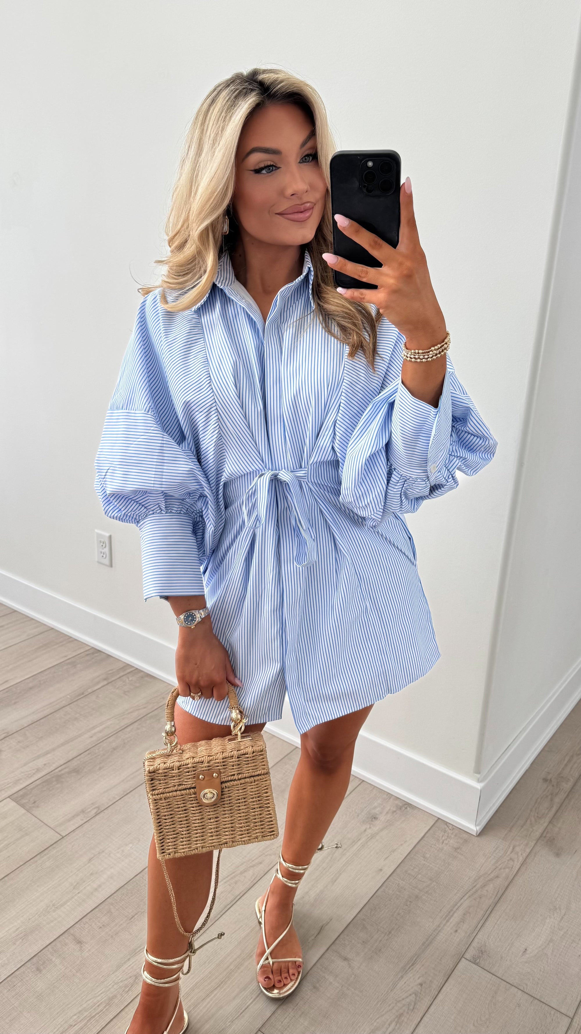 ROSEMARY PUFF SLEEVE DRESS BLUE STRIPE