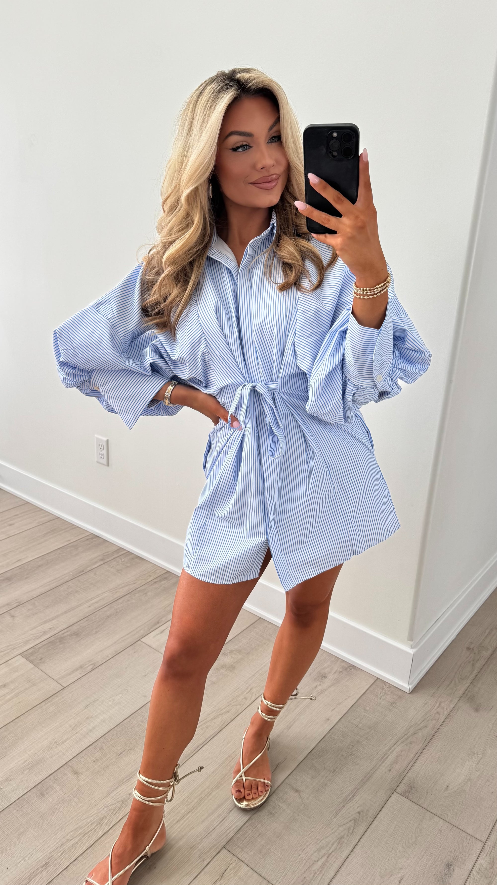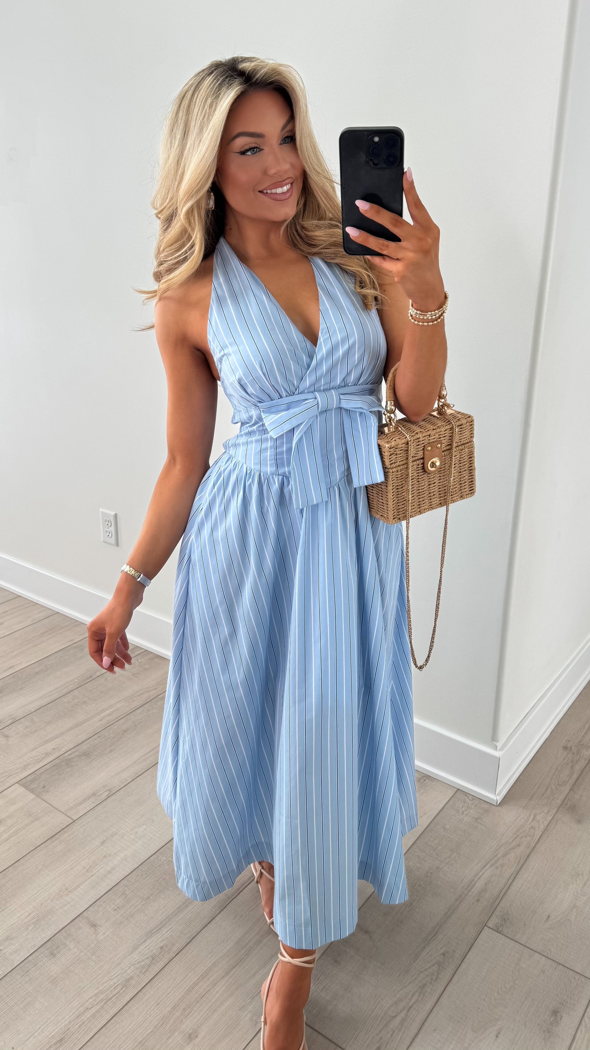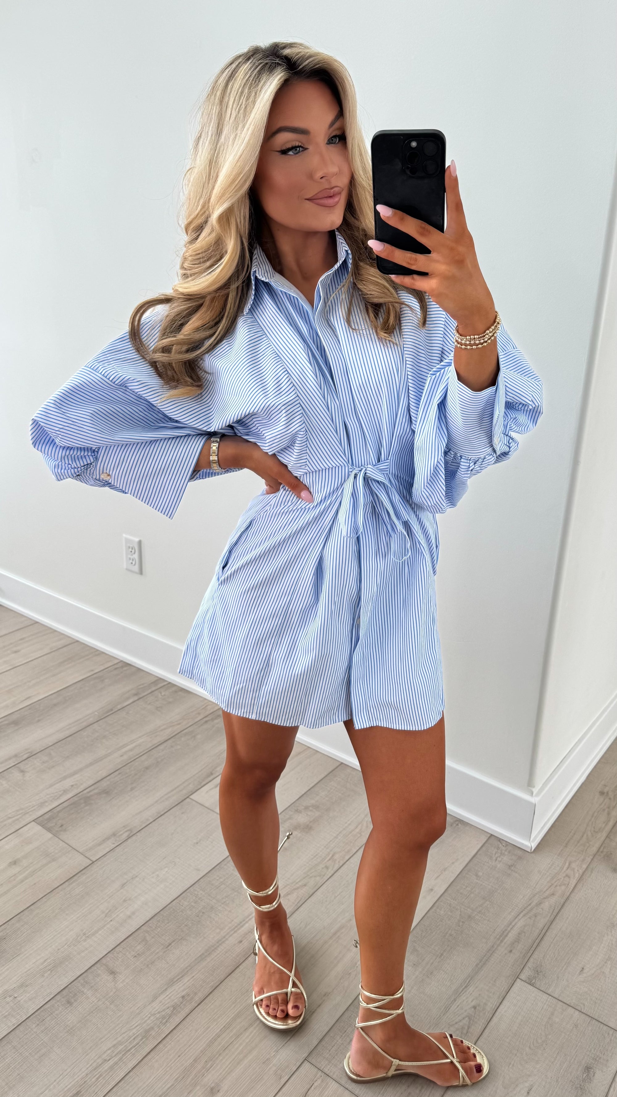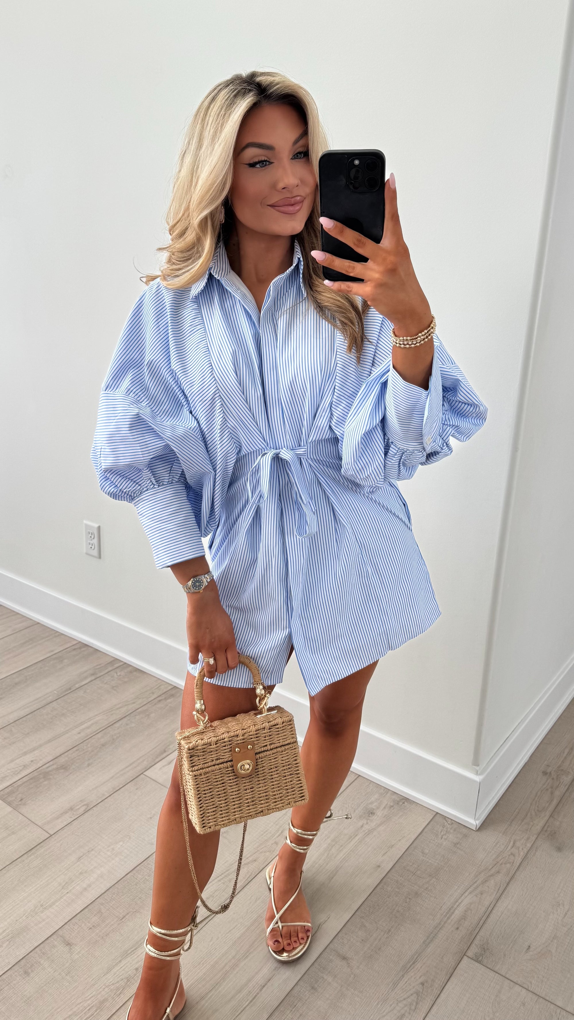ROSEMARY PUFF SLEEVE DRESS BLUE STRIPE