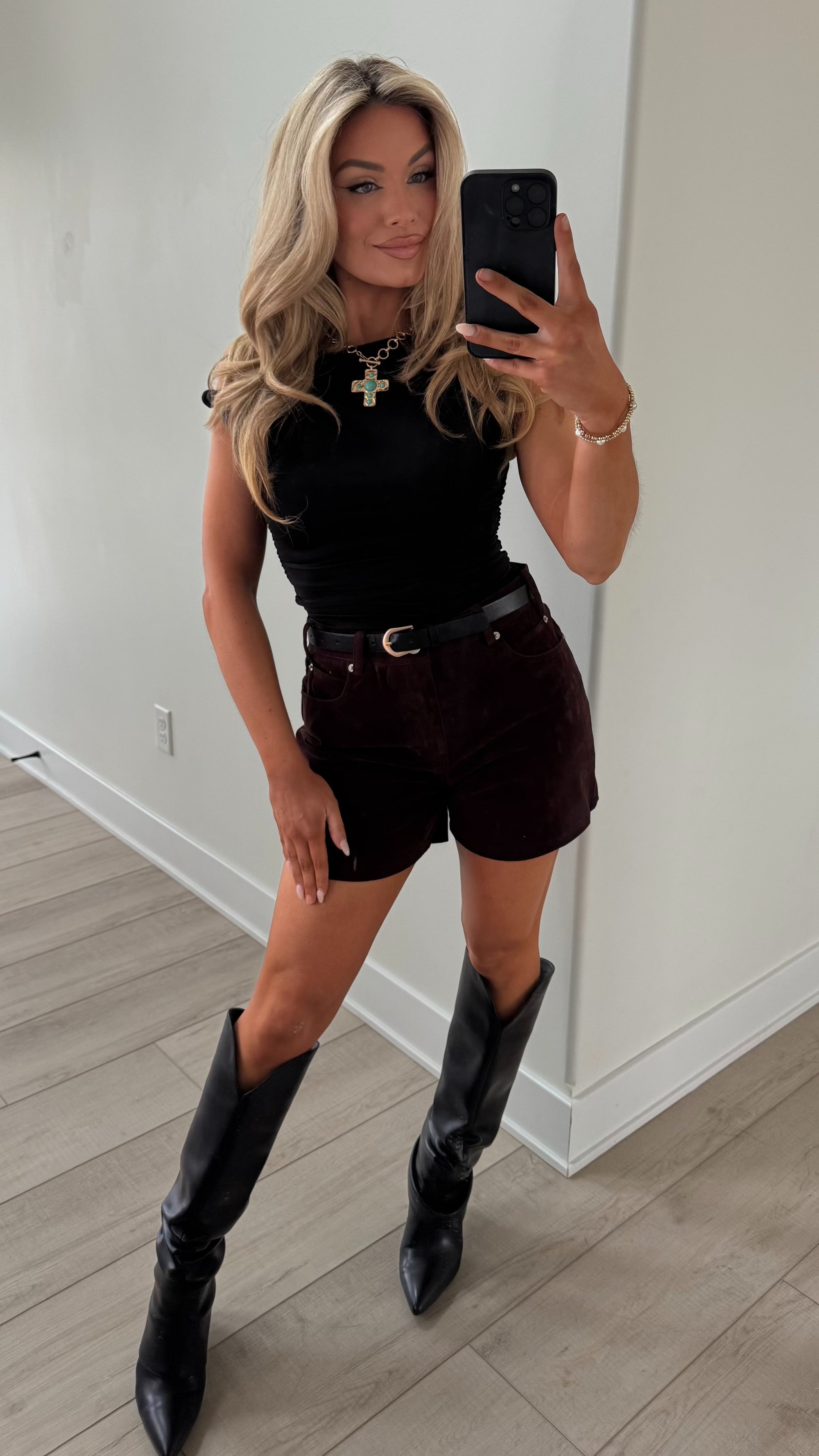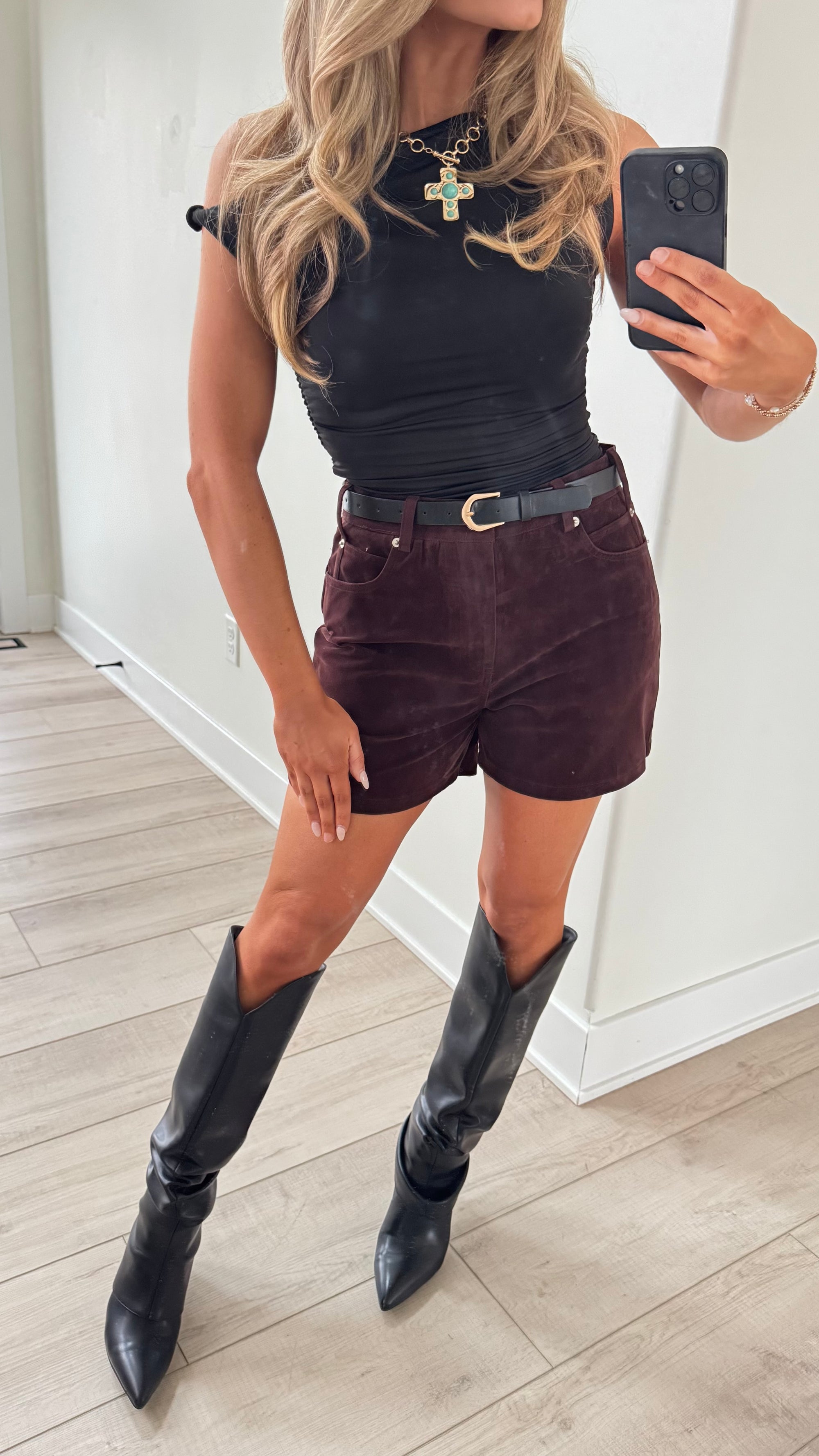 HIGH- WAISTED BURGUNDY SUEDE SHORTS