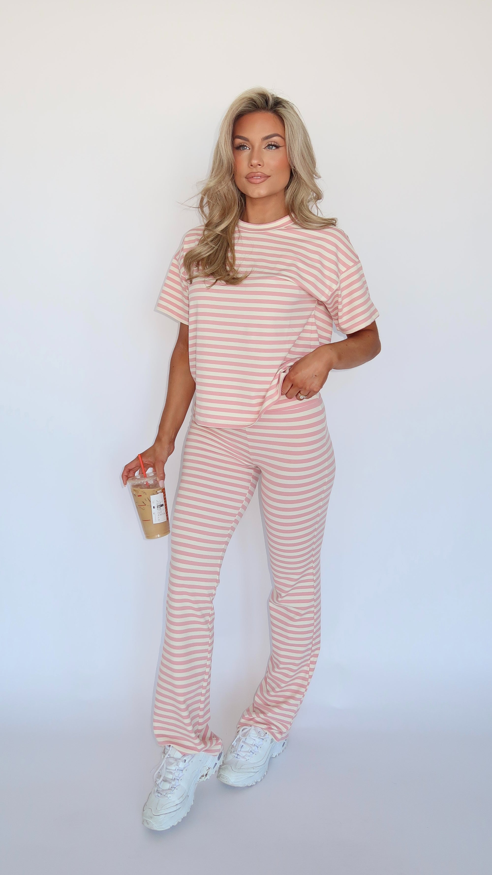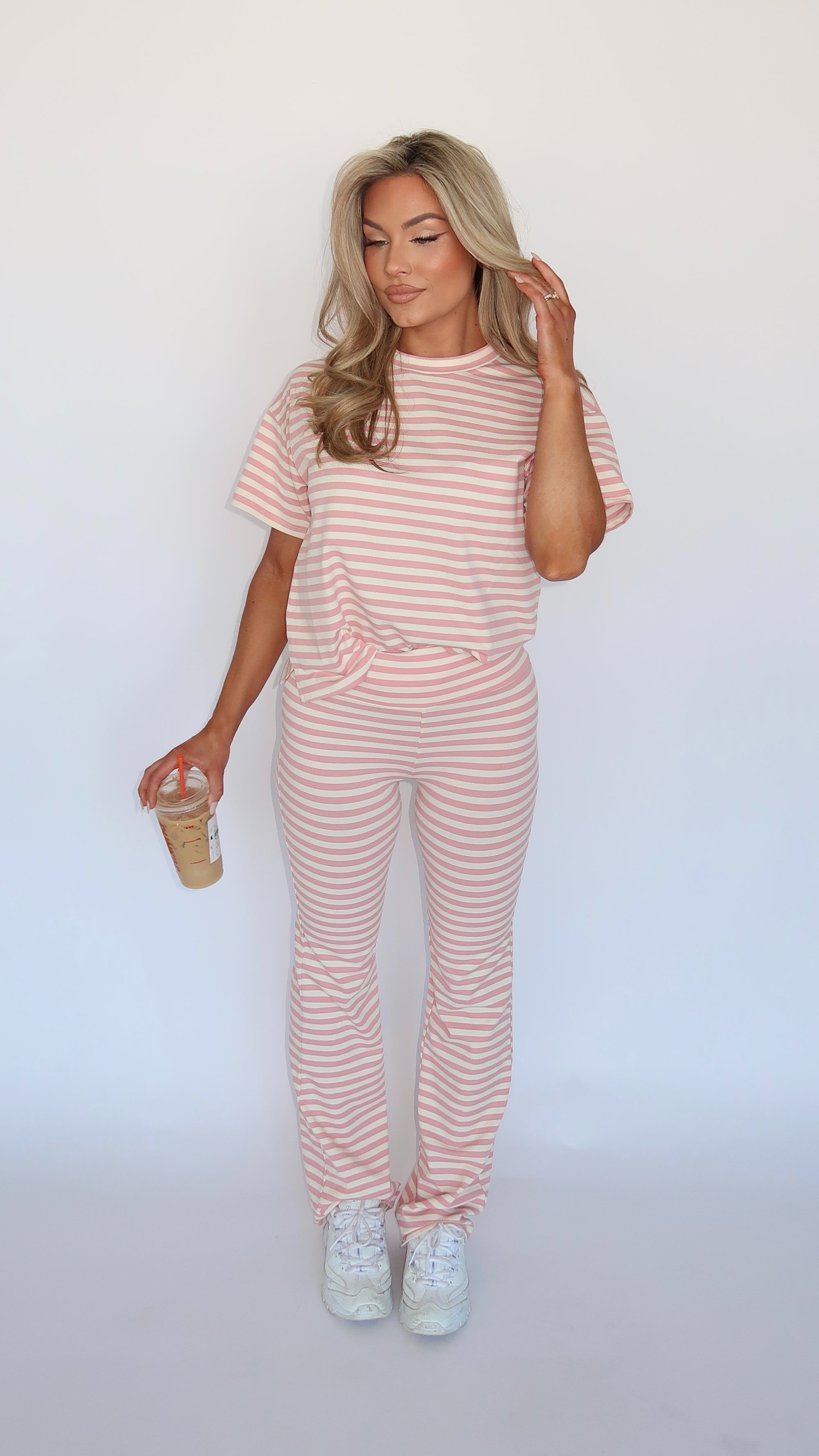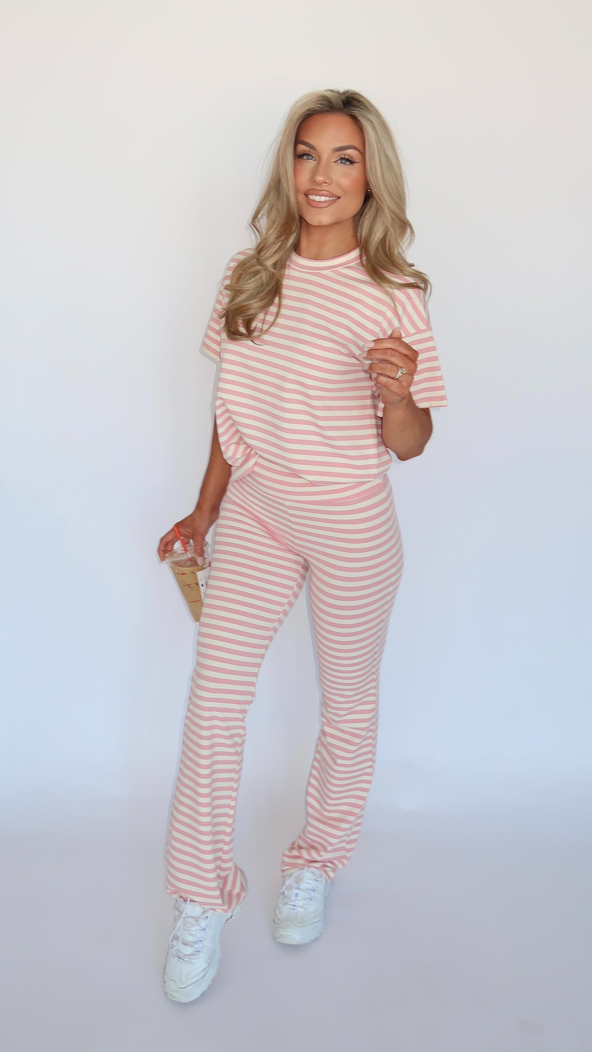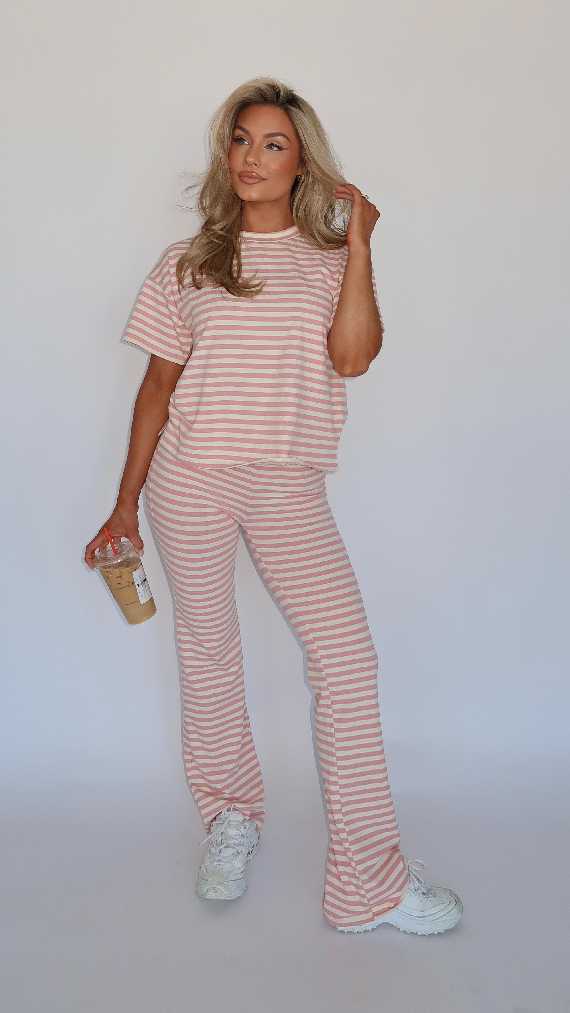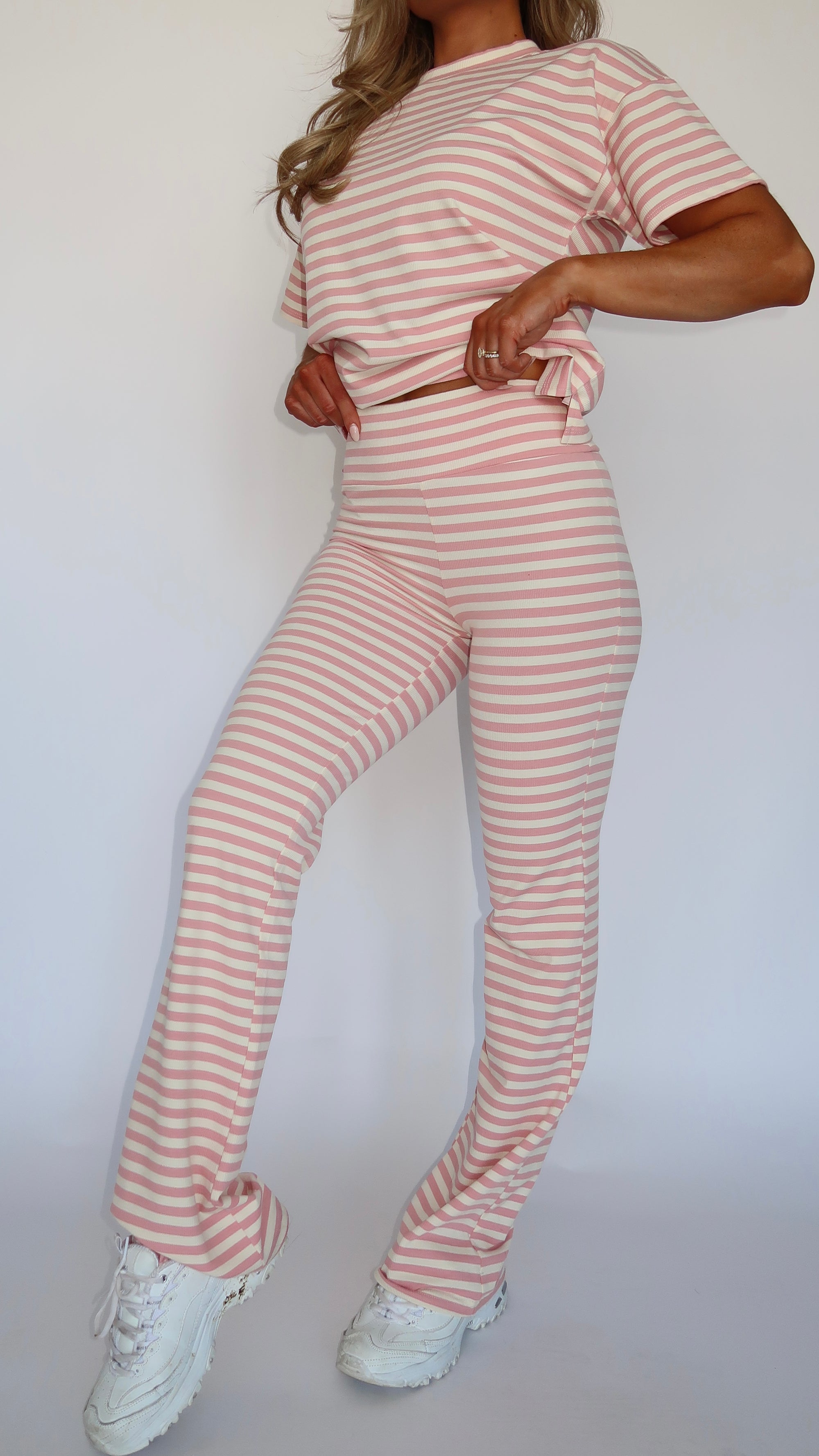STRAWBERRY STRIPED FLARE PANTS