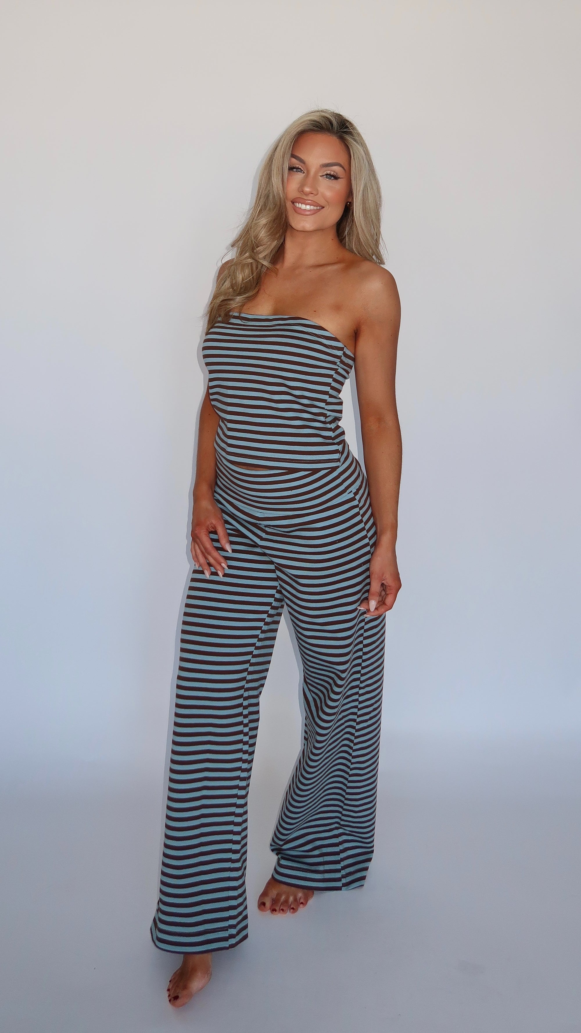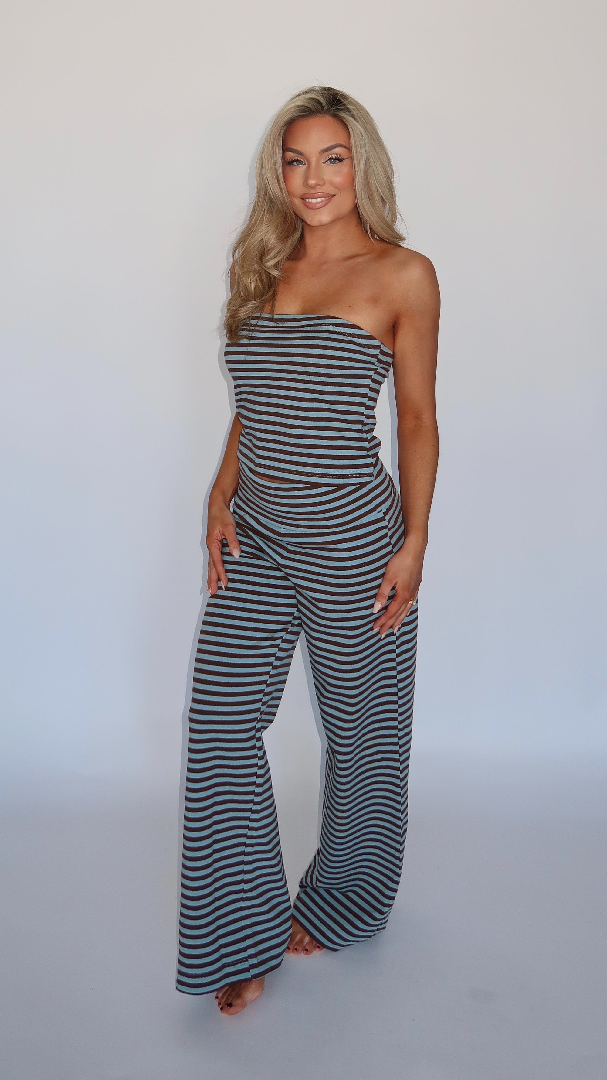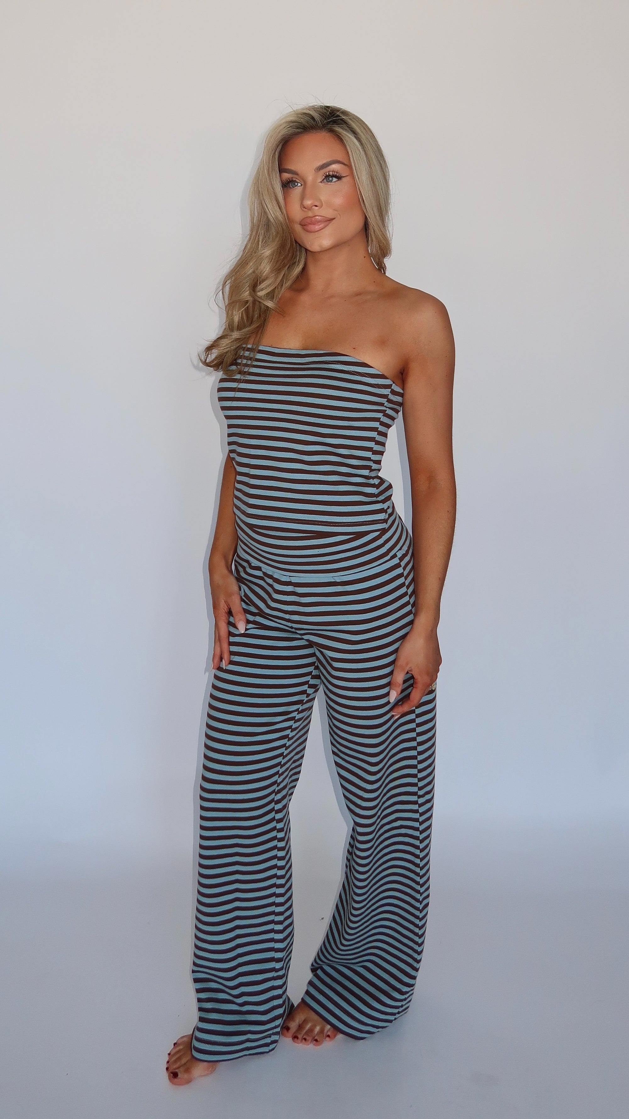 SPRINGSIDE STRAPLESS BANDEAU TOP BLUE/BROWN