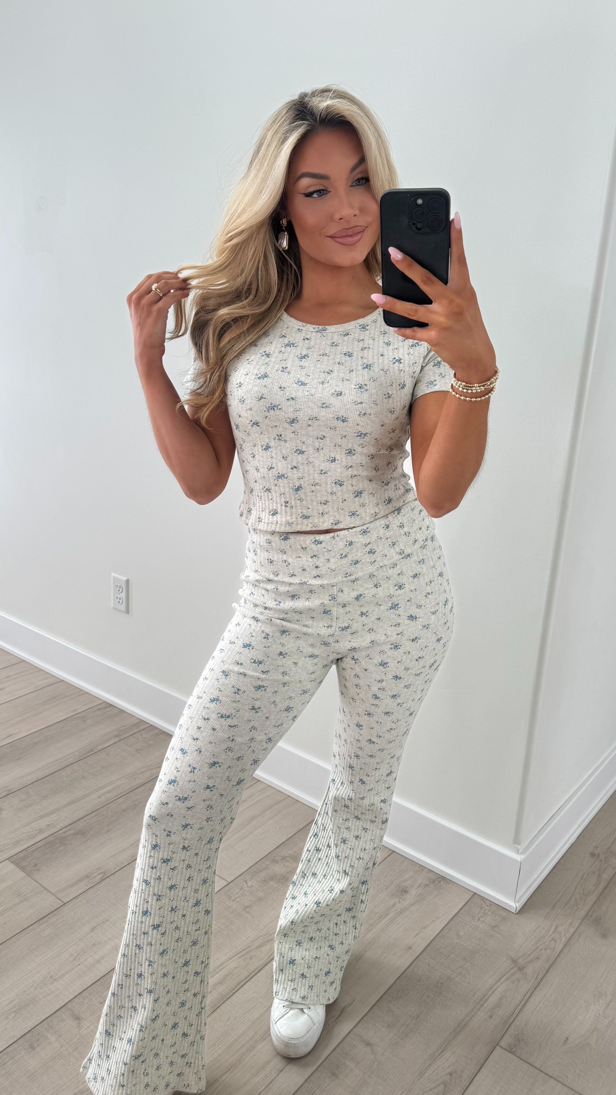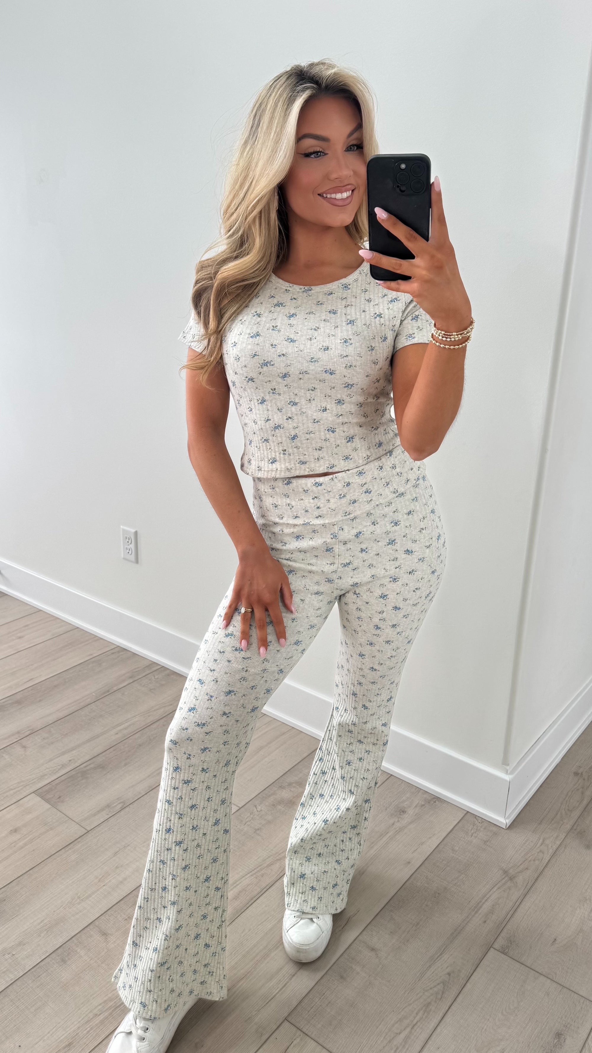 ROSEWATER RIBBED FLORAL SET HEATHER GREY