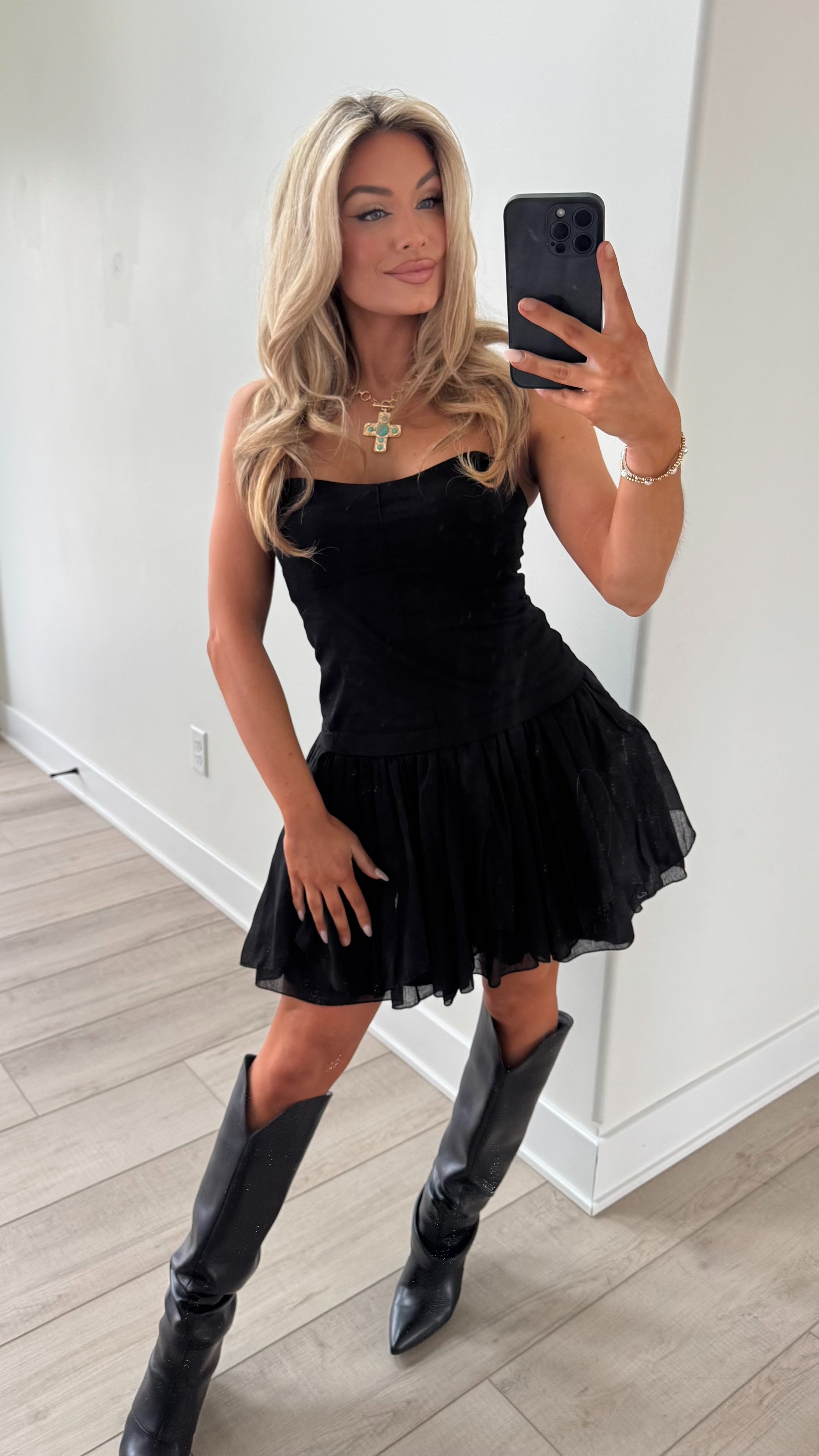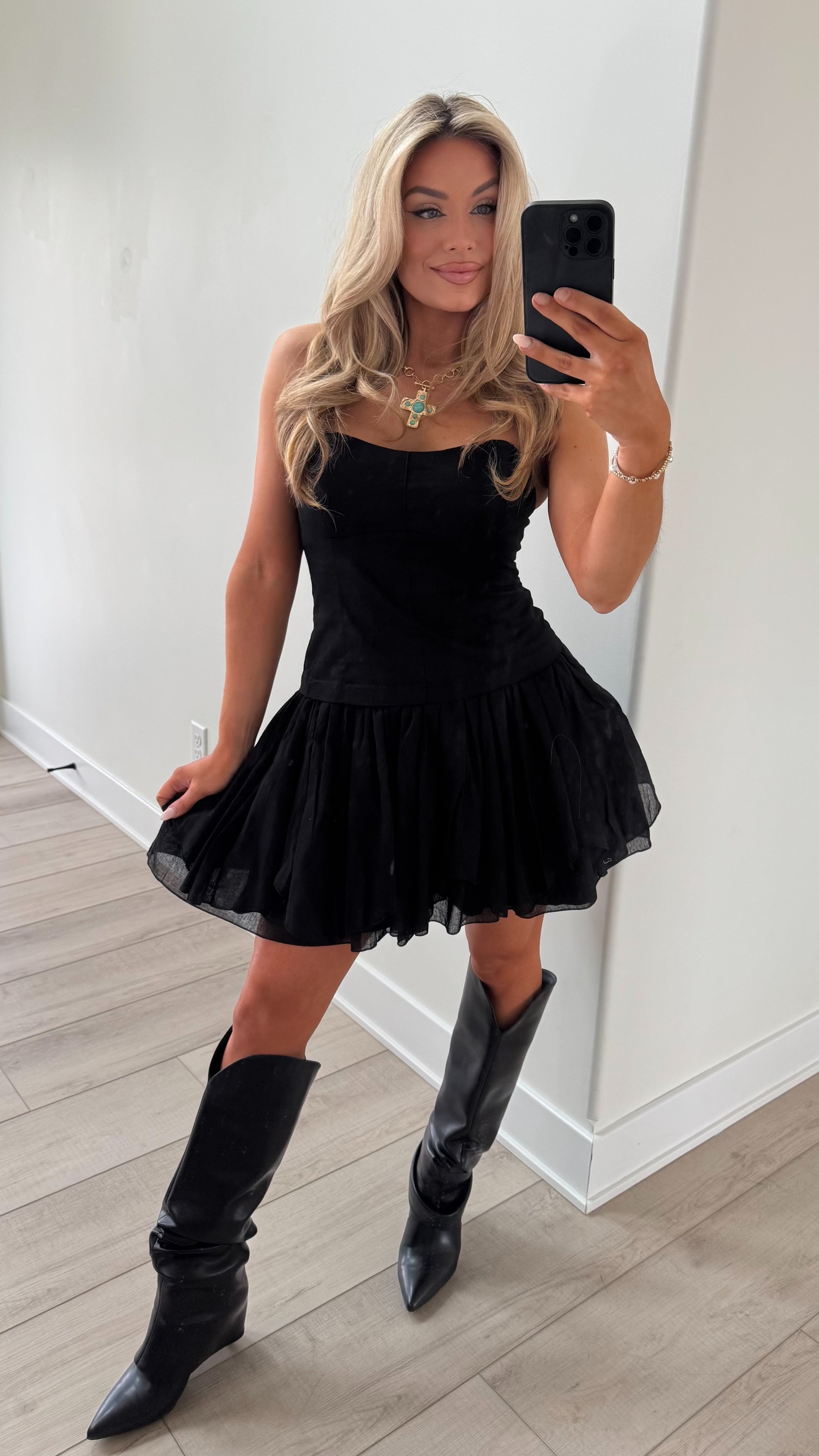BLACK SPUR STRAPLESS MINI DRESS