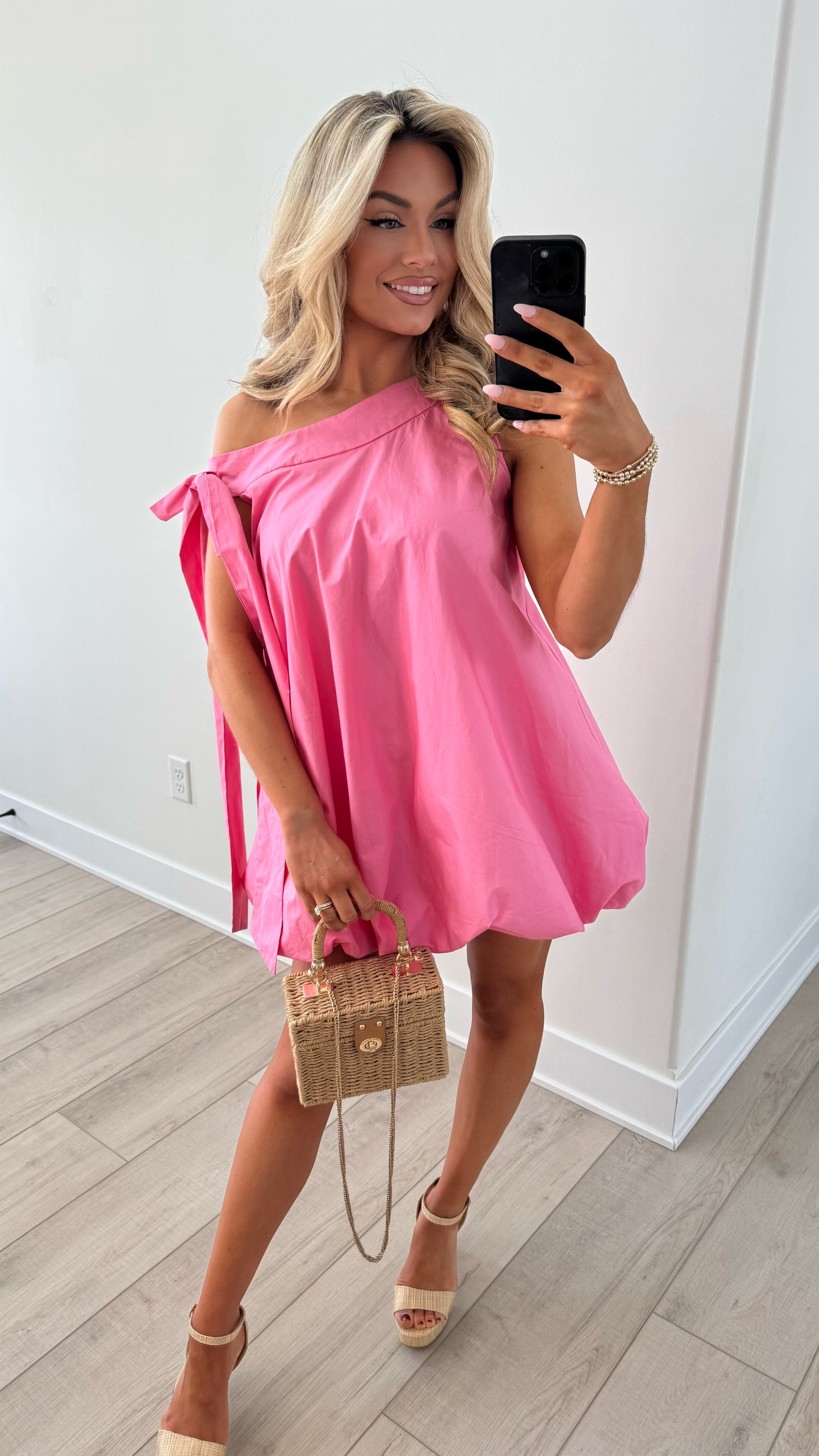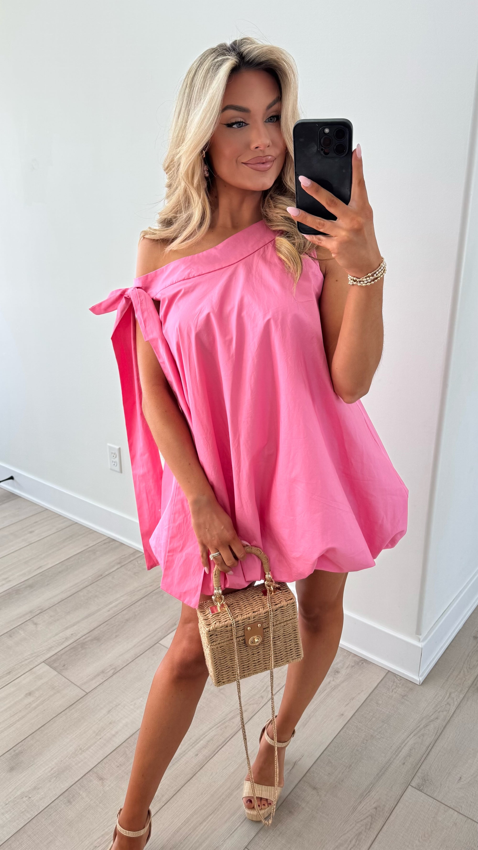 SWEET PEA ONE SHOULDER BUBBLE DRESS PINK