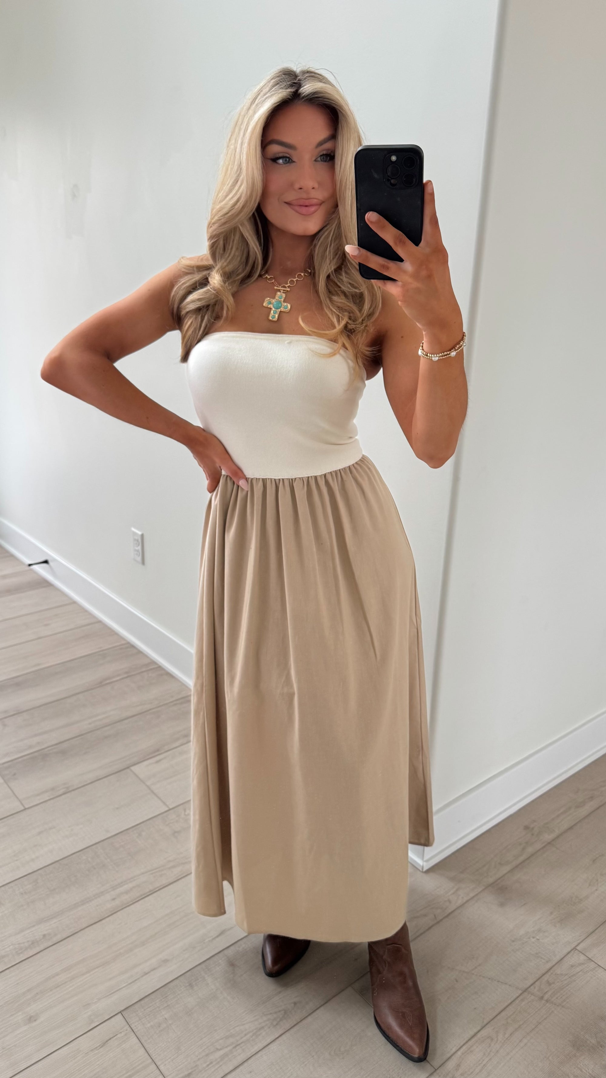 FORT WORTH STRAPLESS MAXI TAN