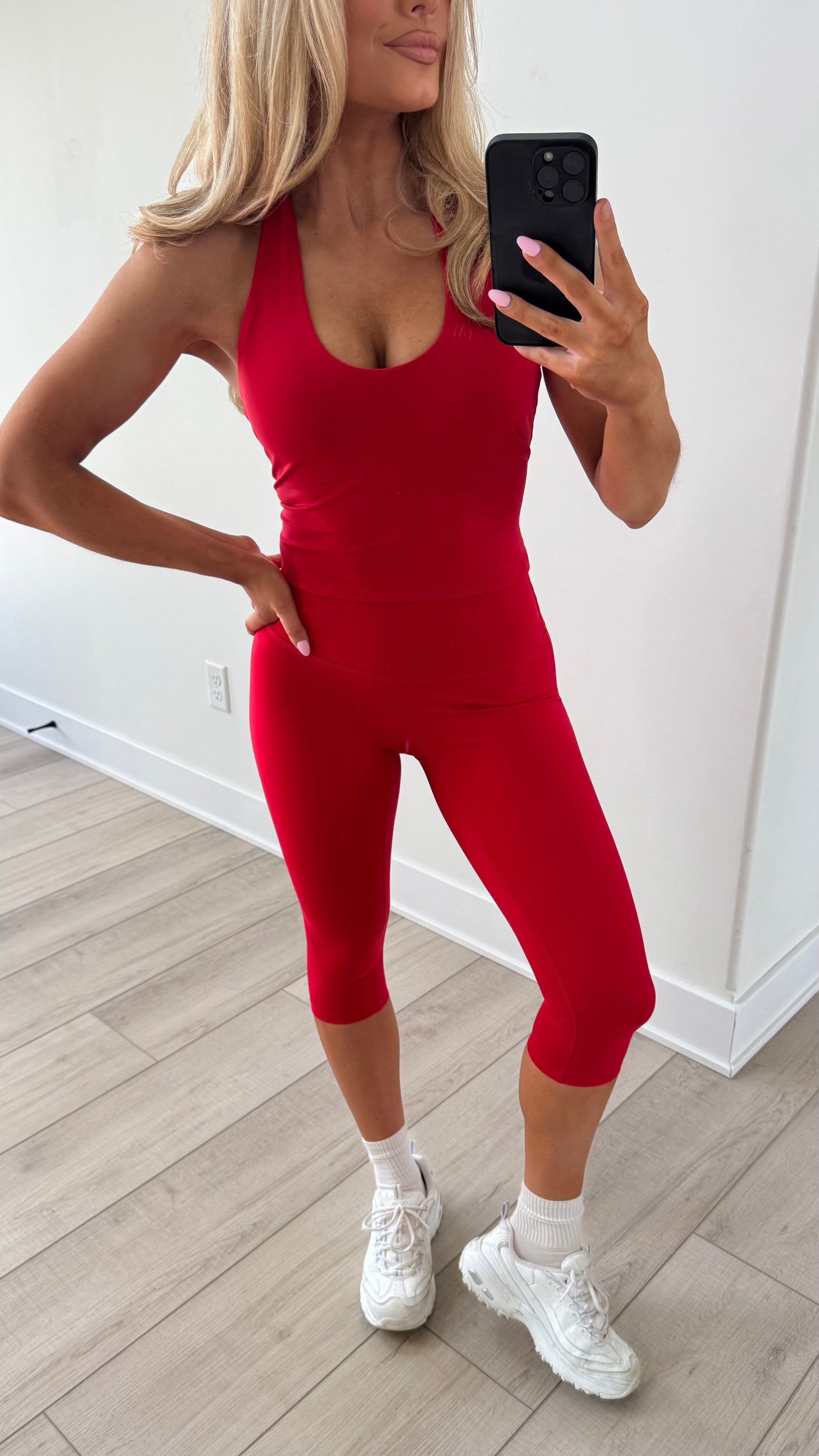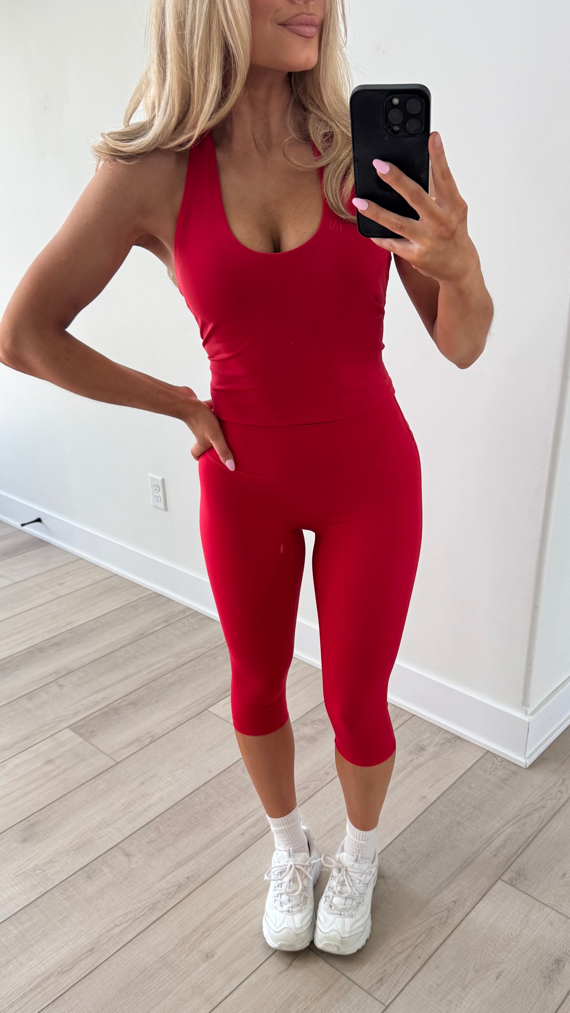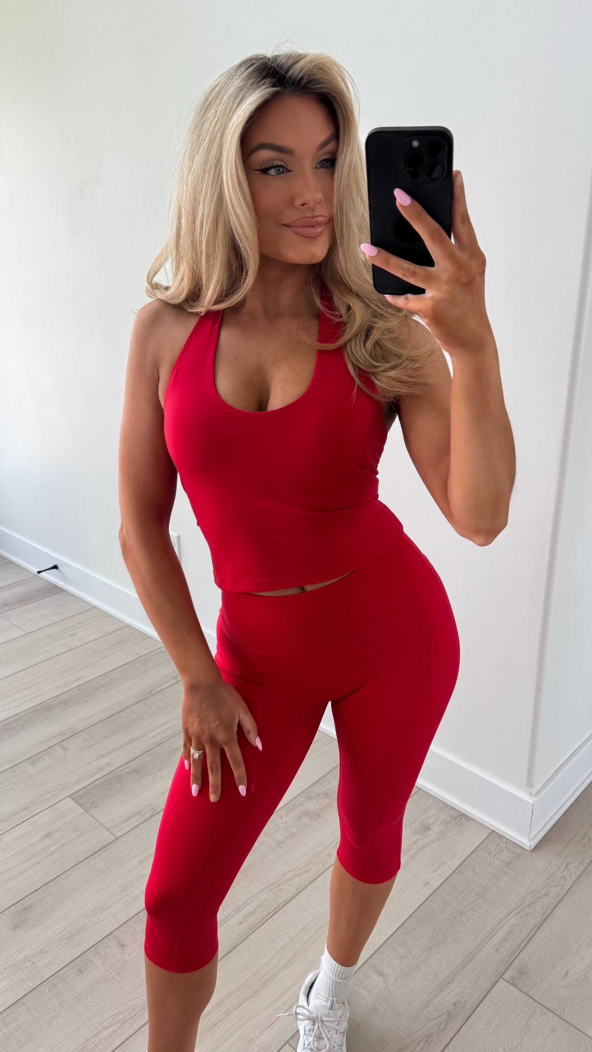 SCULPT SCOOP HALTER TOP RED (PRE-ORDER EST SHIP MAY 30th)