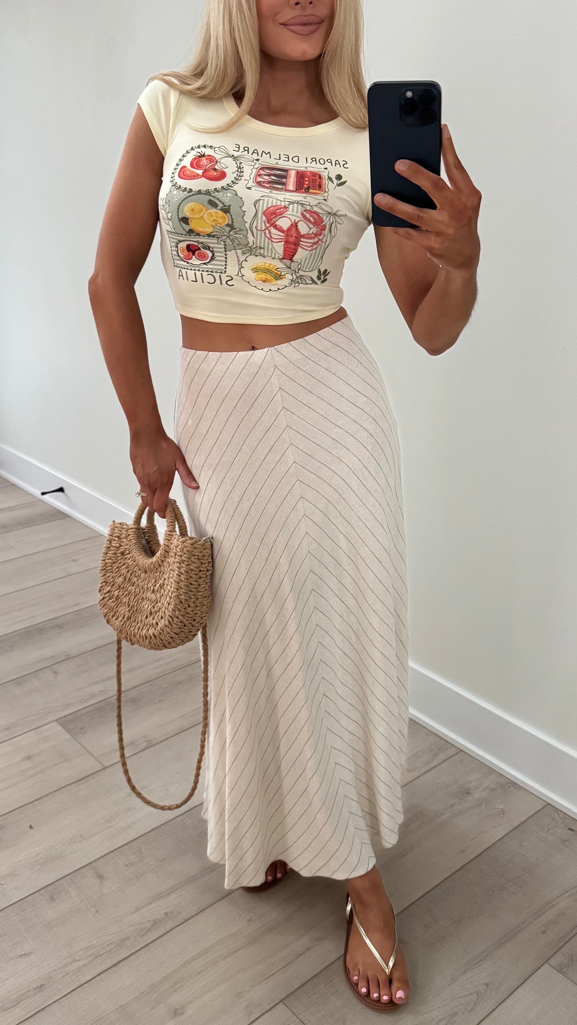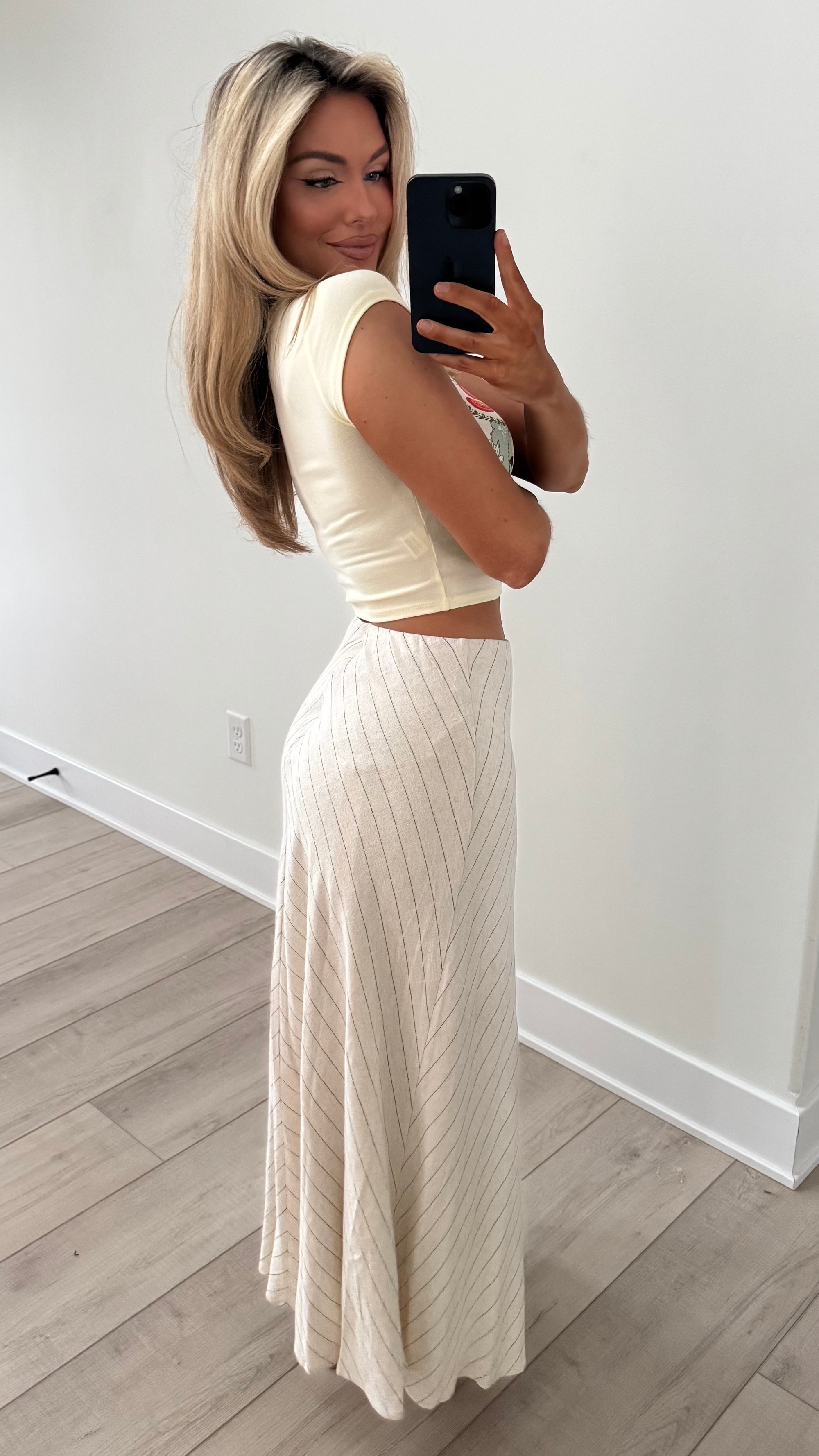 CHEVIE STRIPE MAXI SKIRT OATMEAL