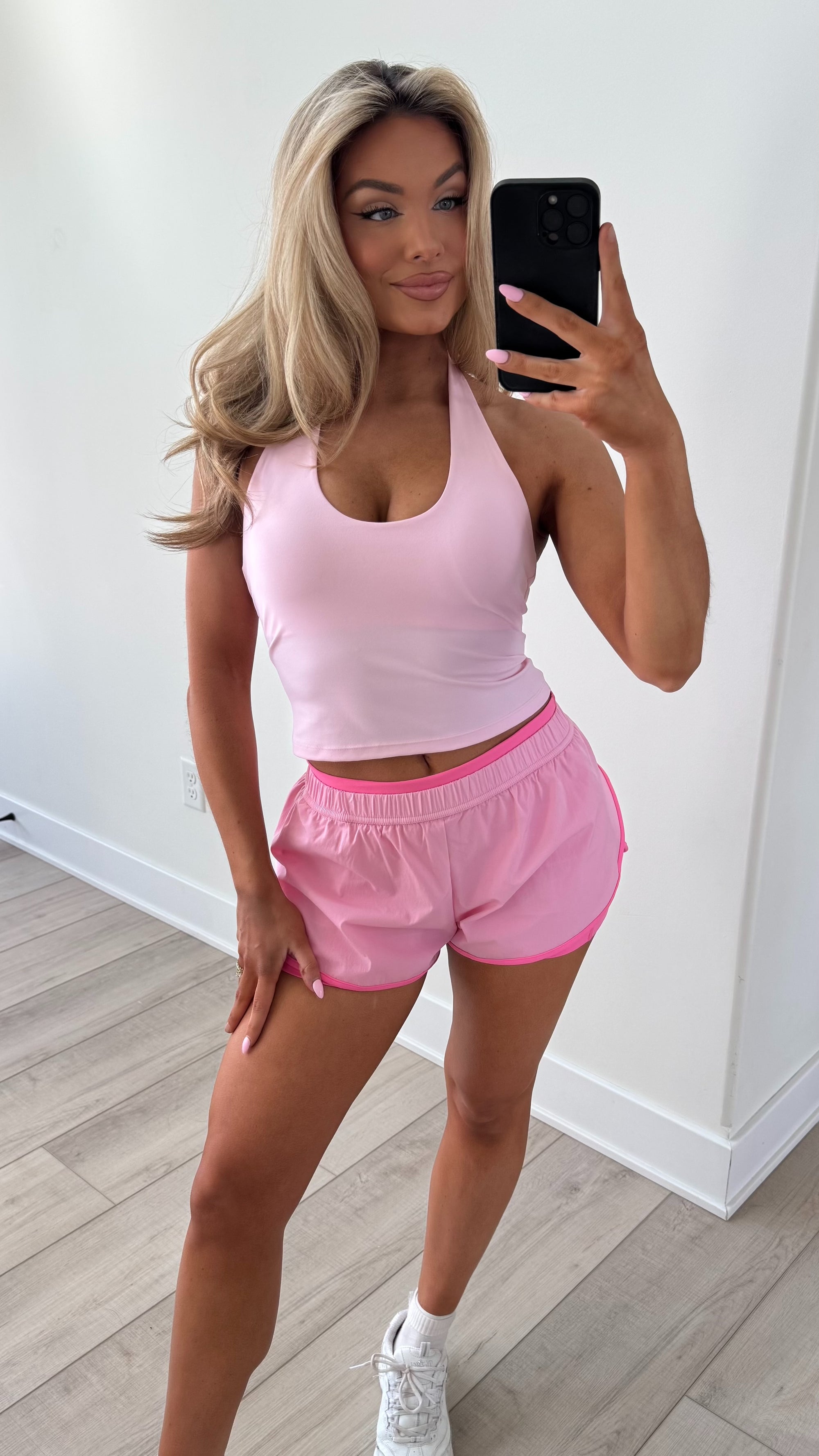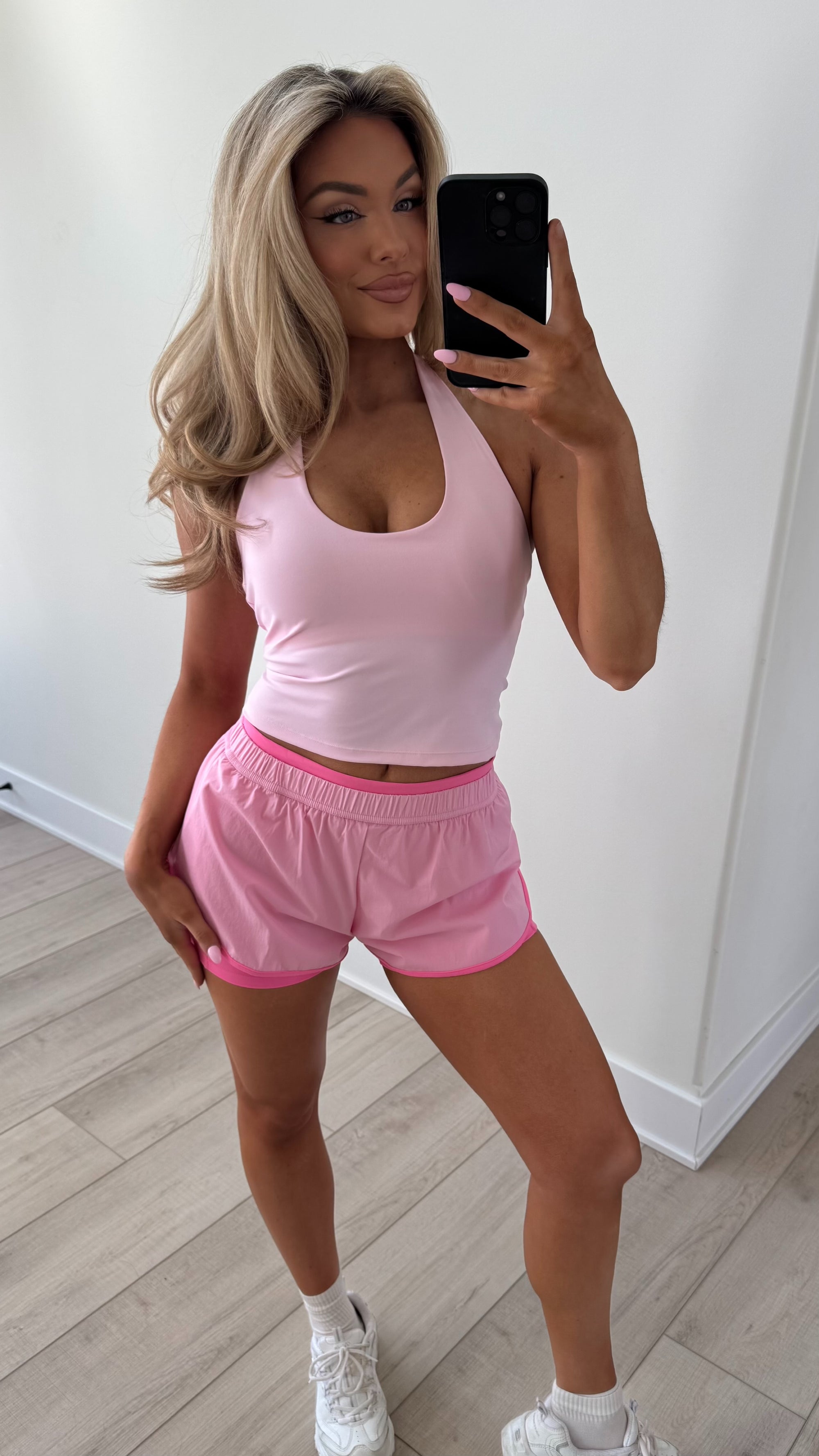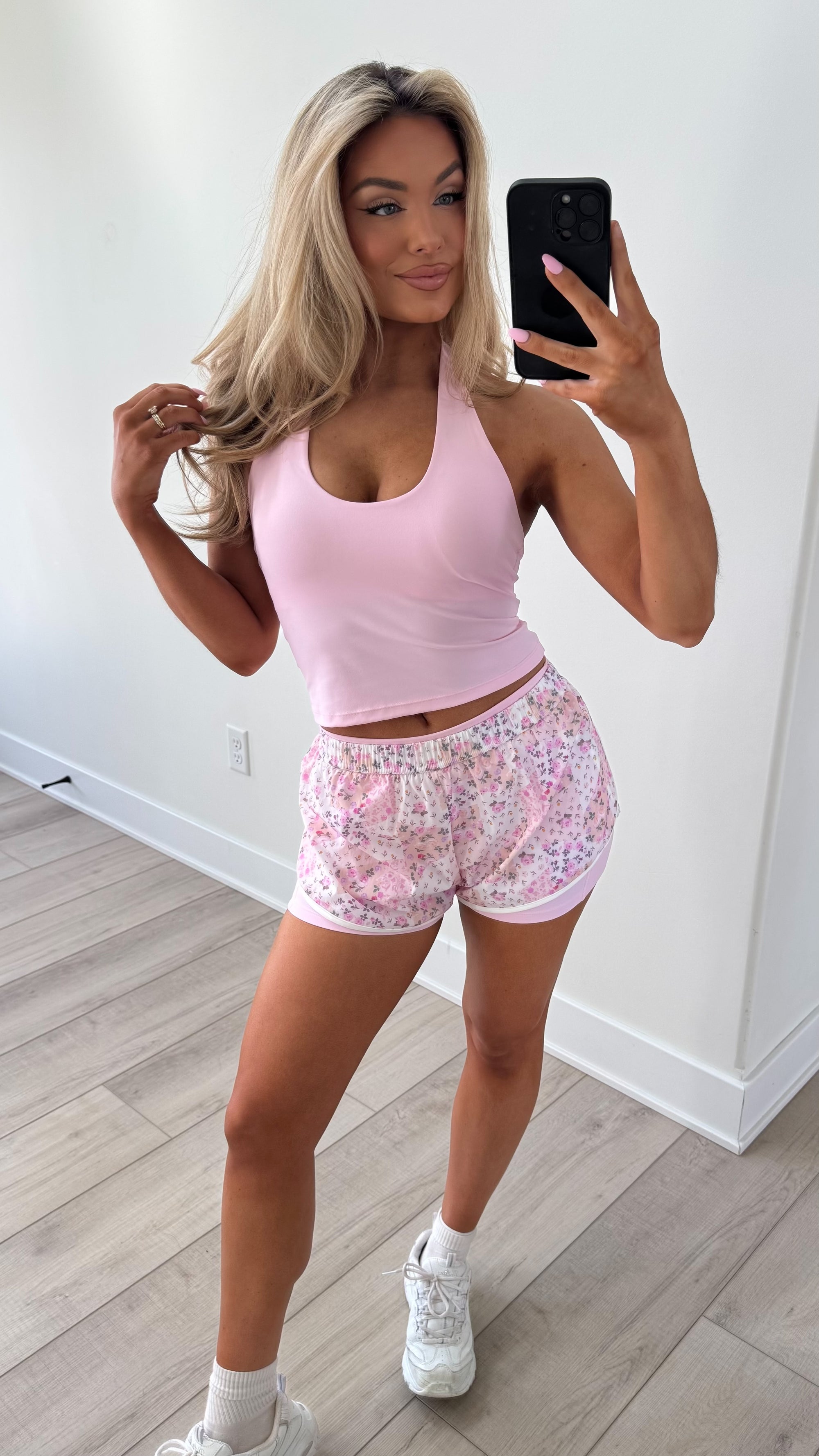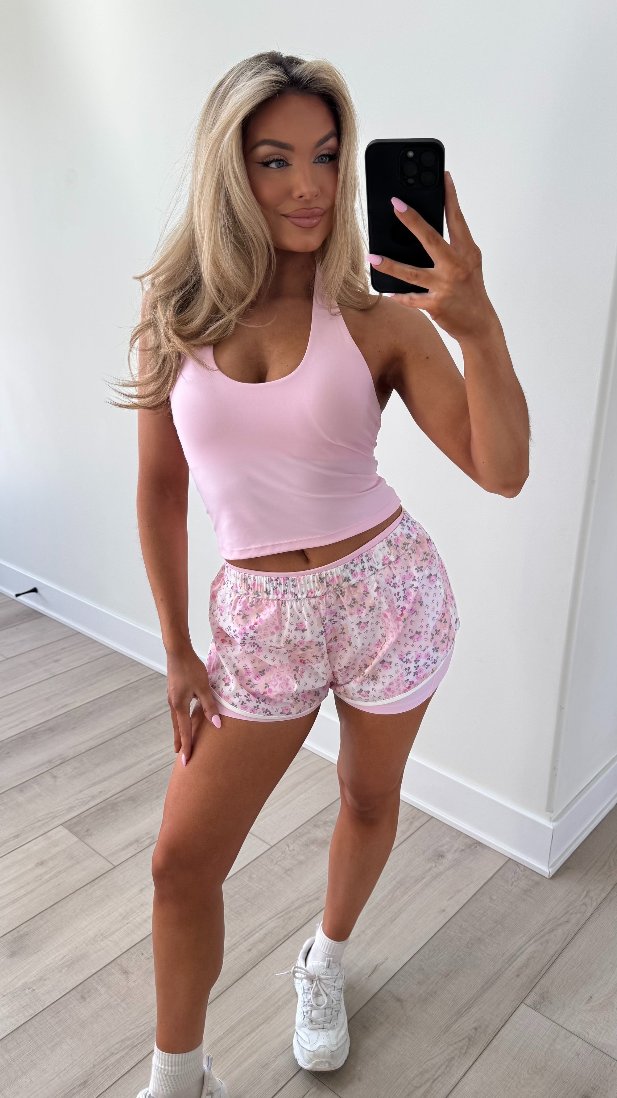 VARSITY LAYERED NYLON SHORTS PINK FLORAL