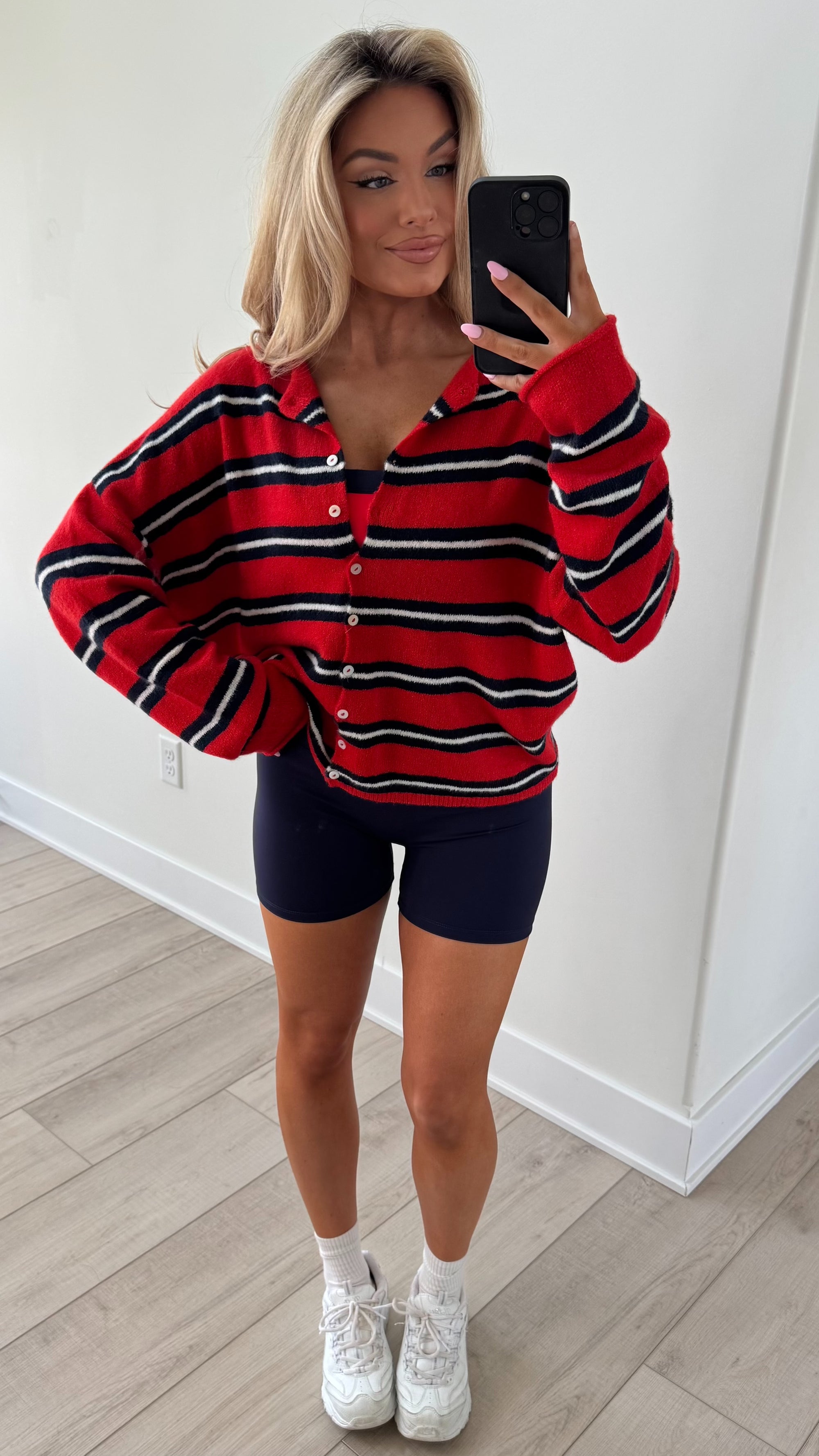 EAST COAST CARDIGAN NAVY/RED STRIPE