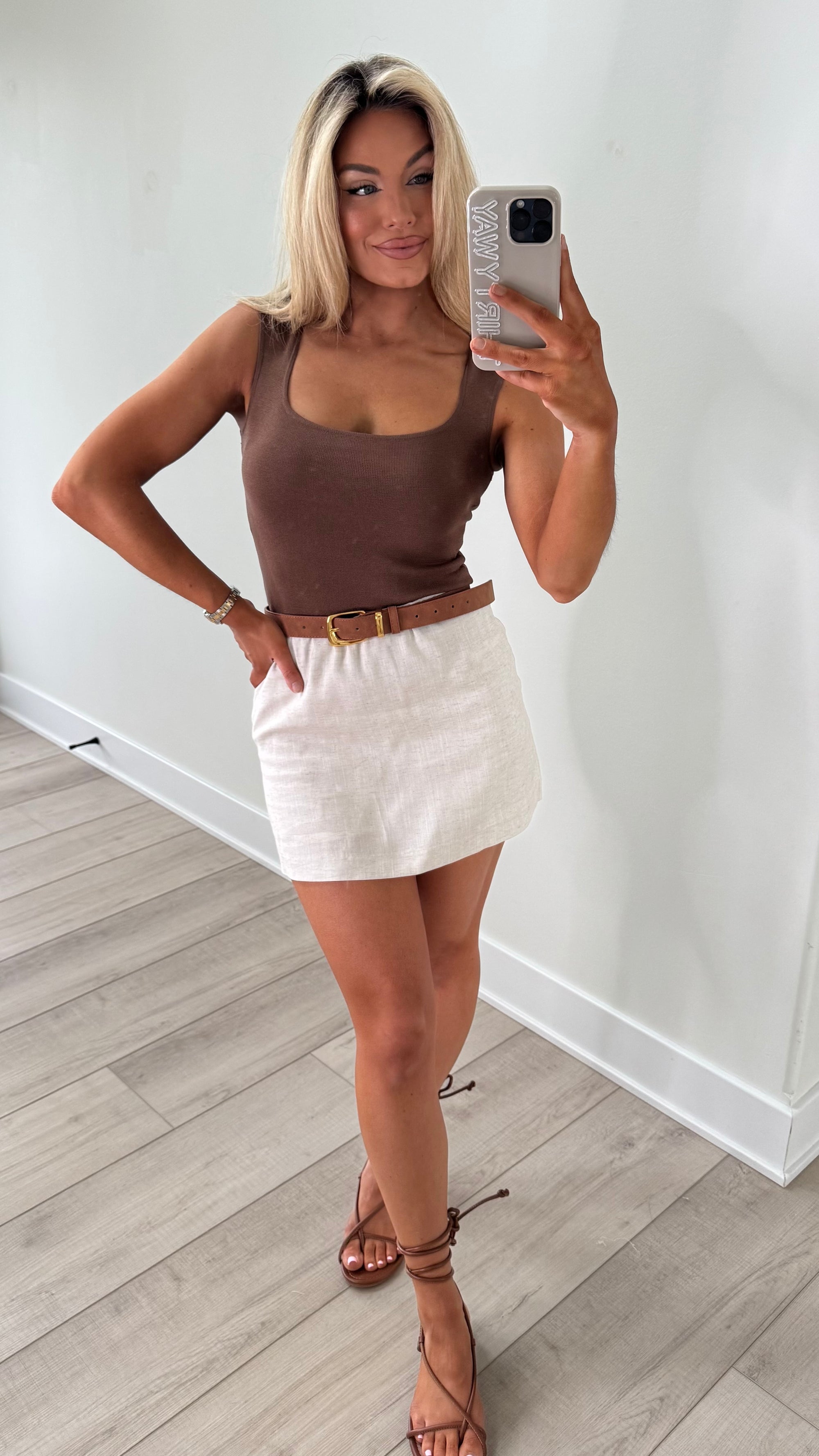 LINEN SKORT OATMEAL