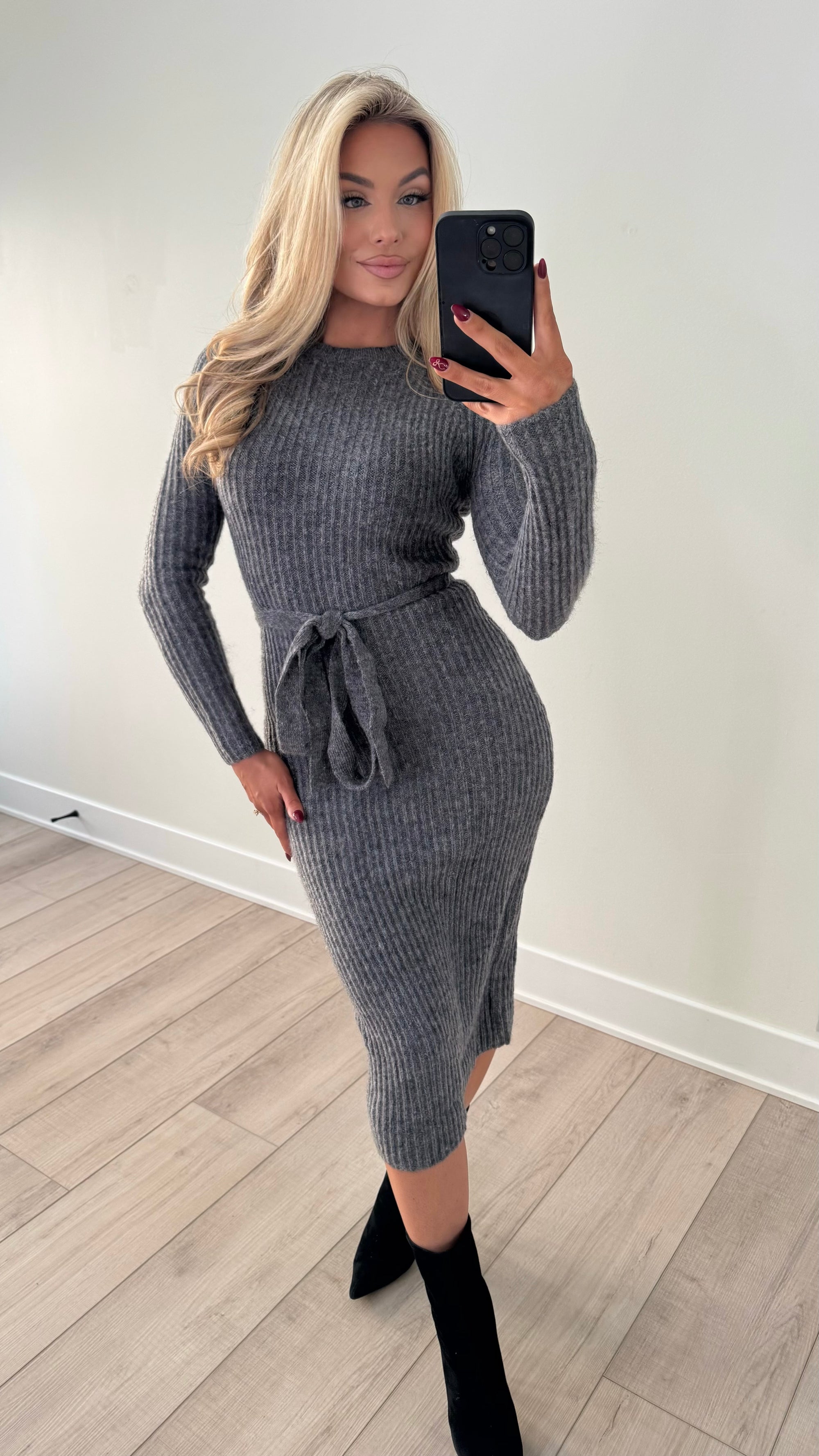 FROSTED FEATHER TRIM BLACK SWEATER DRESS