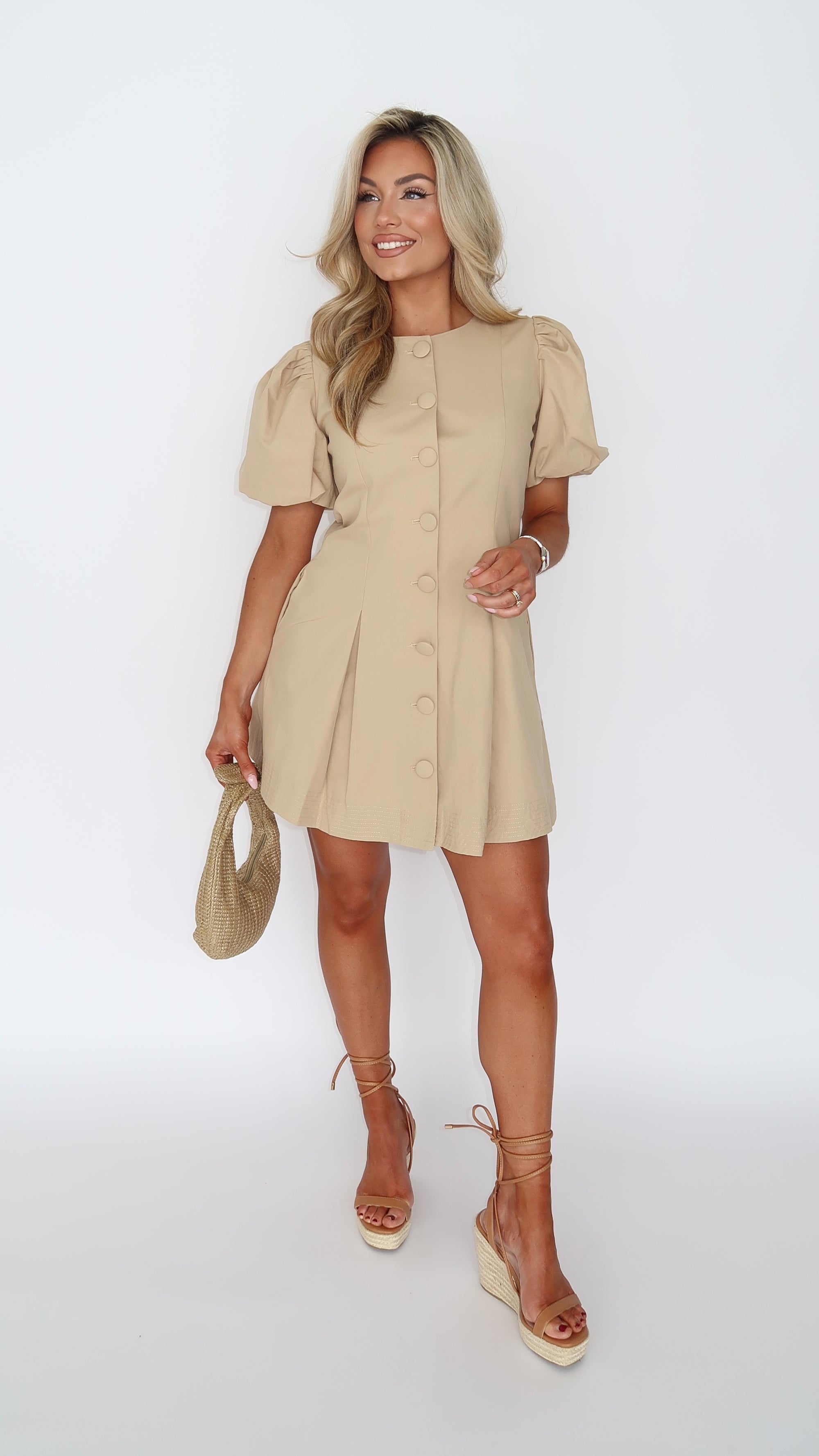 PEONY PUFF SLEEVE MINI DRESS TAN