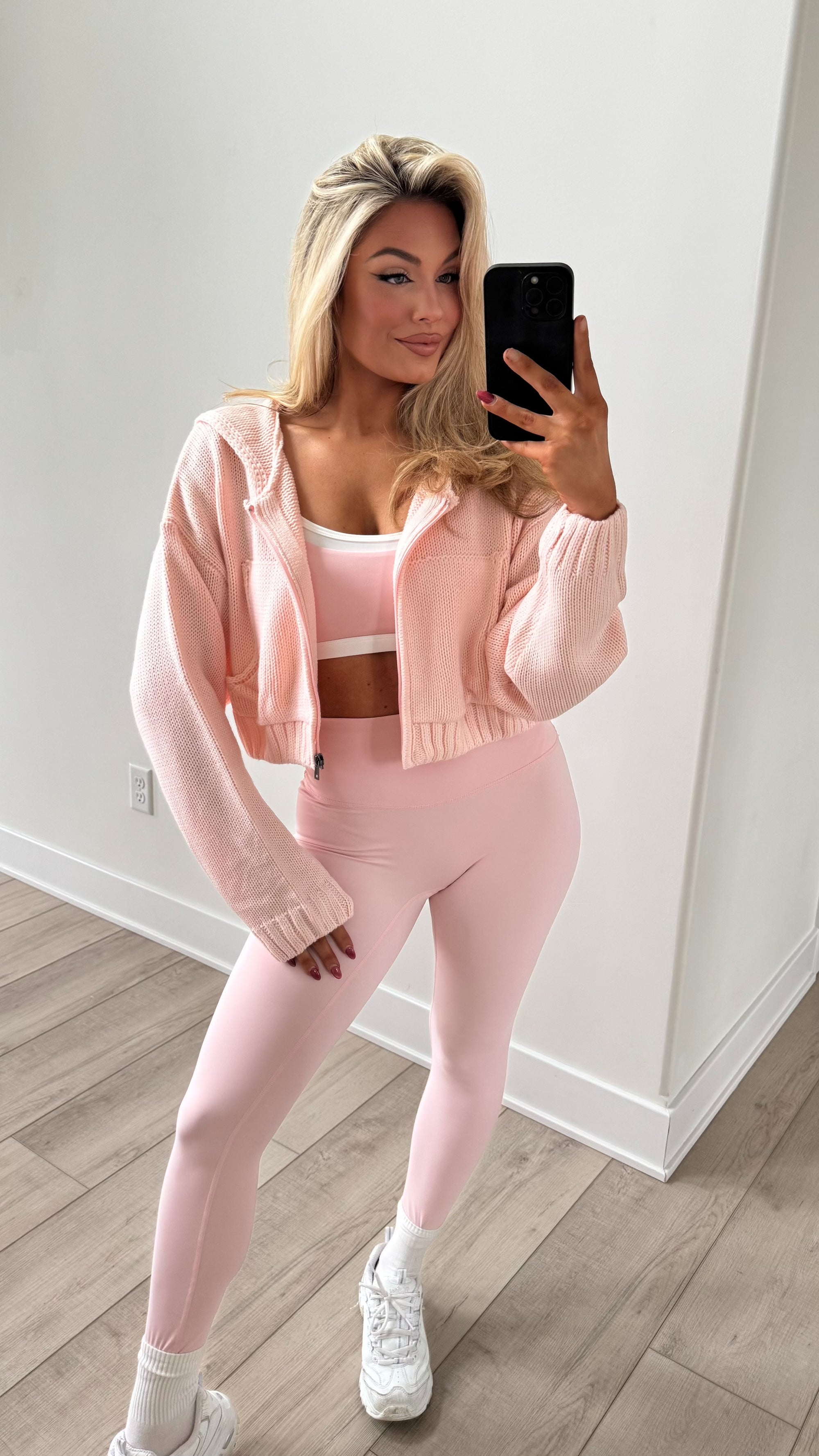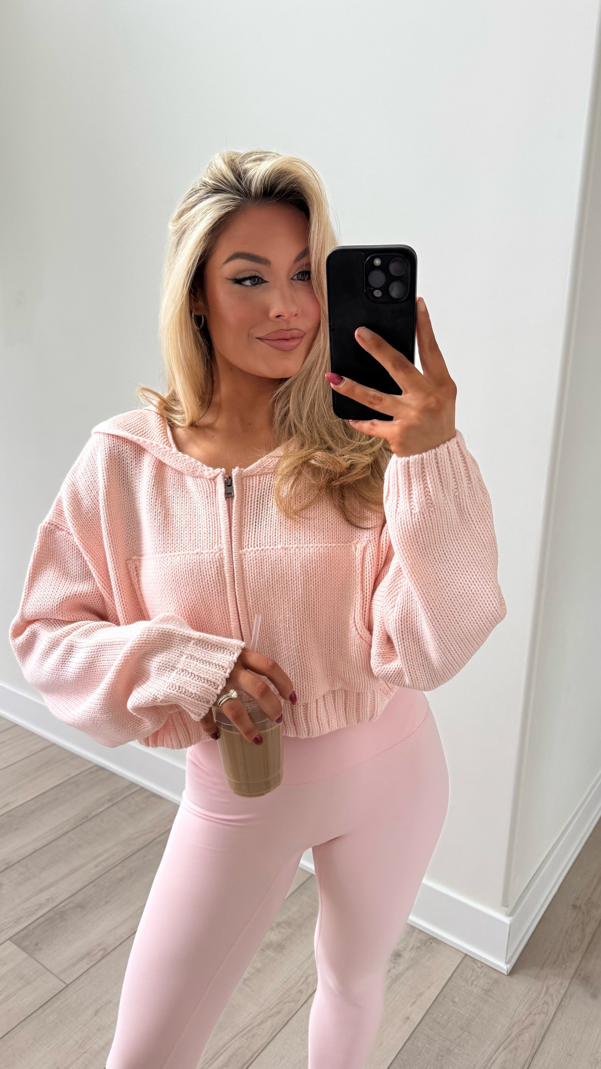 CINNAMON CHAI CROPPED ZIP UP HOODIE BABY PINK
