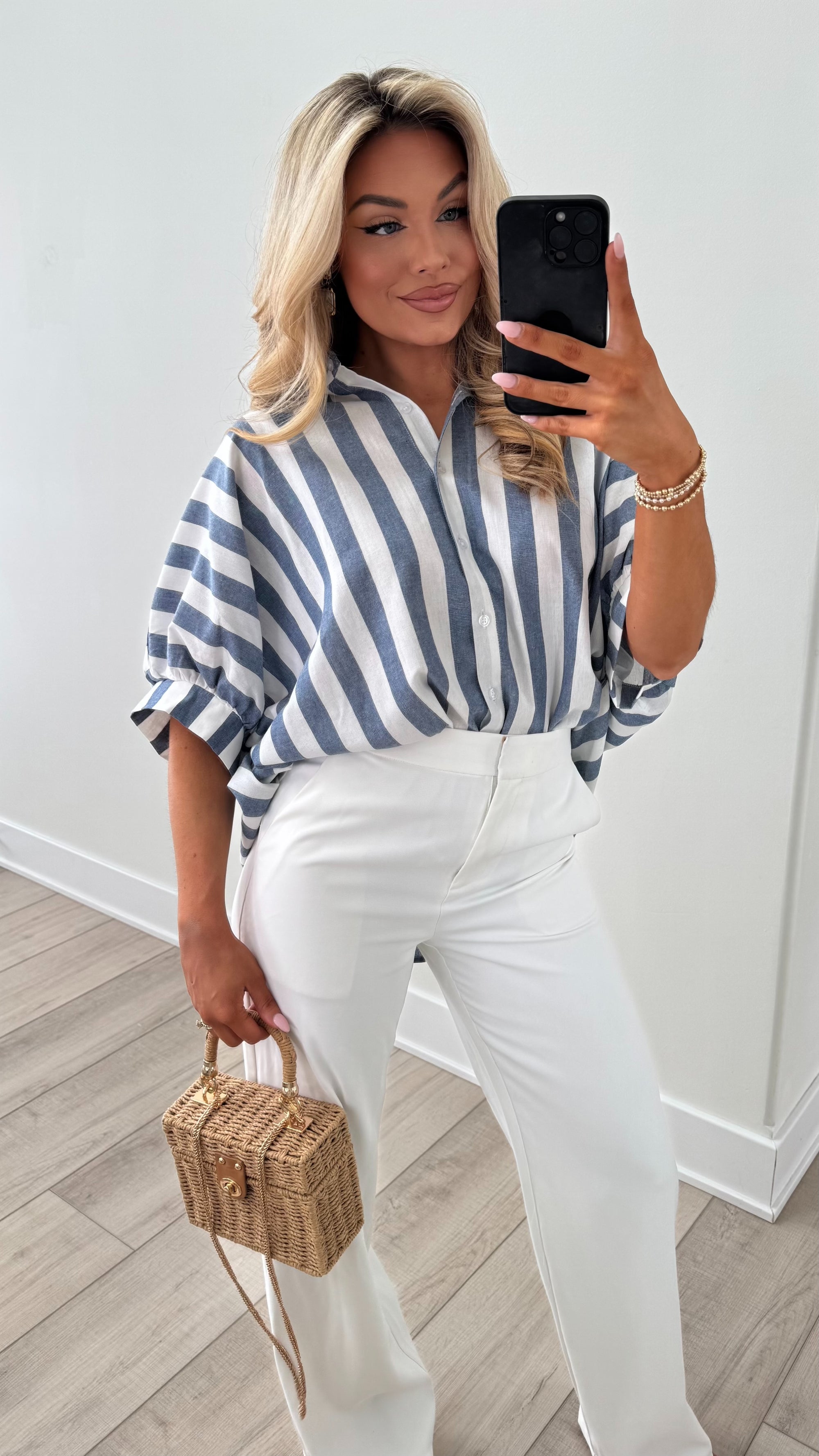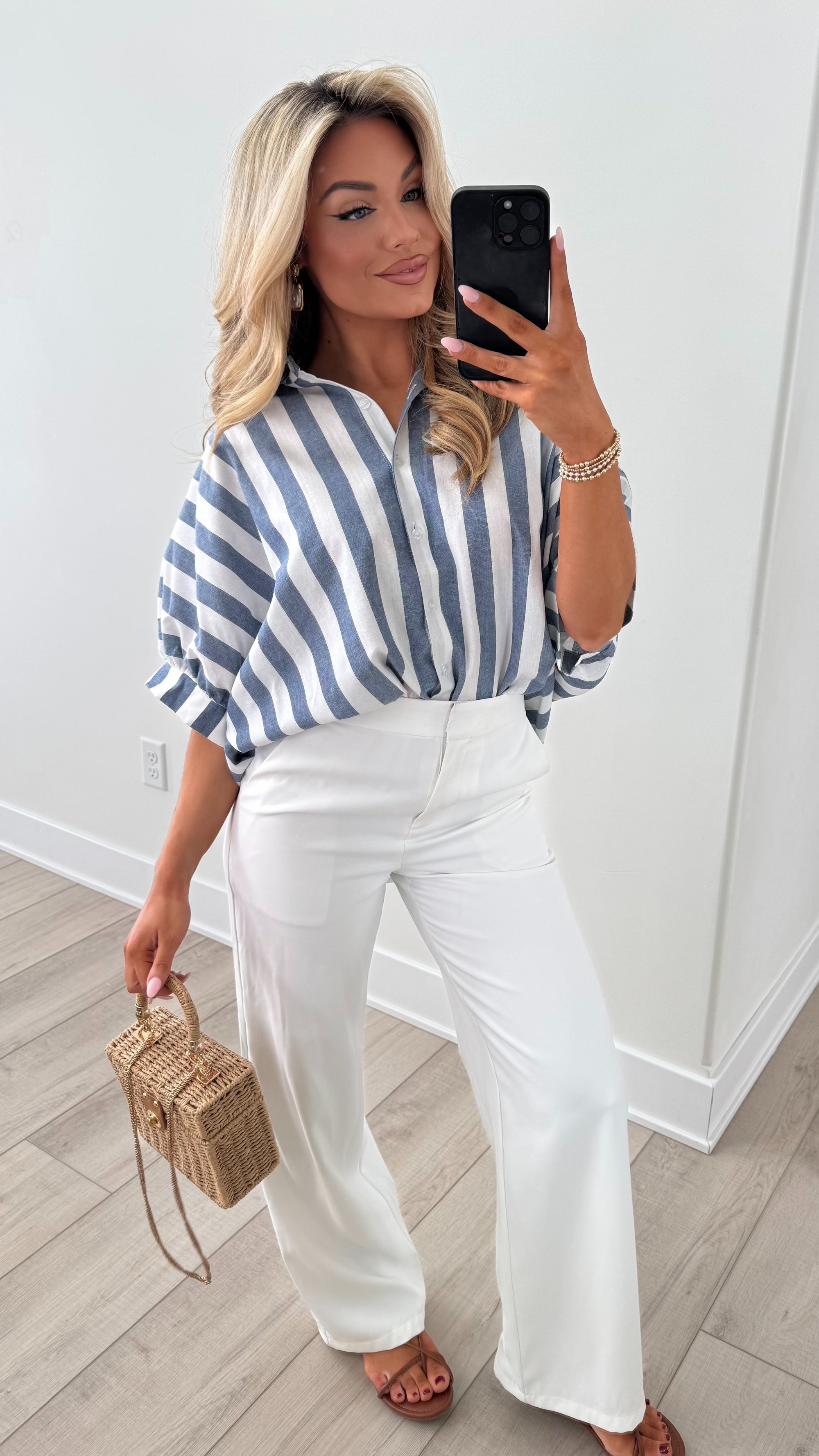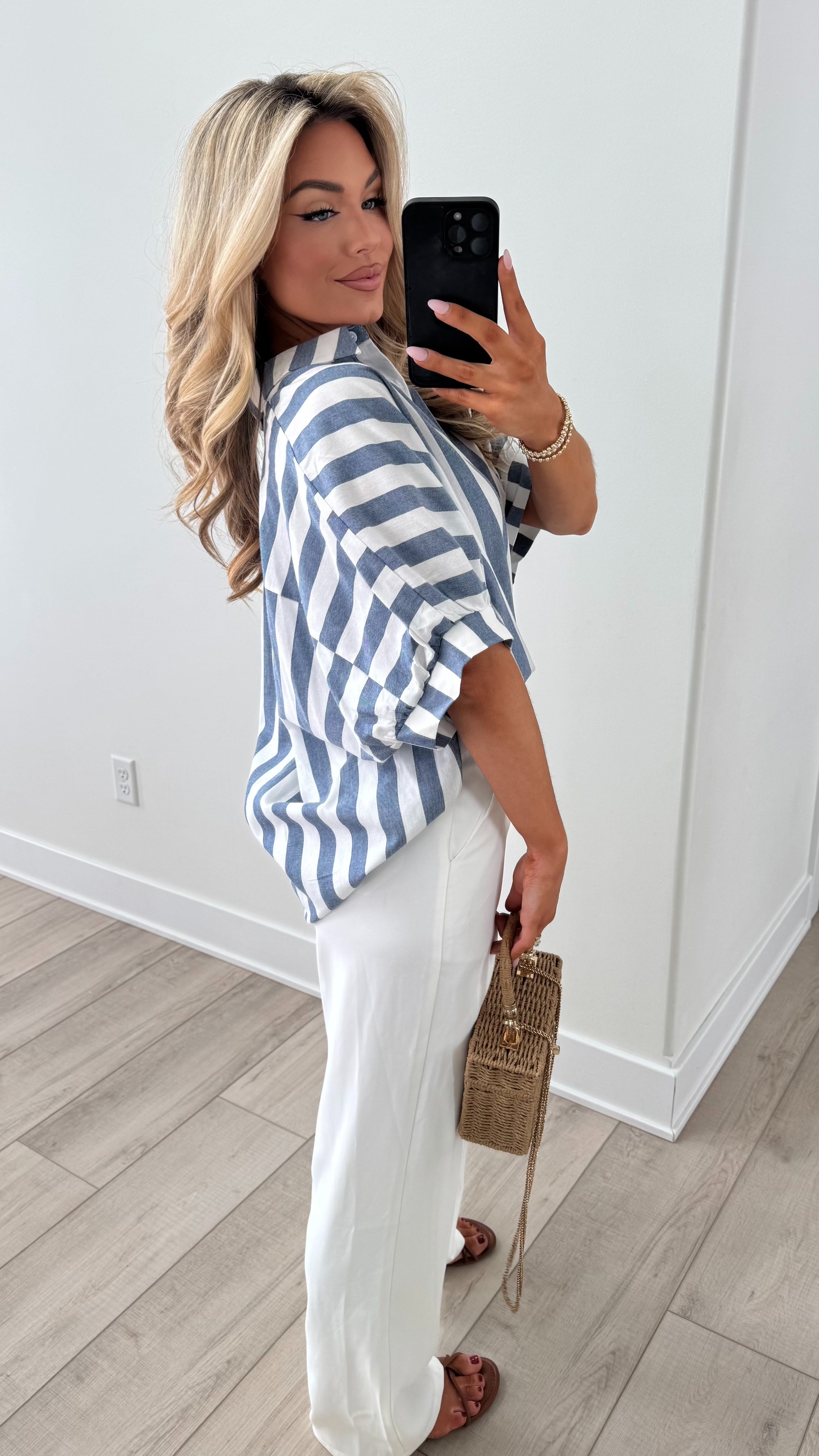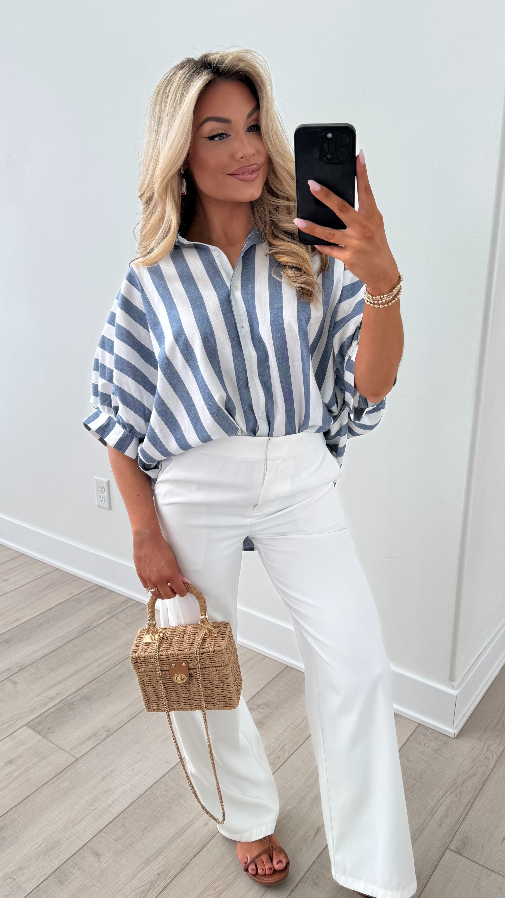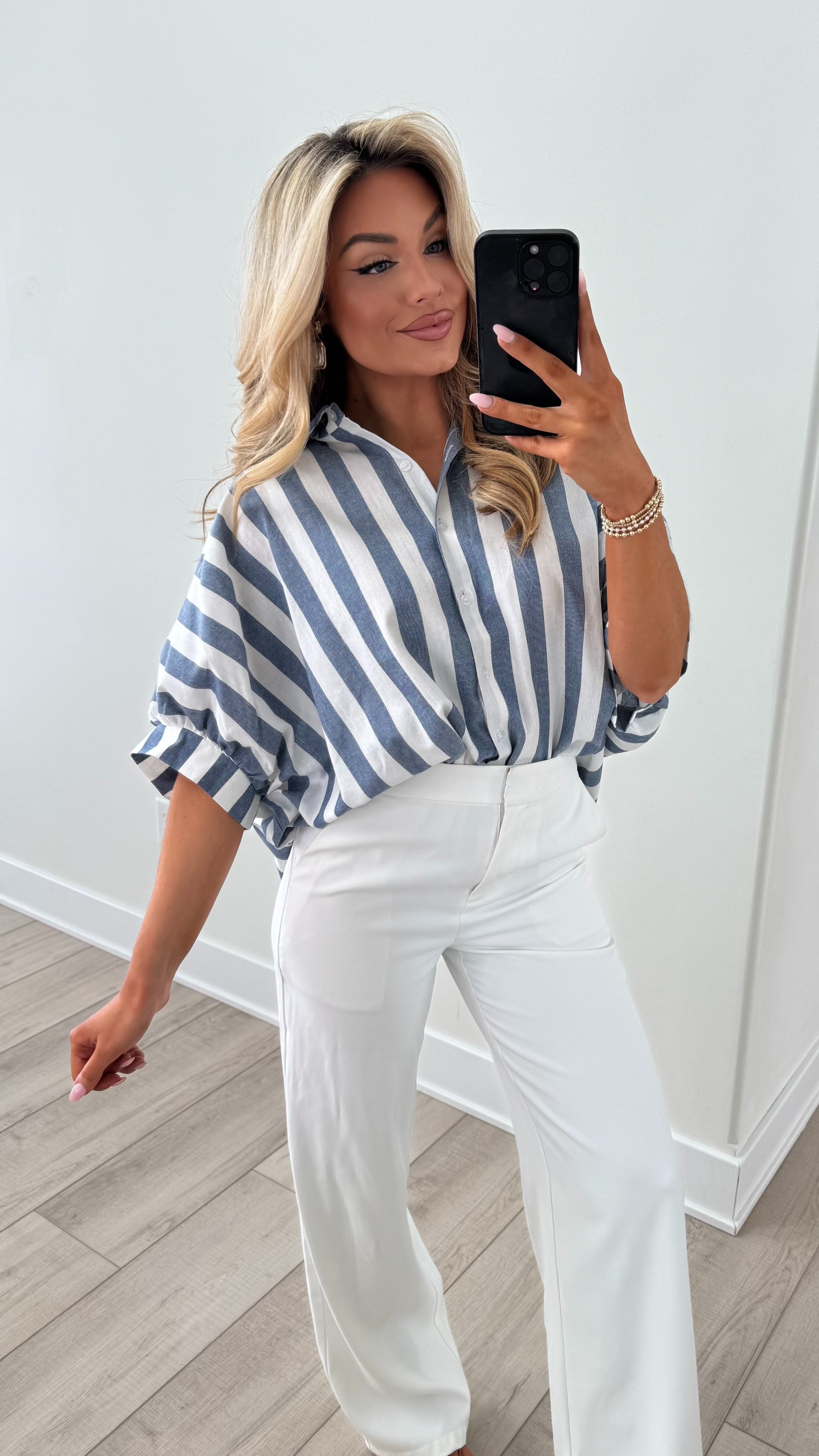 SAILOR NAVY STRIPED BUTTON DOWN TOP