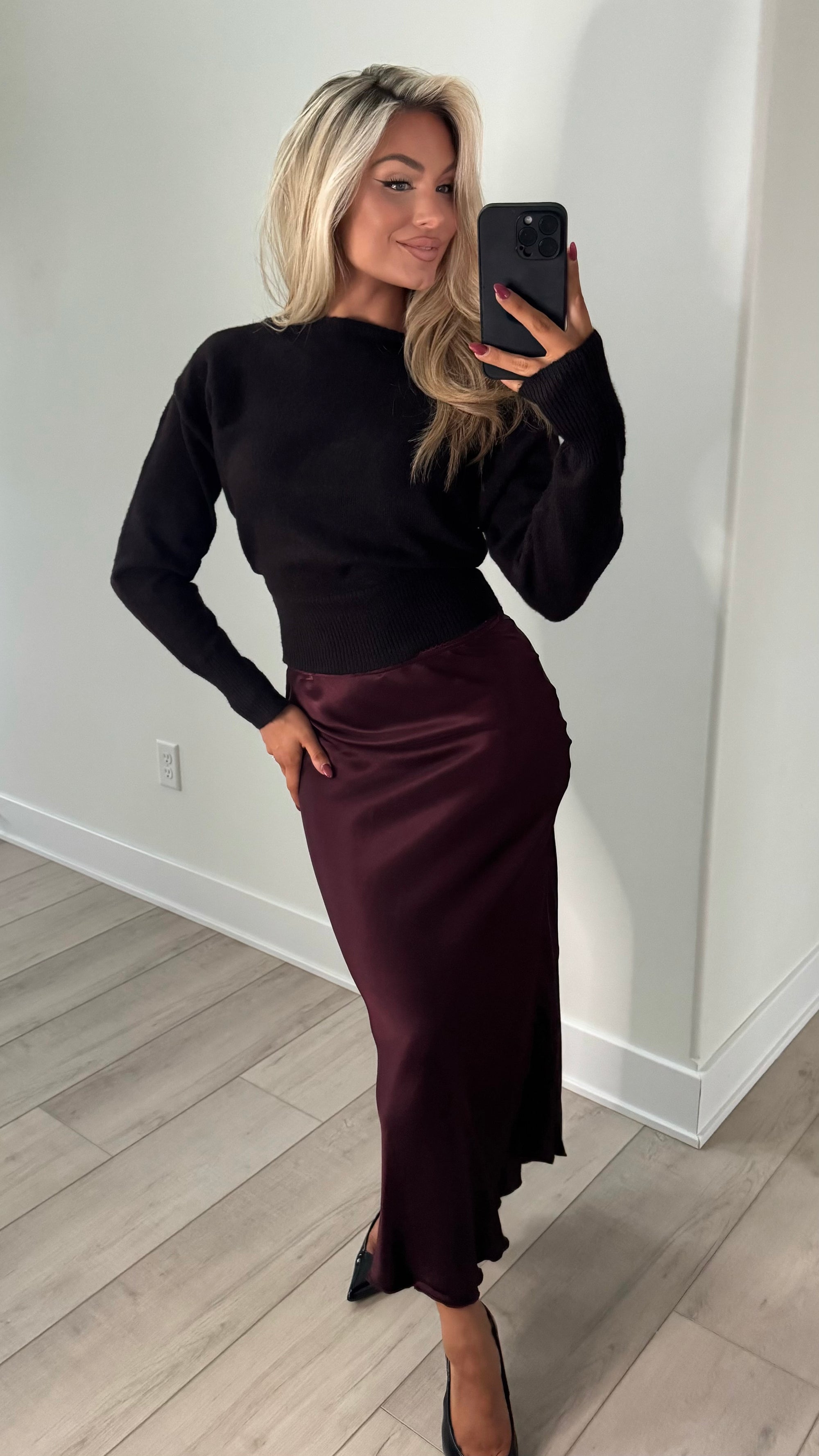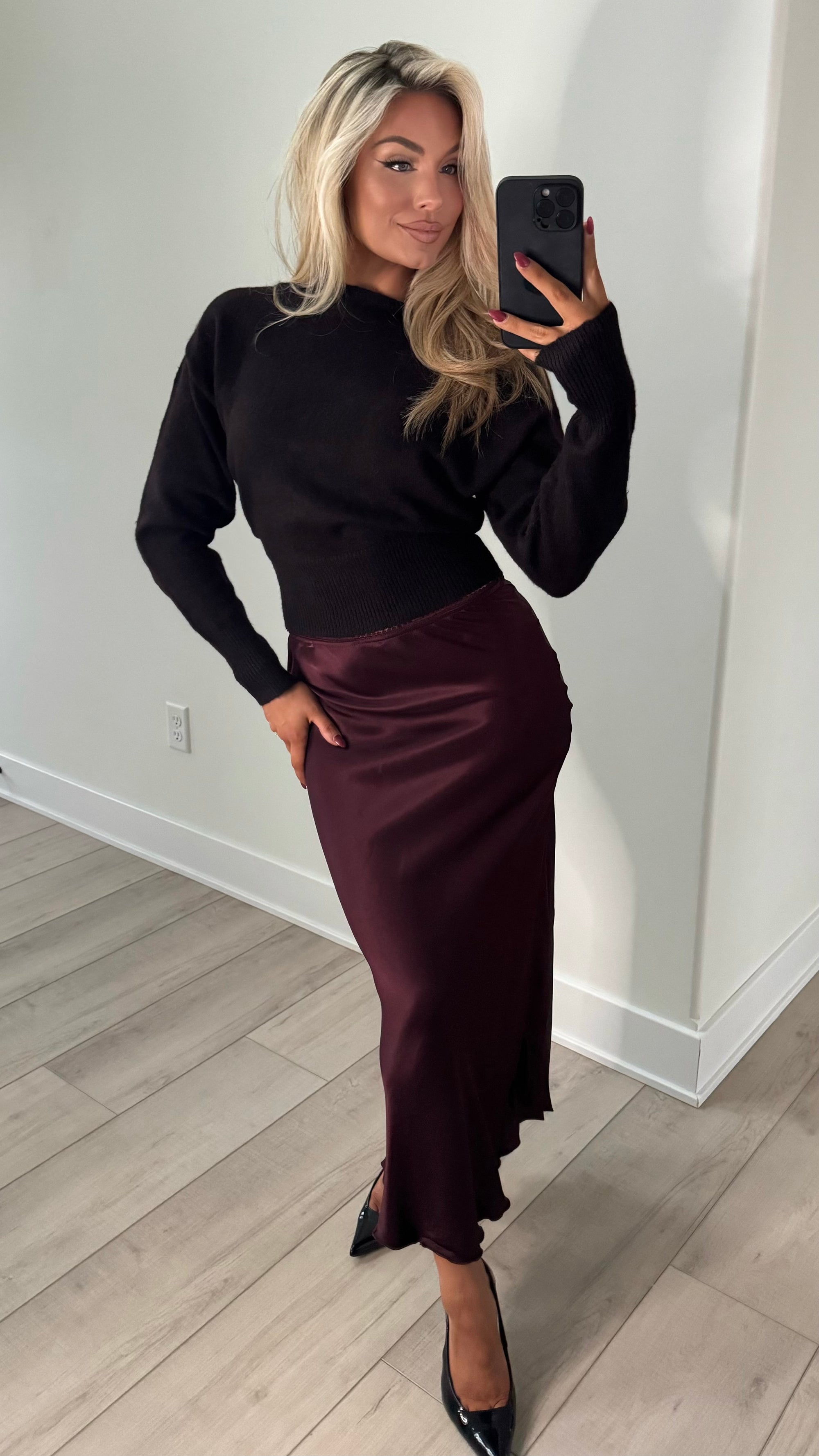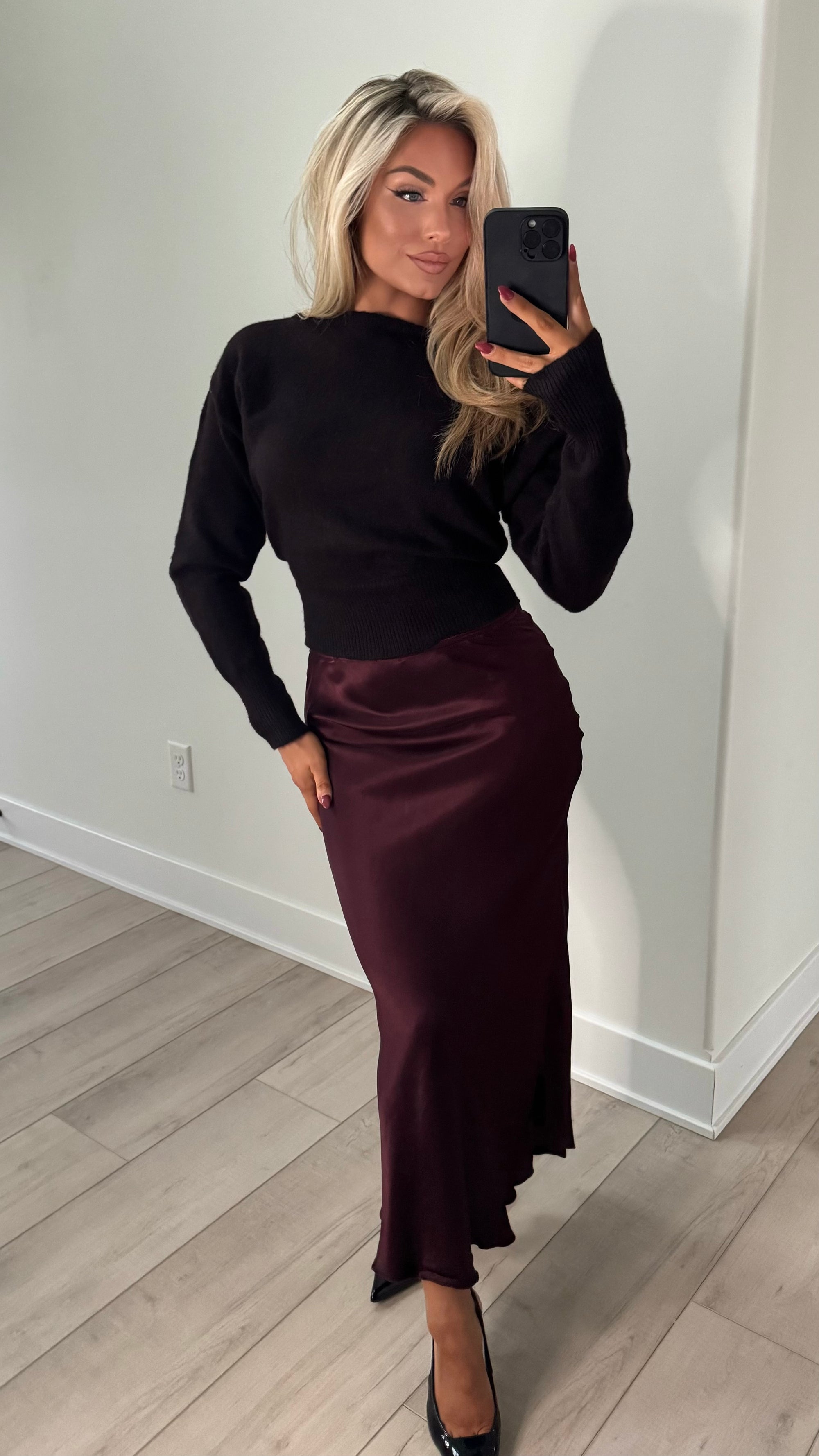 LACEY HIGH-WAISTED SATIN SLIP SKIRT WINE
