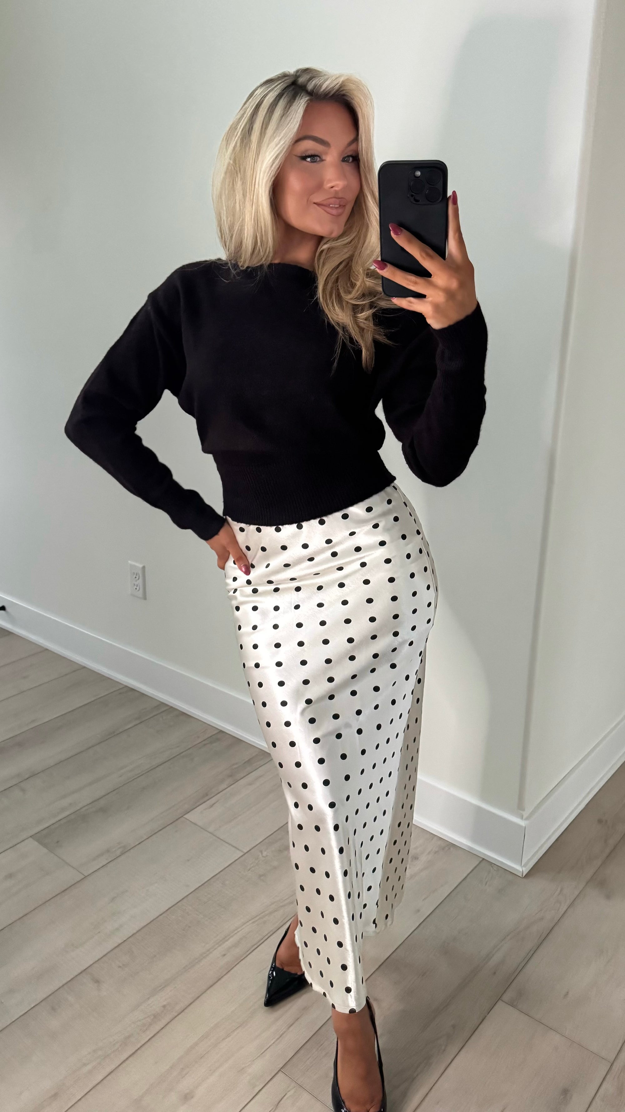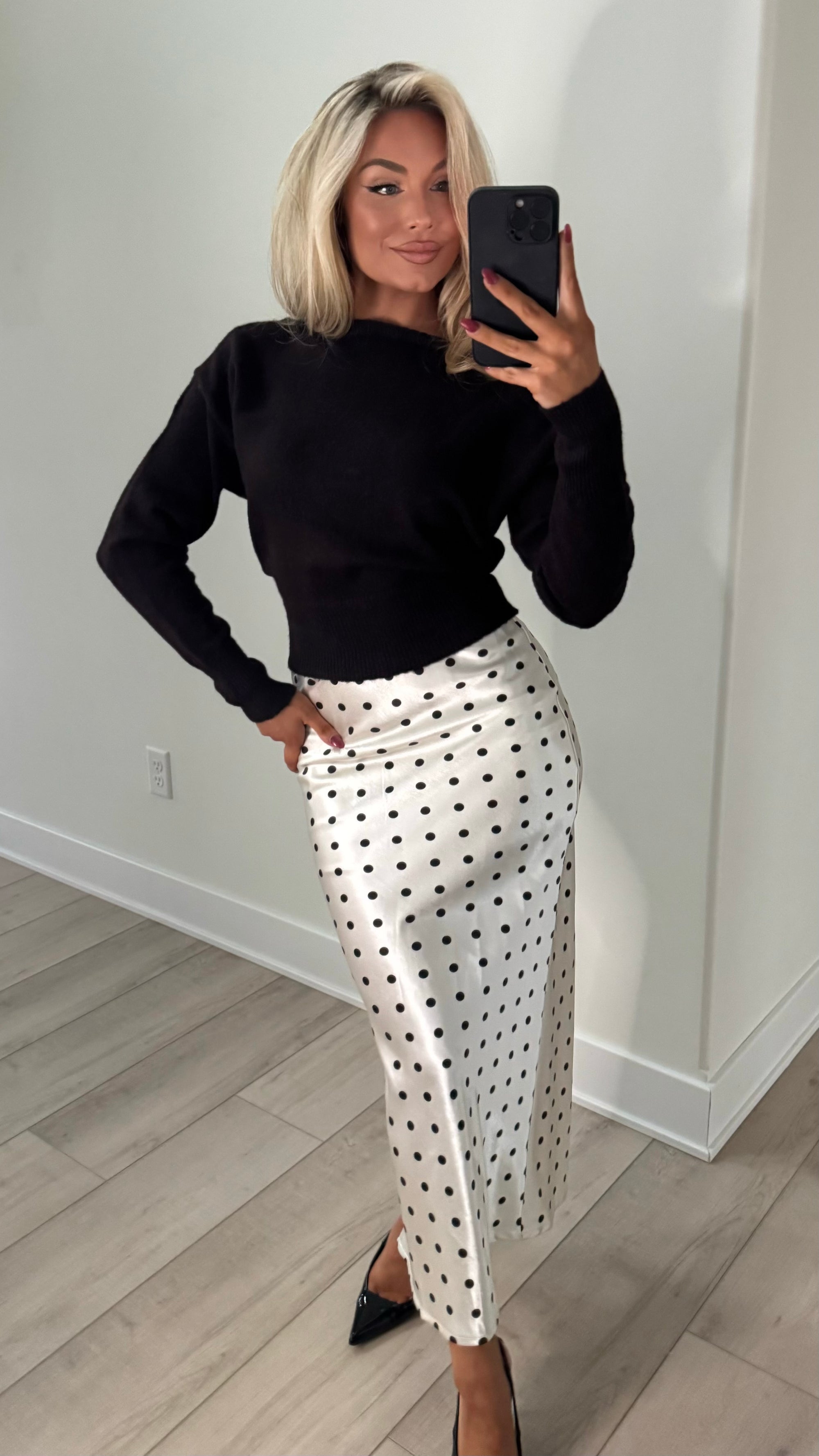 POISED POLKA DOT HIGH WAISTED MAXI SKIRT