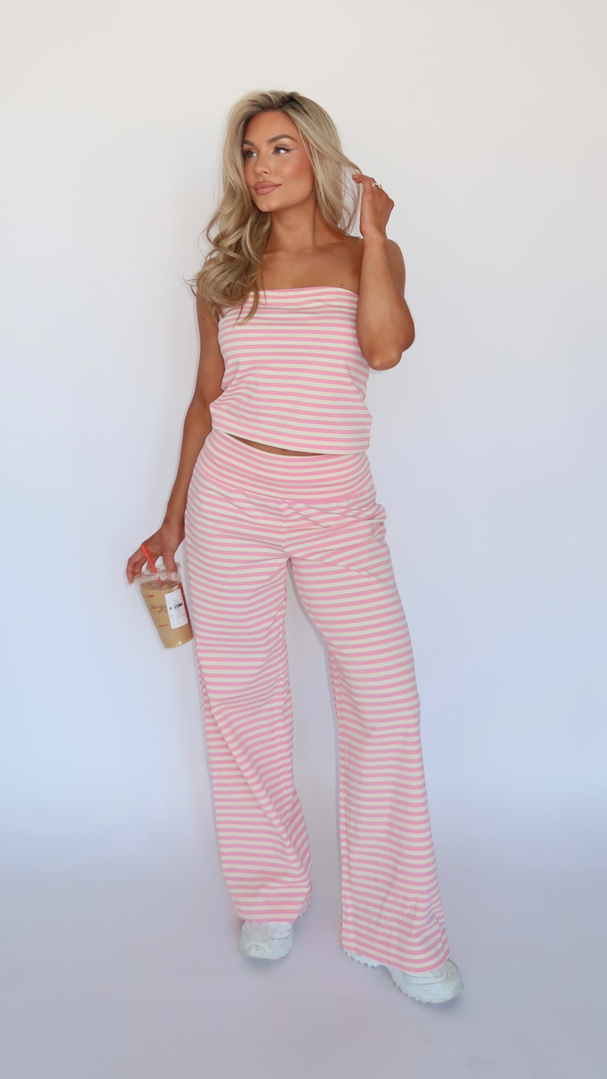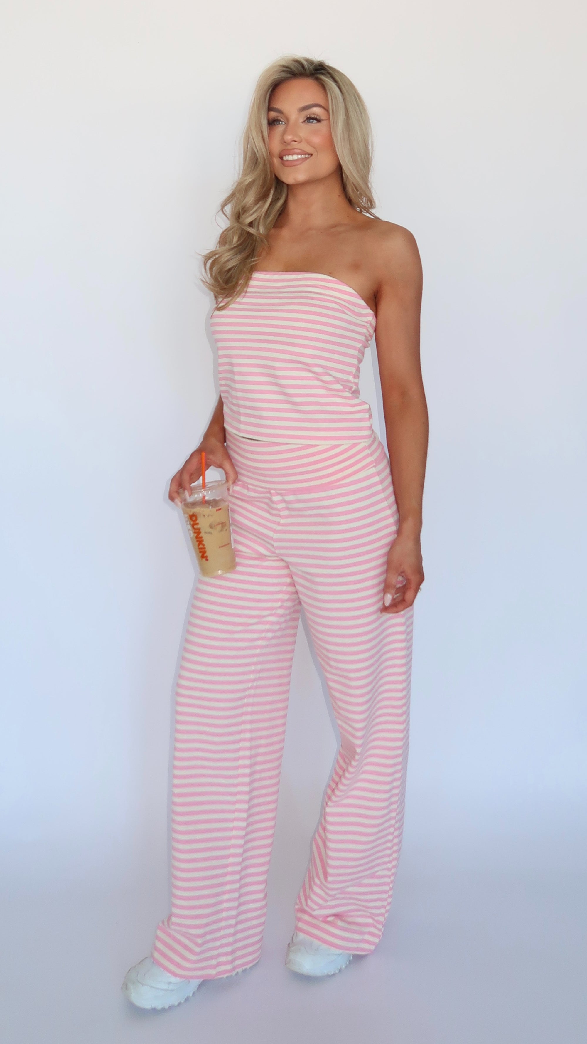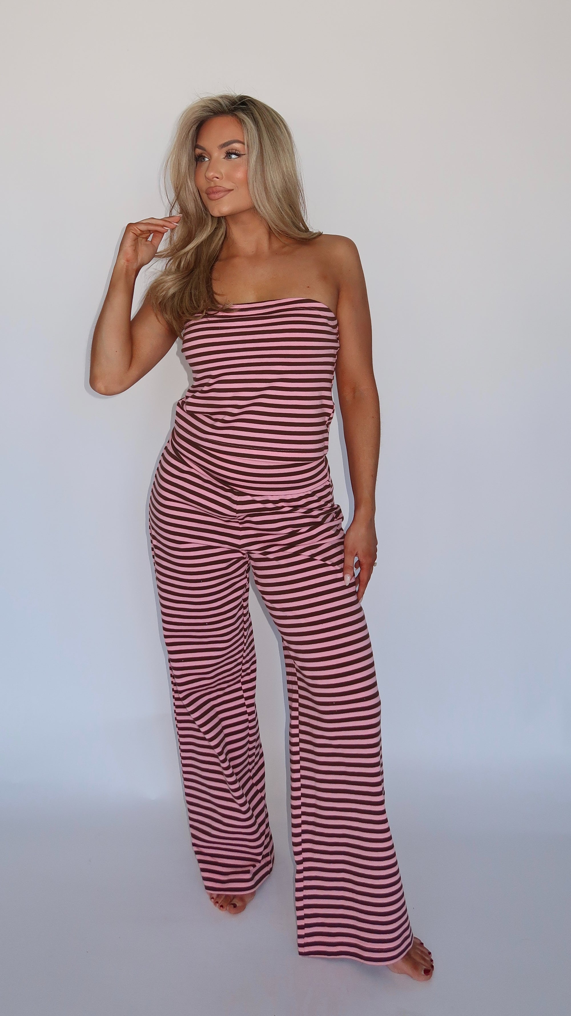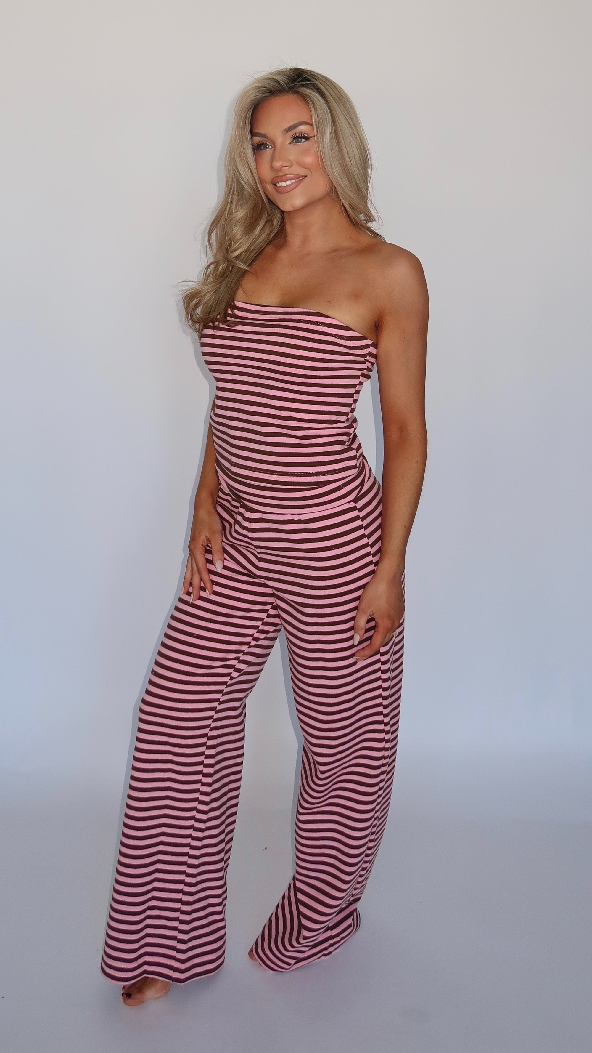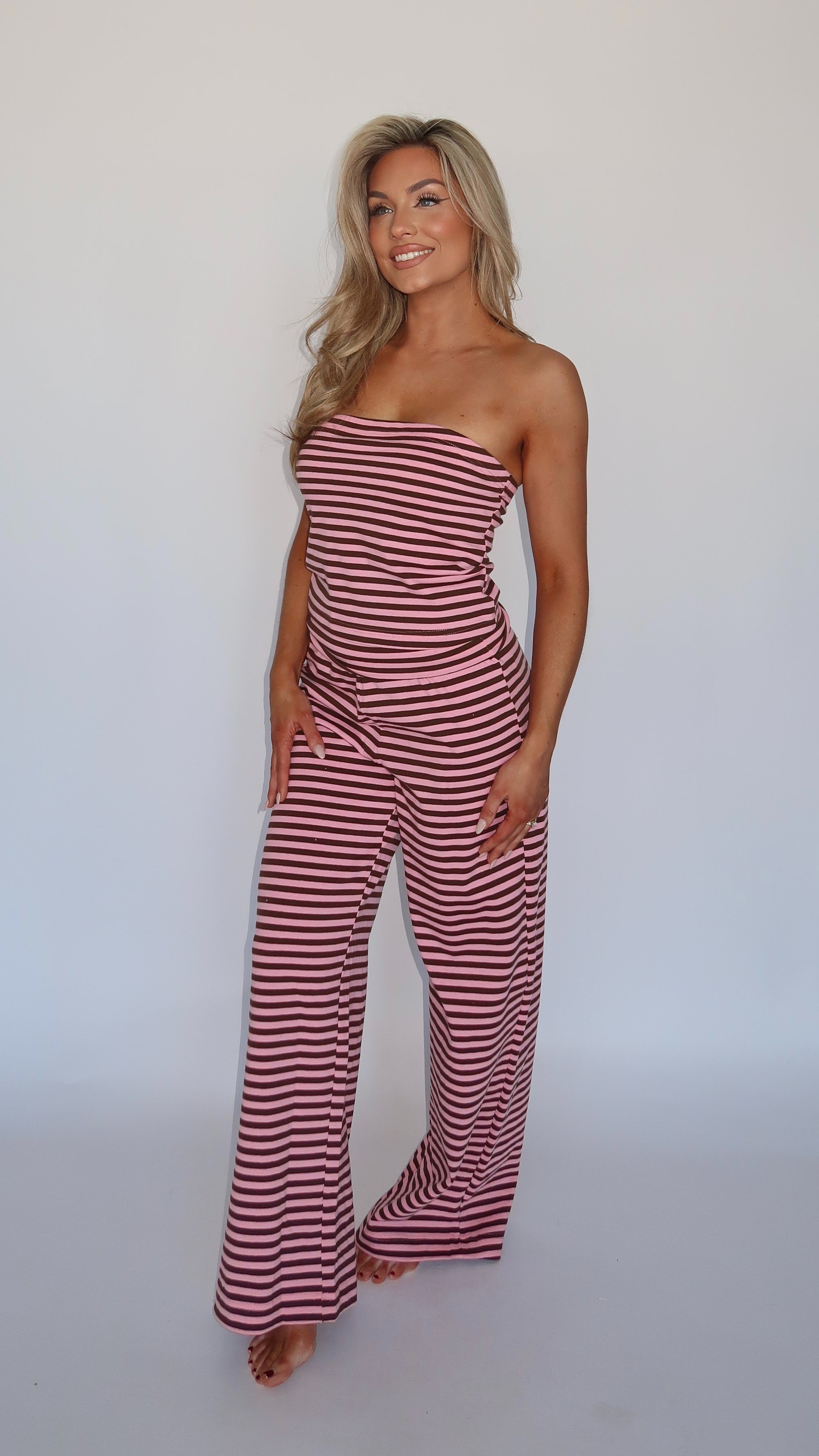 SPRINGSIDE STRAPLESS BANDEAU TOP PINK STRIPE