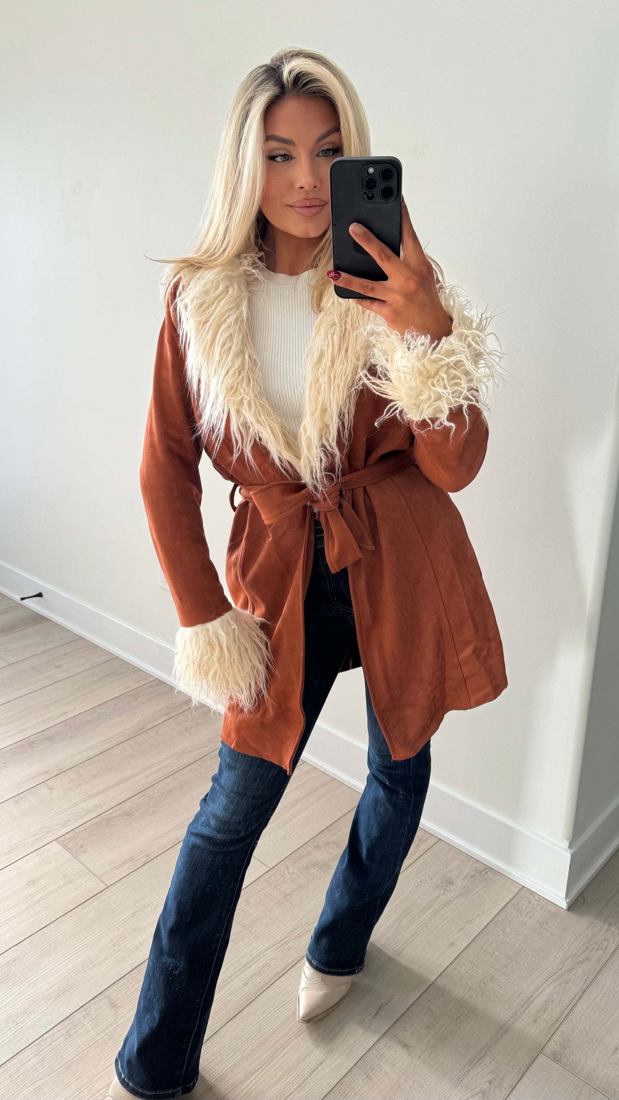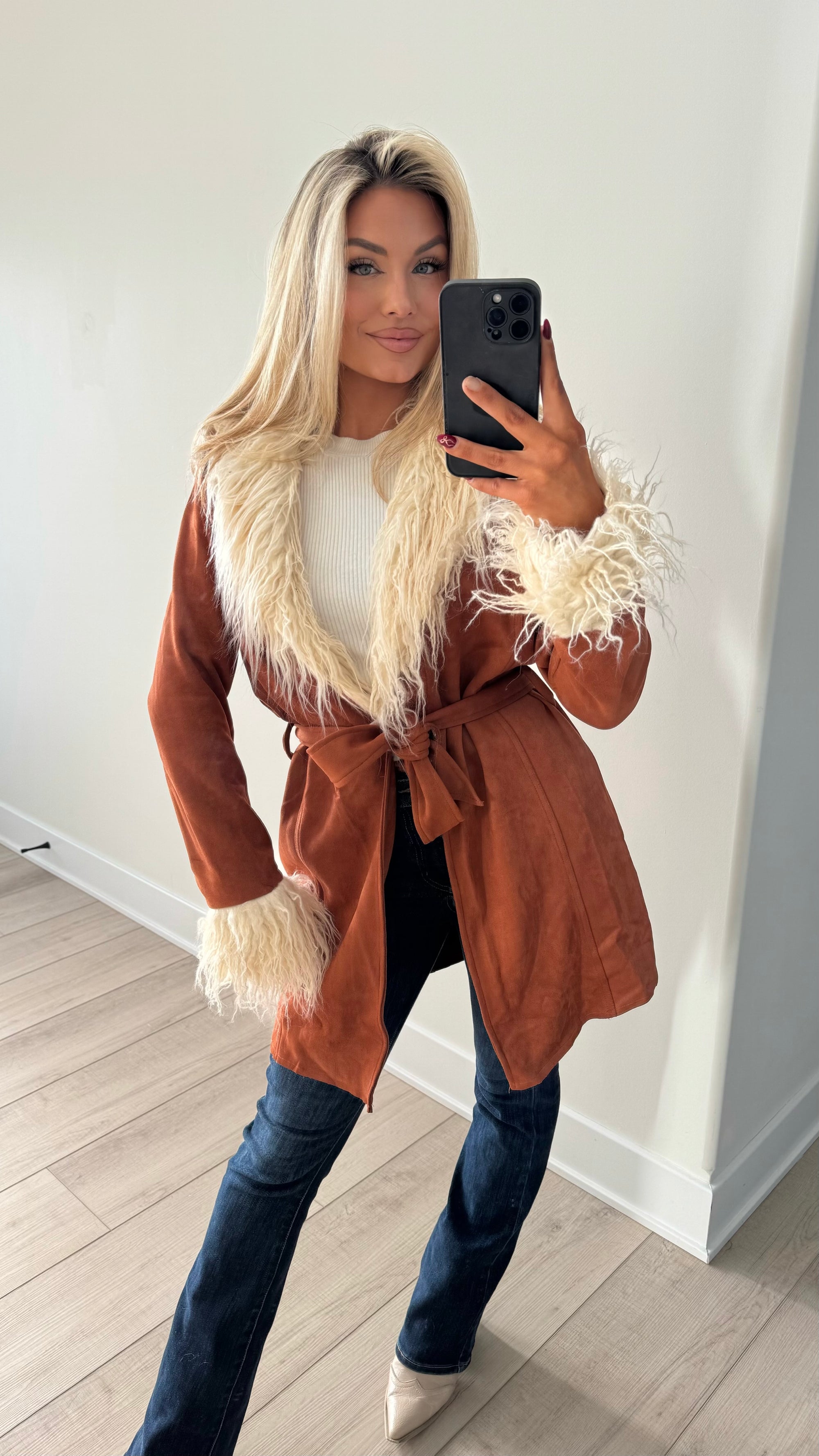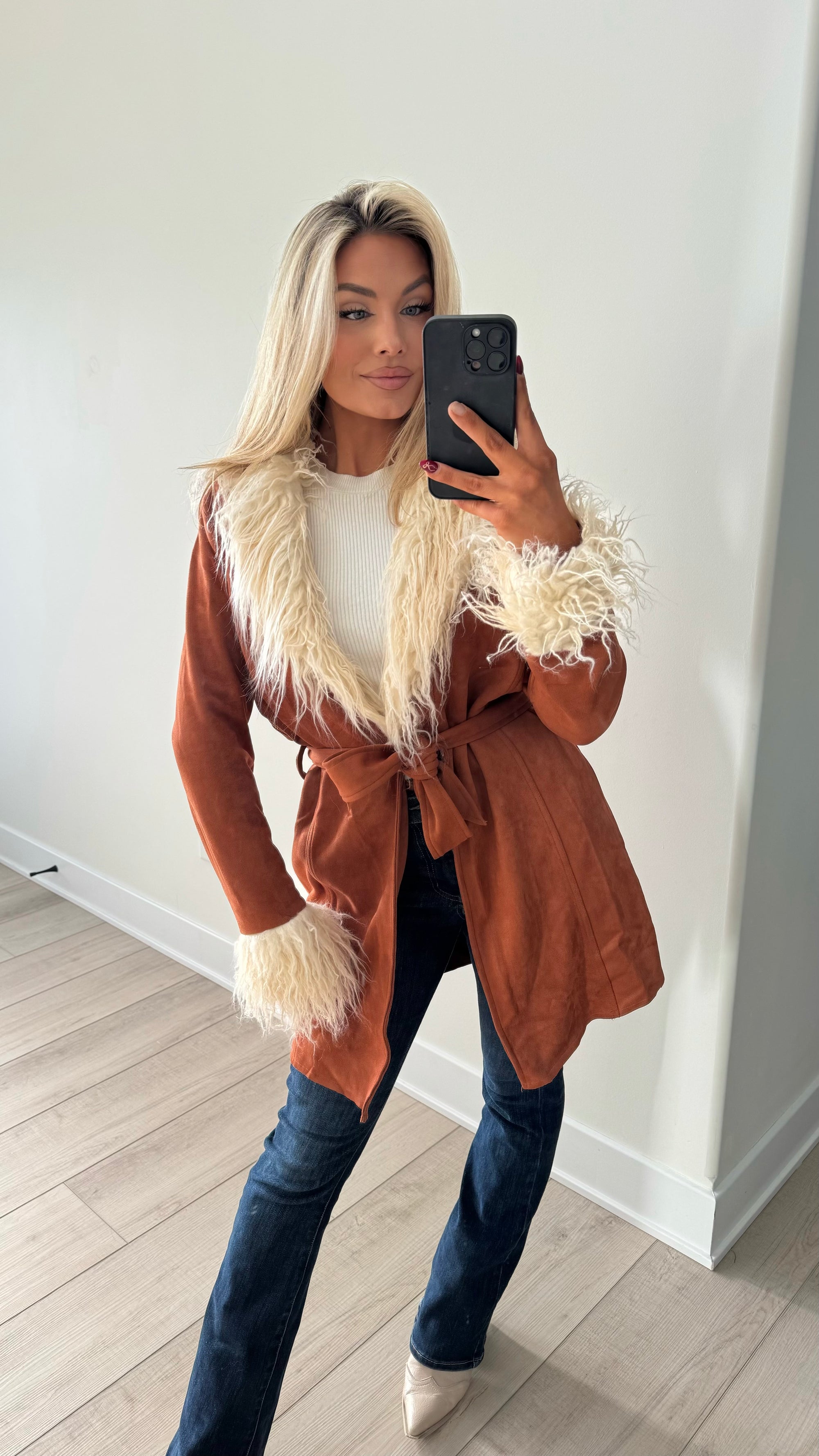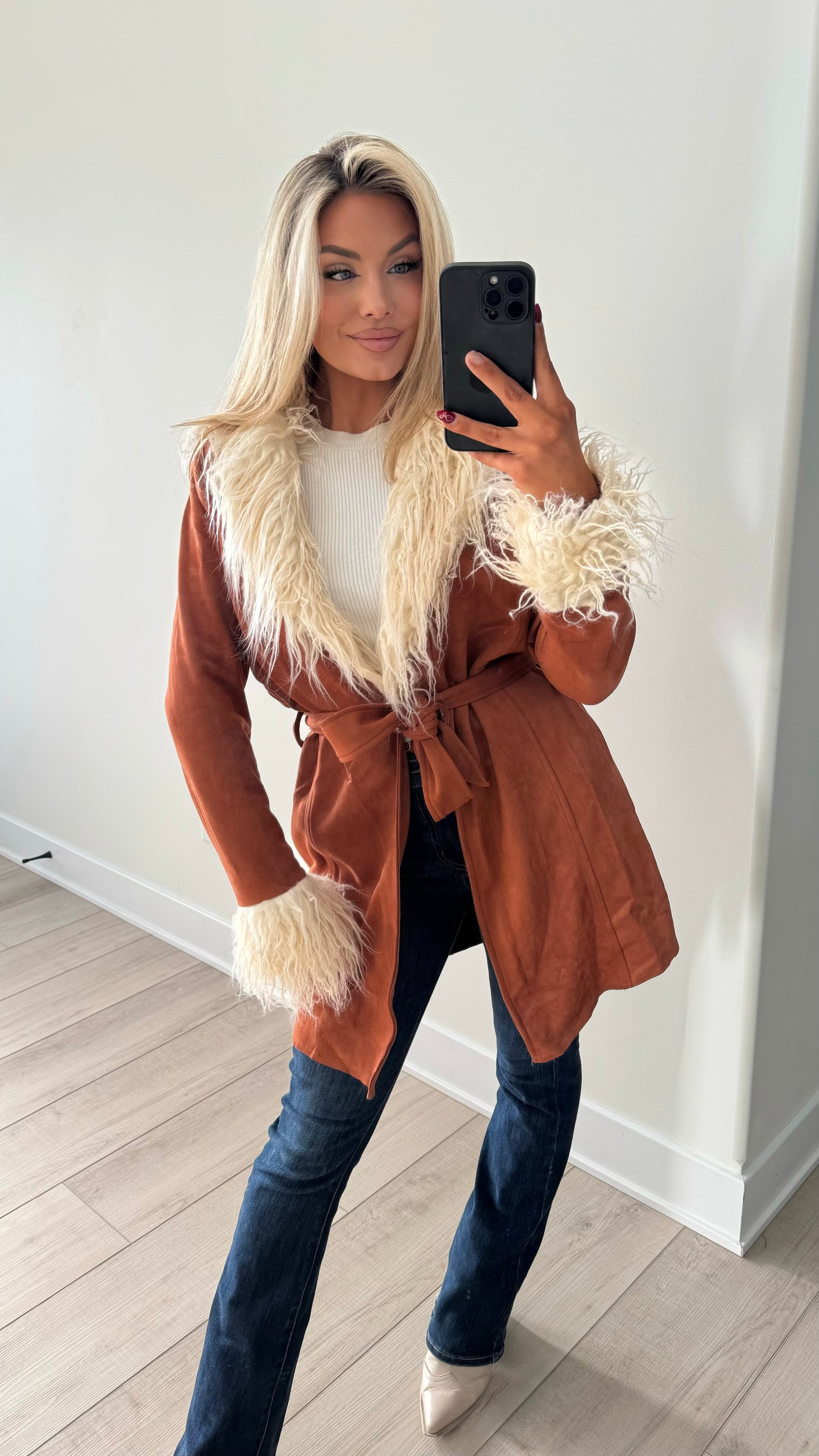 MONTCLAIR SUEDE FAUX FUR BLAZER JACKET