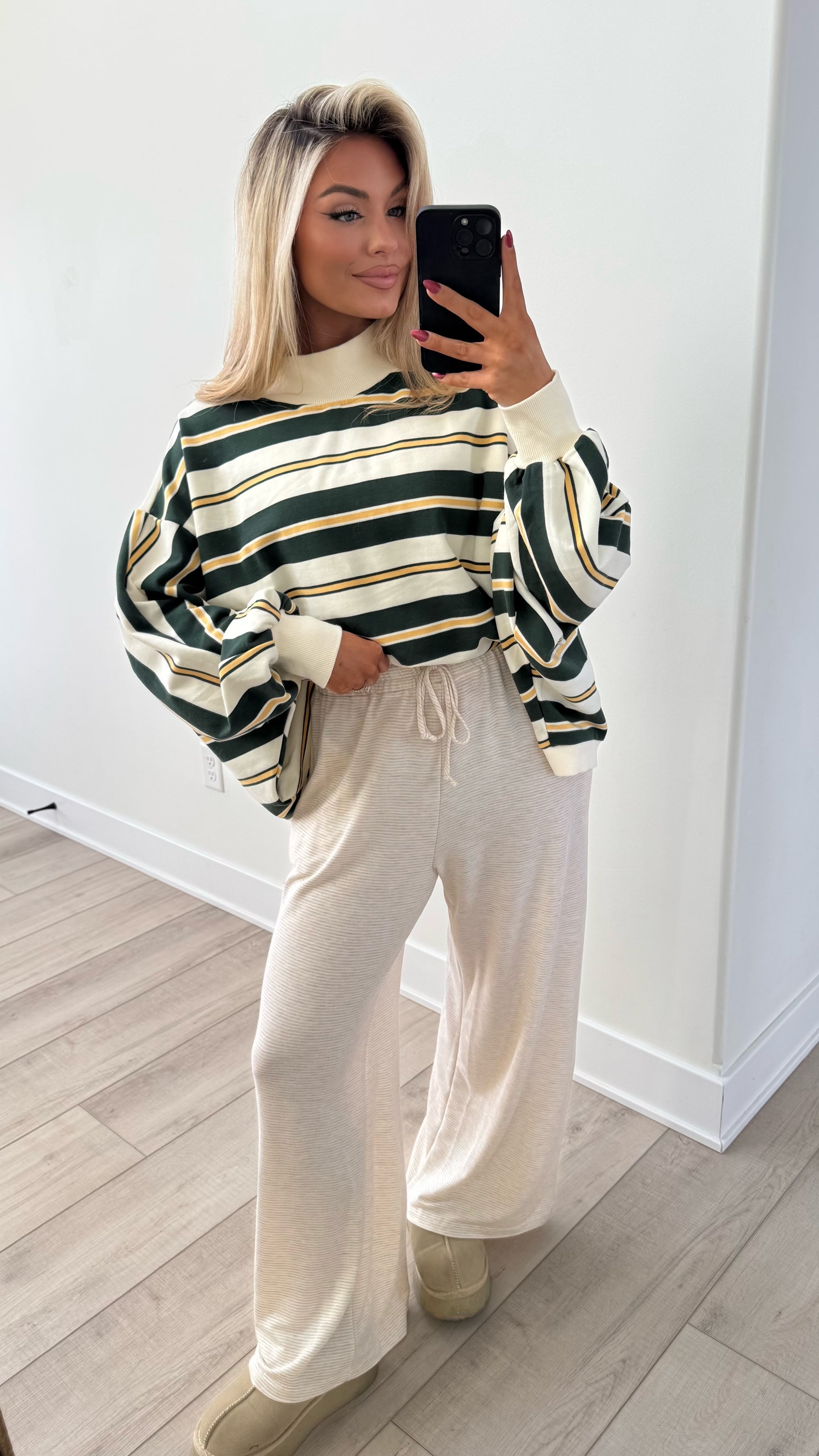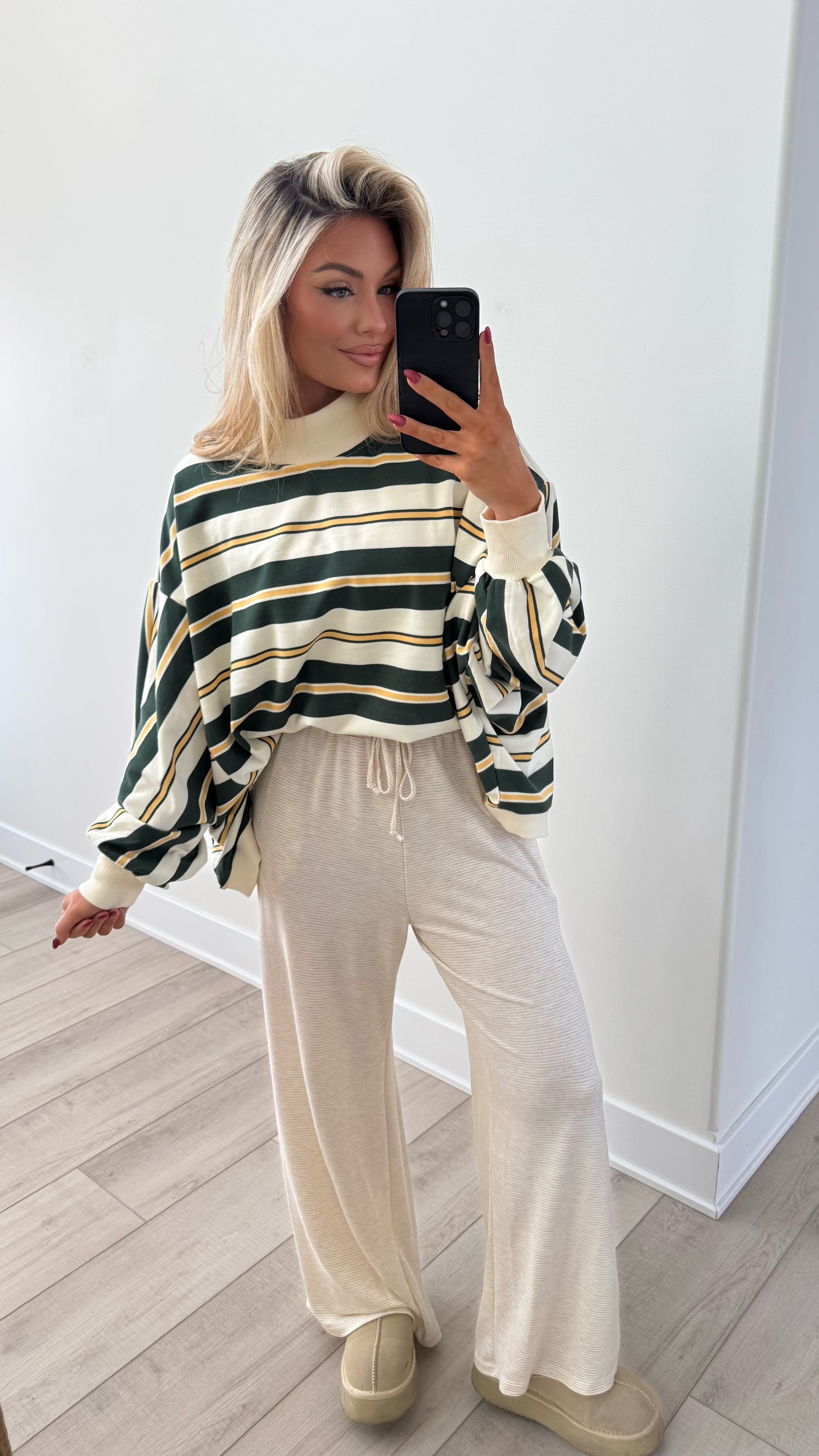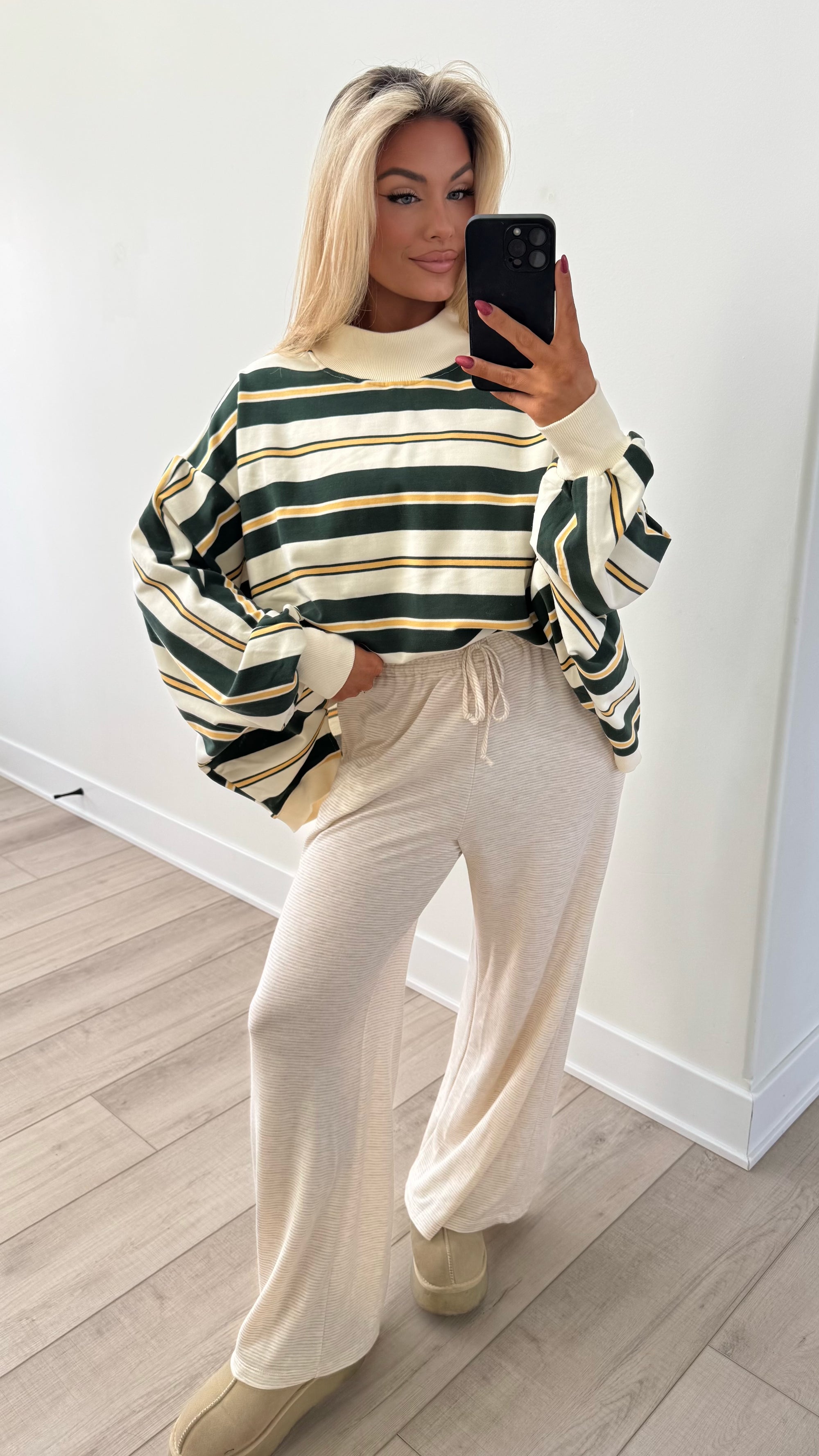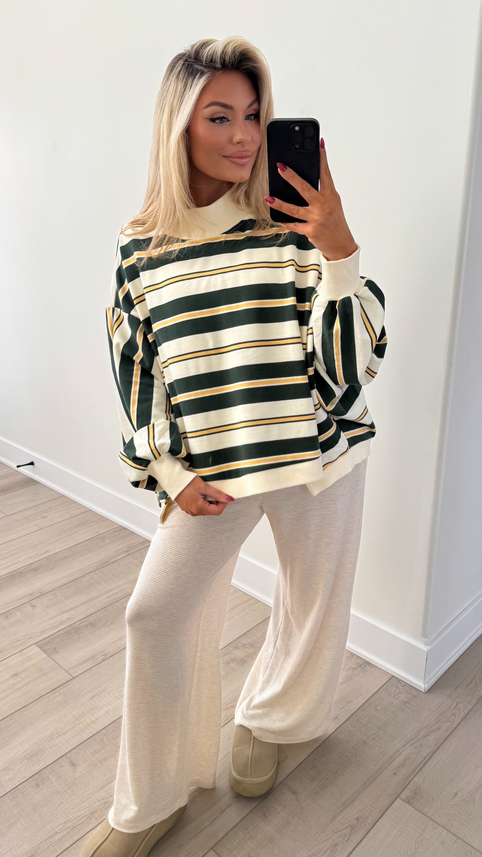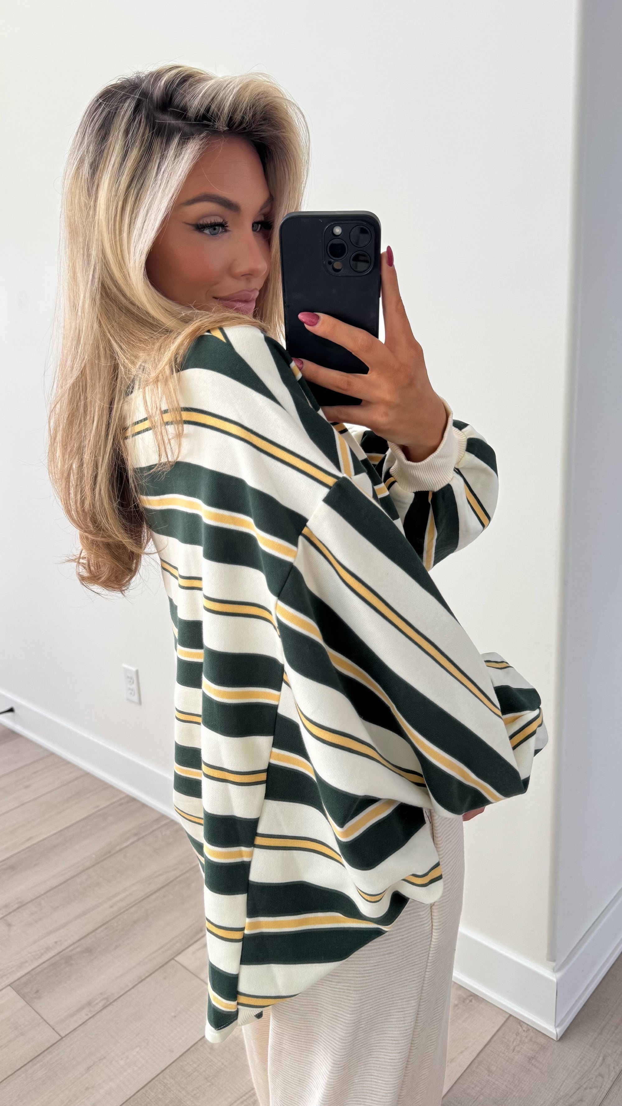 SUMMIT STRIPED OVERSIZED CREWNECK FOREST