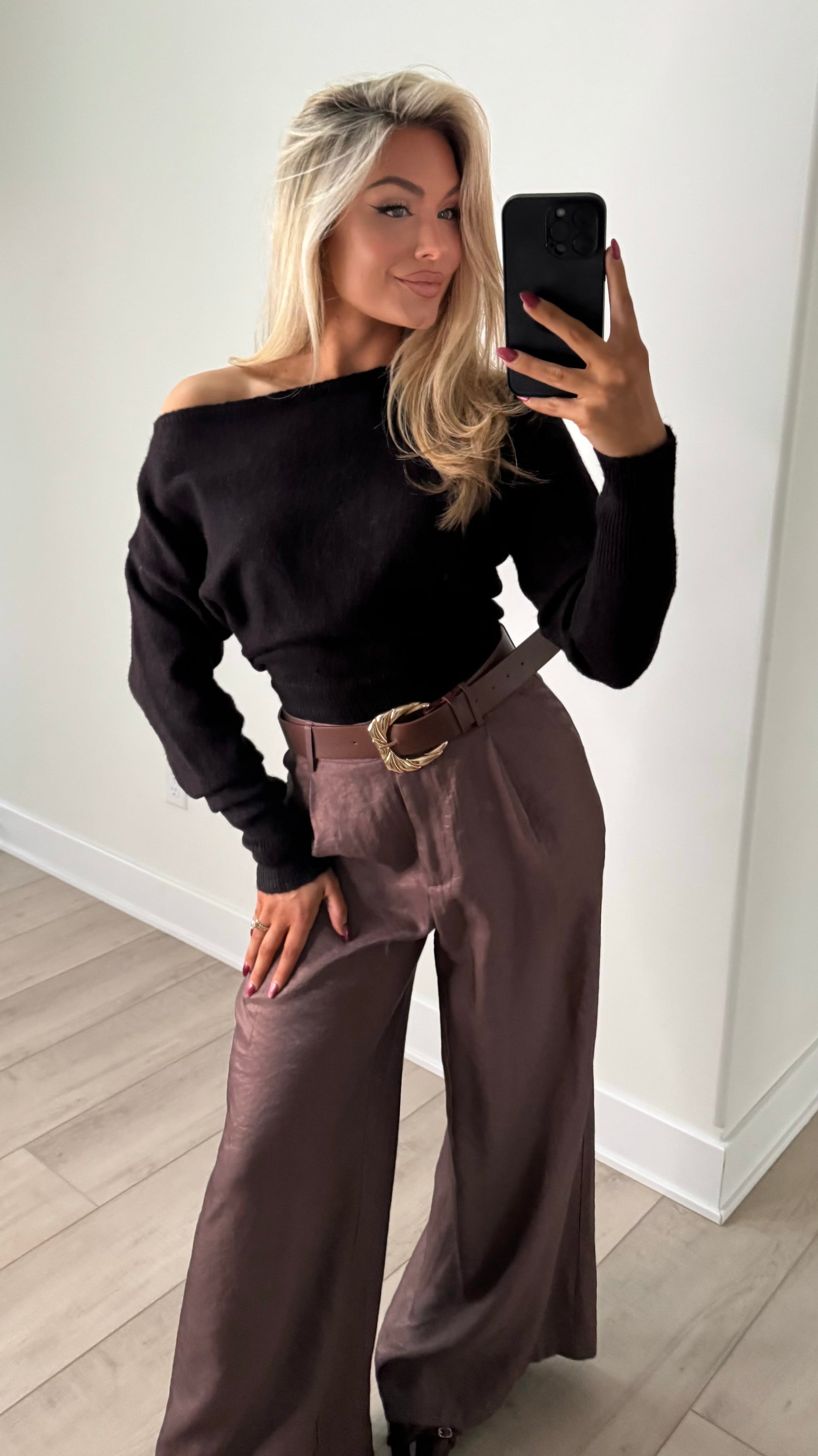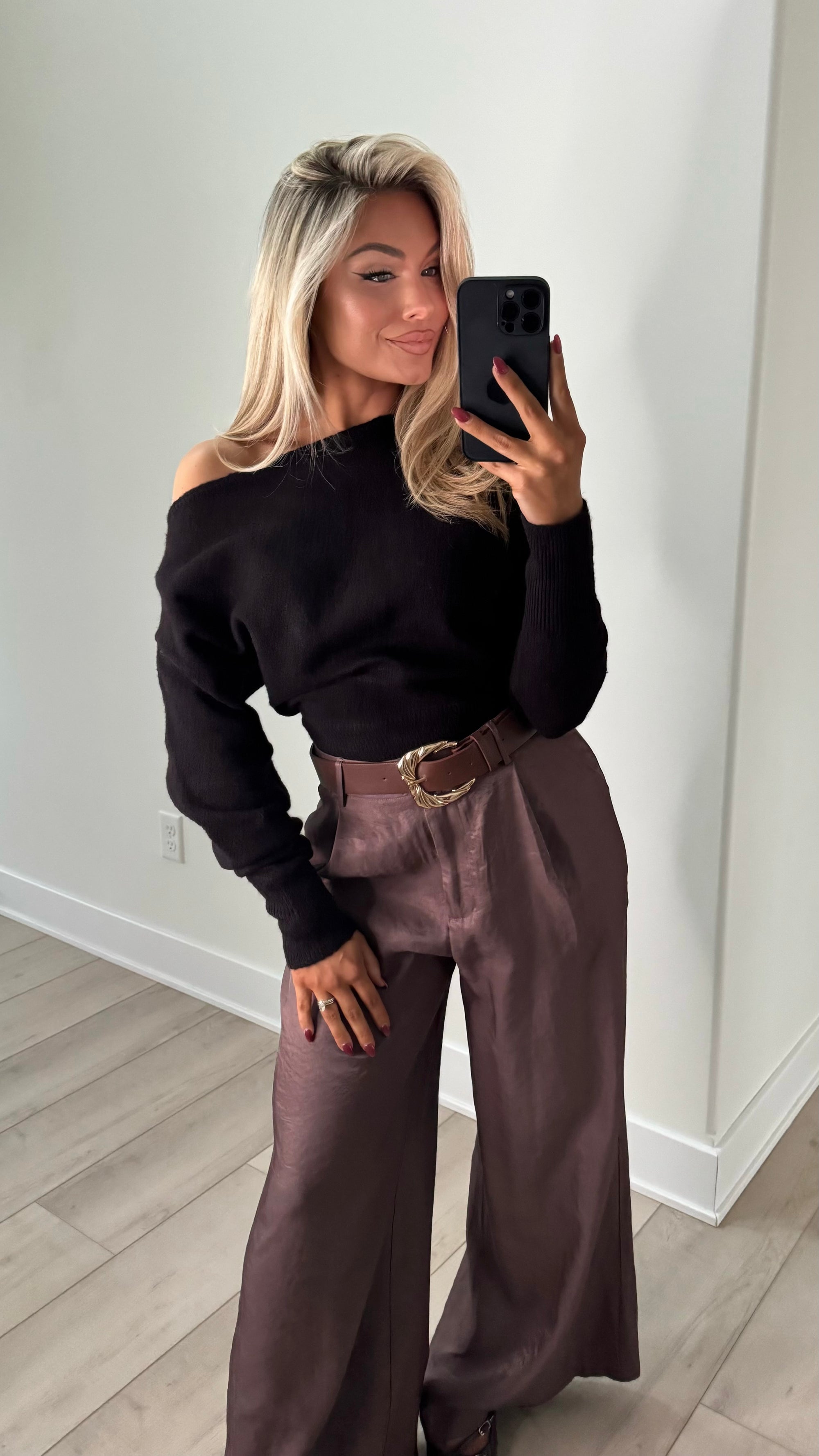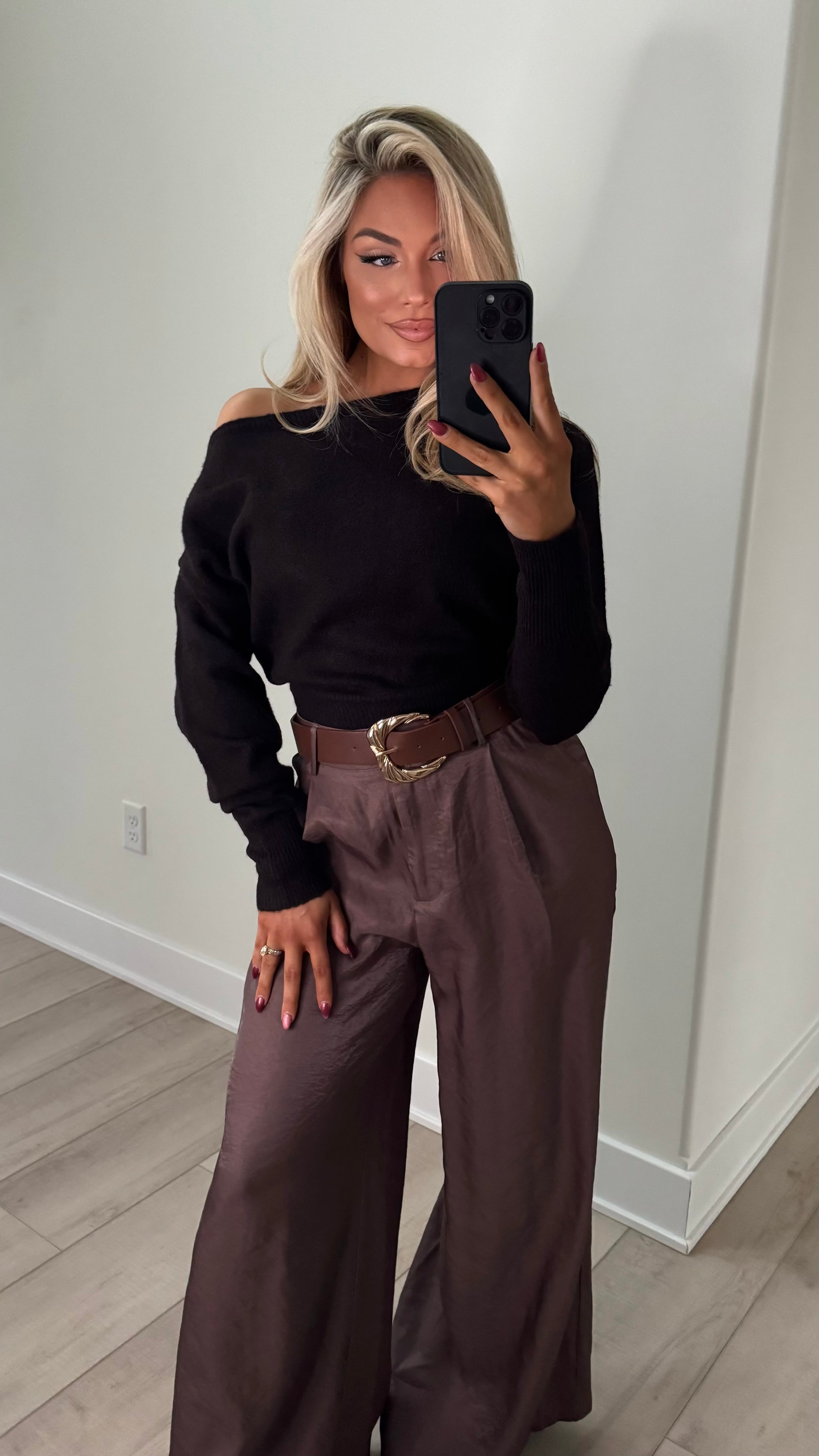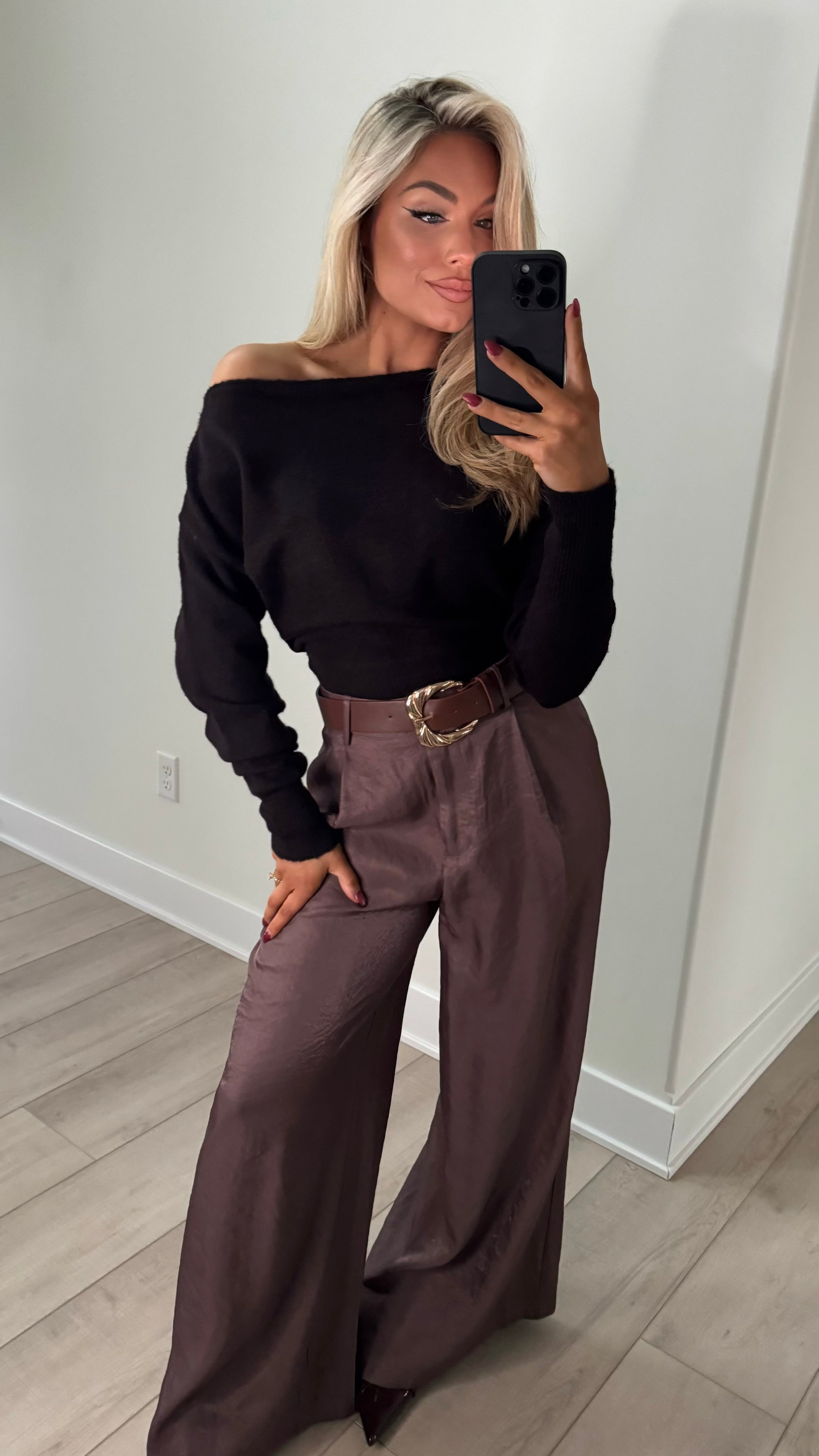 SLOPESIDE OFF THE SHOULDER SWEATER CHOCOLATE