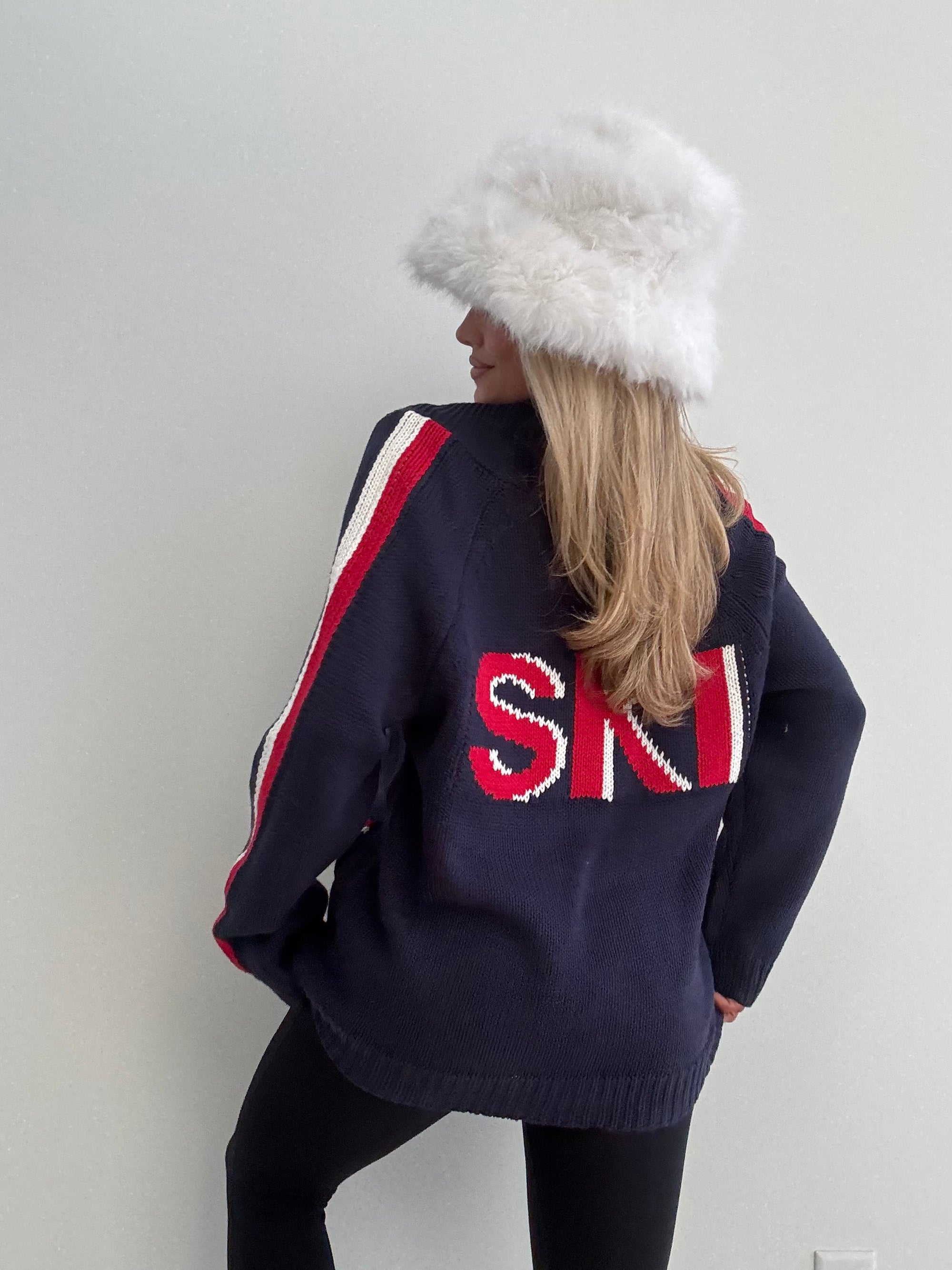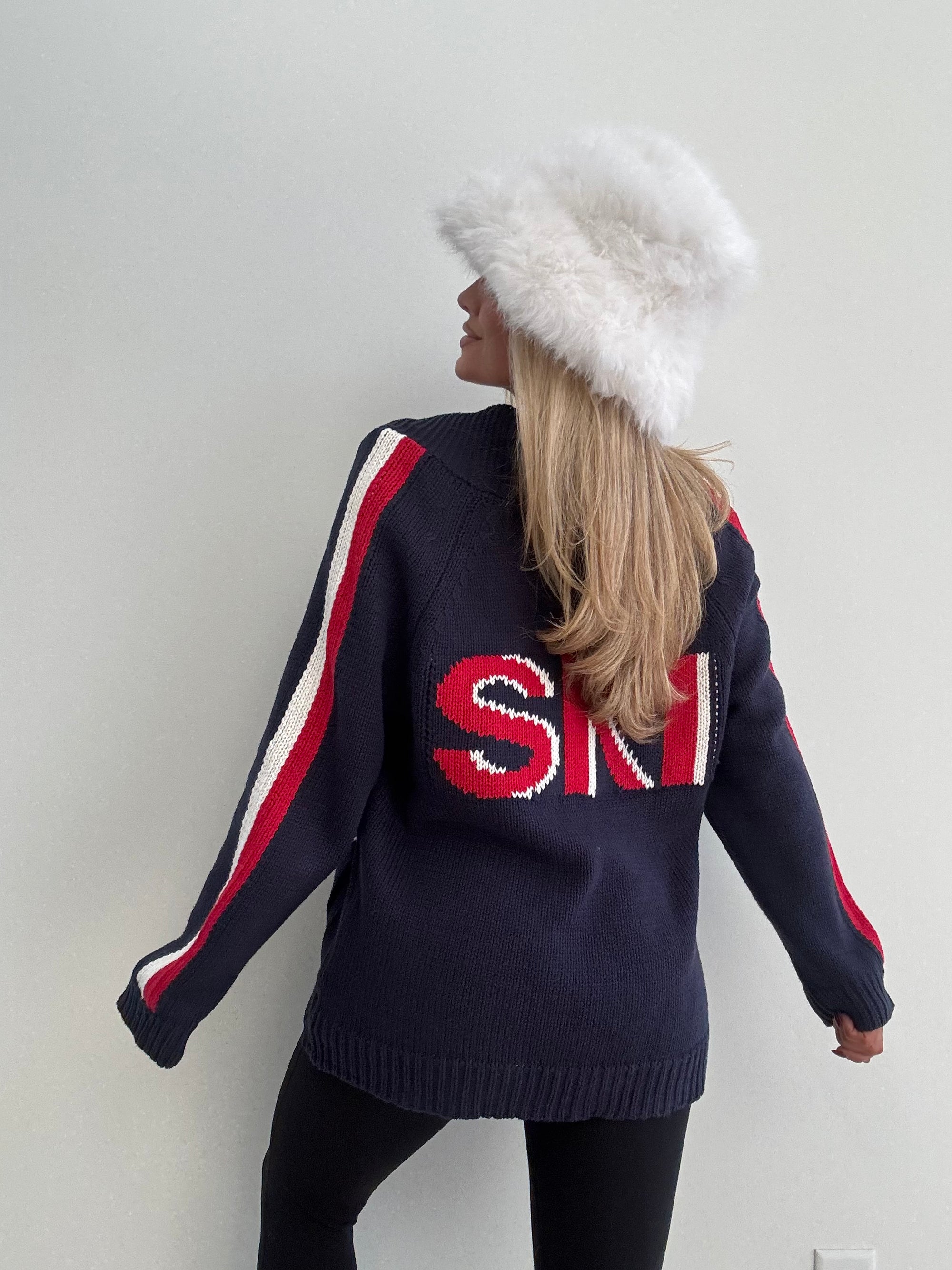 AMERICAN GIRL SWEATER NAVY/GREEN STRIPE