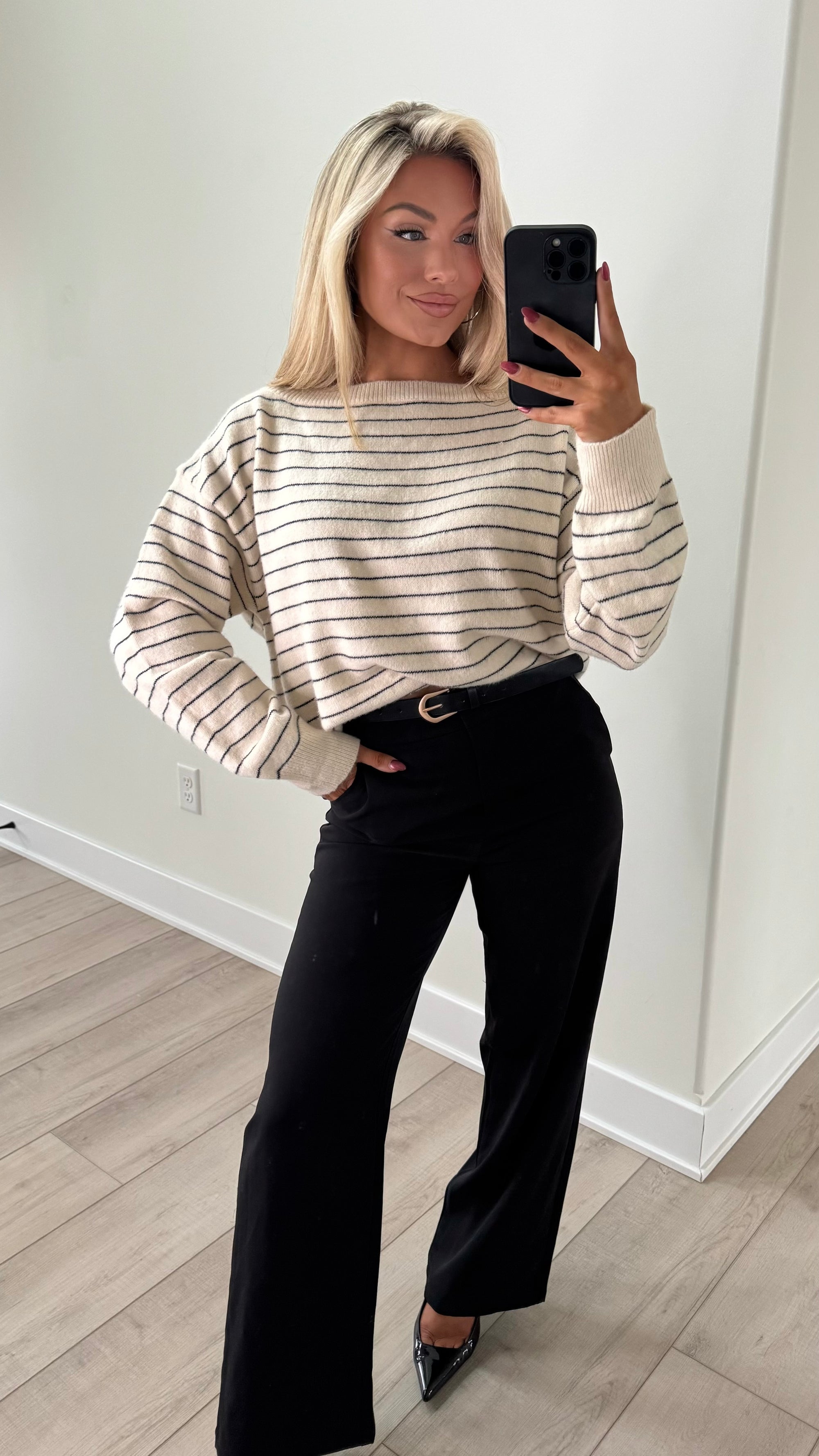 STRATEGIC STRIPED SWEATER TOP BROWN