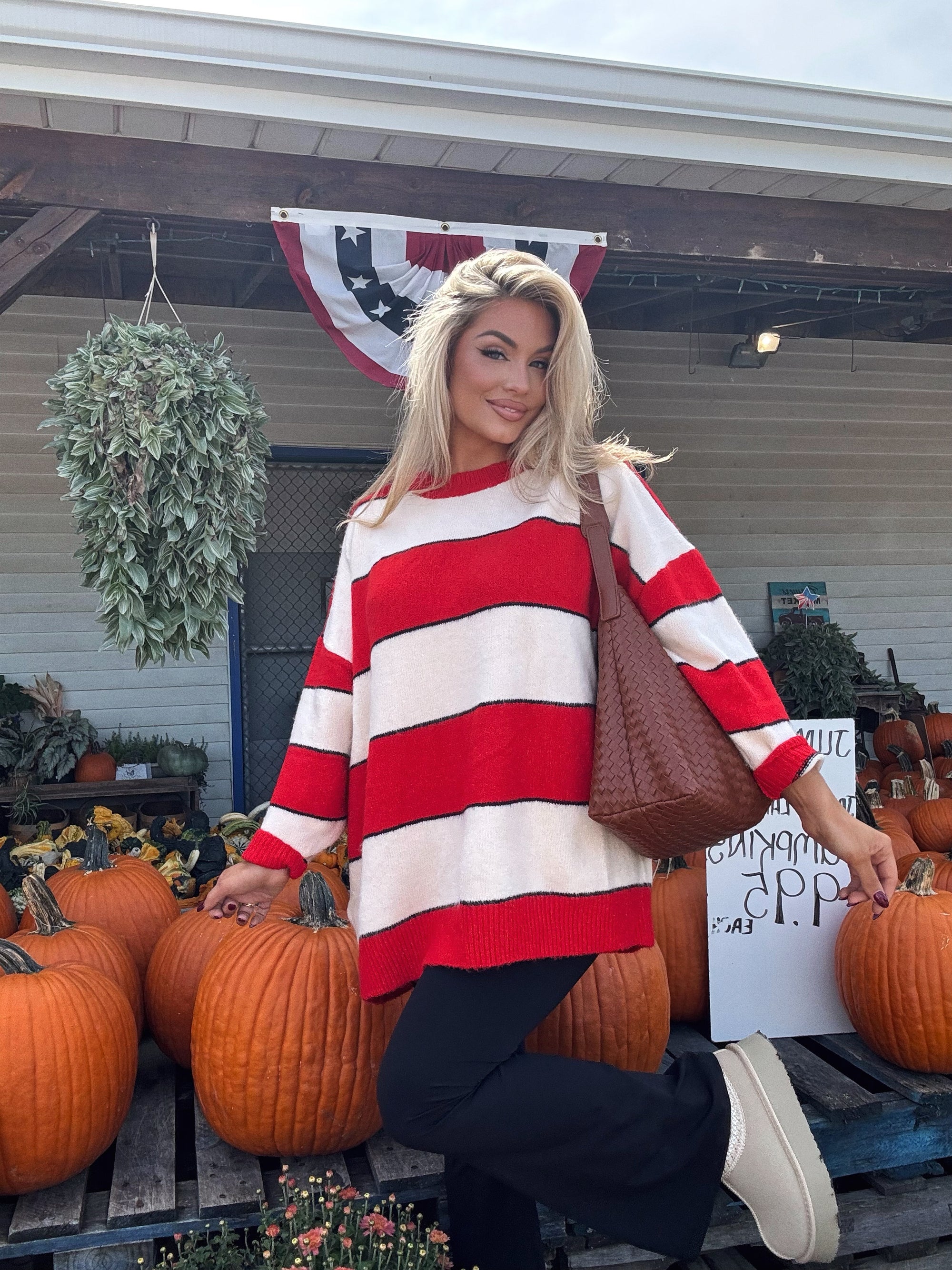 CANDY APPLE STRIPED OVERSIZED SWEATER